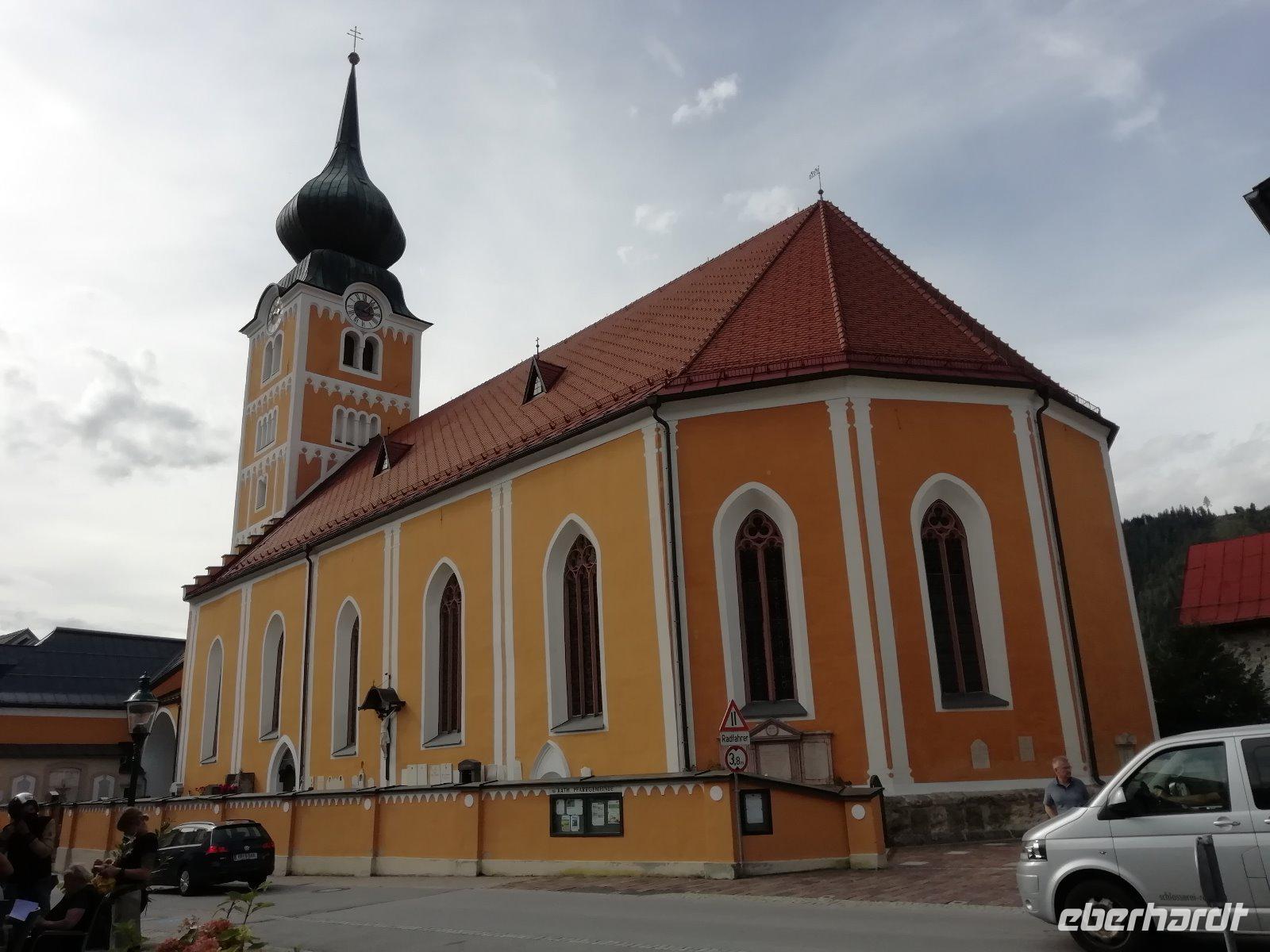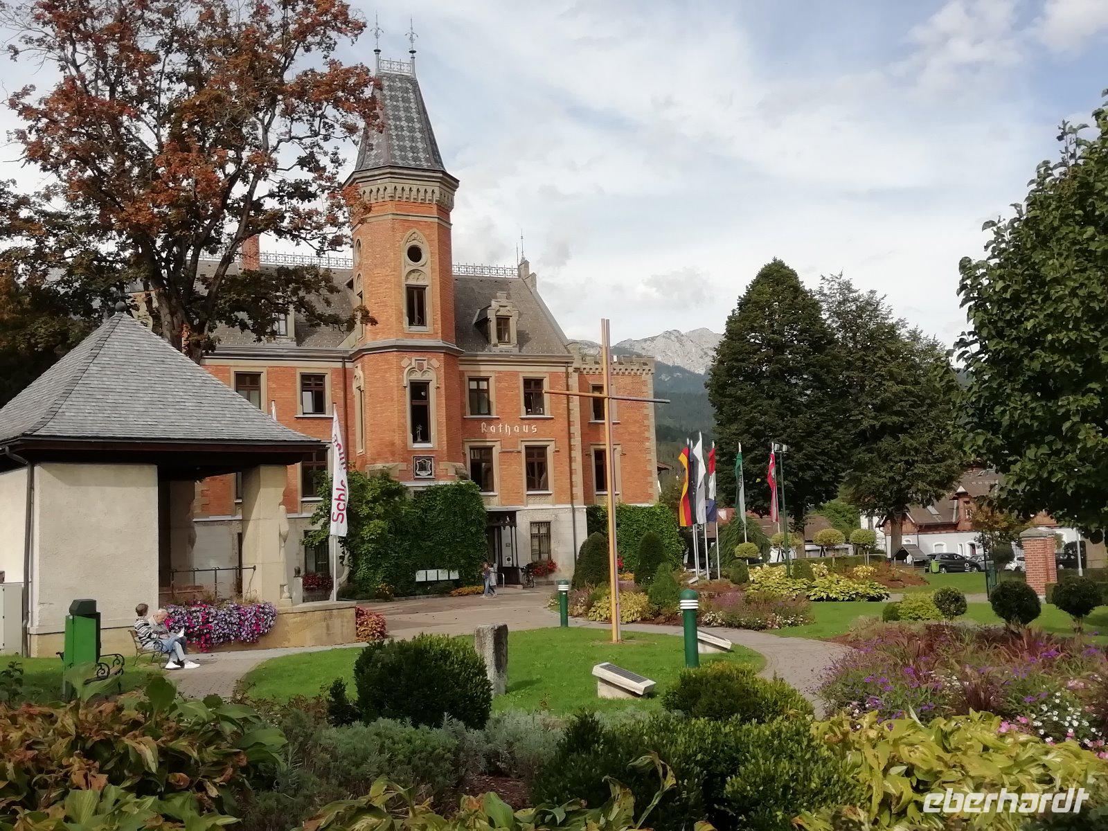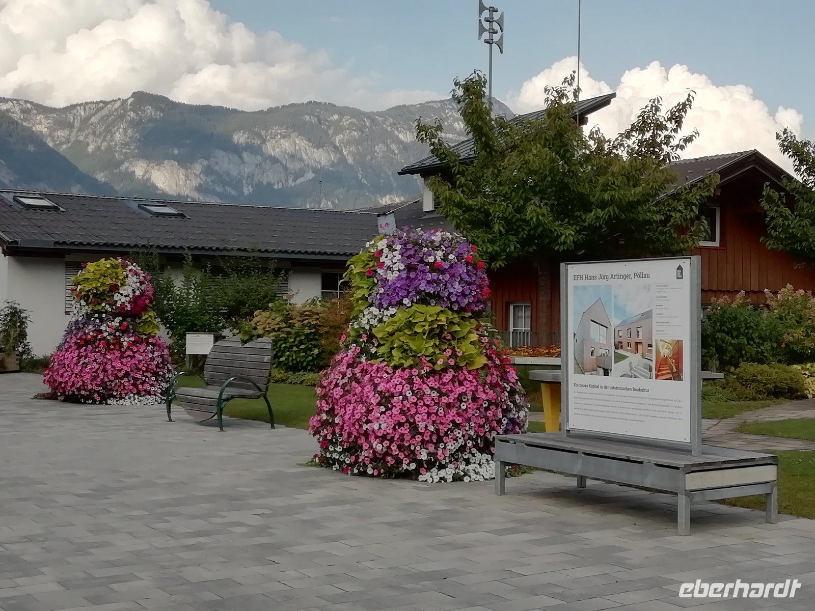 Nach einer kurzen Pause im Hotel treffen wir uns mit Willi. Er begleitet uns bei einem Rundgang durch seinen Heimatort. Dabei erfahren wir u.a. woher der Name „Haus" kommt und wie alte Traditionen heute noch gepflegt werden. Besonders beeindruckt sind wir vom Blumenschmuck im Ort. Blumenbaum, Blumenampeln und Blumenpyramiden sind immer wieder Fotomotive für uns. Auch die Balkons und Fenster der Häuser präsentieren Blumen in allen Farben. Mehrmals wurde Haus deshalb schon als schönstes Blumendorf Europas ausgezeichnet. Nach einem Aufenthalt in der Kirche spazieren wir zurück zum Hotel. Hier lassen wir uns Entenbrust, Seesaiblingfilet oder Bierkasnocken schmecken.