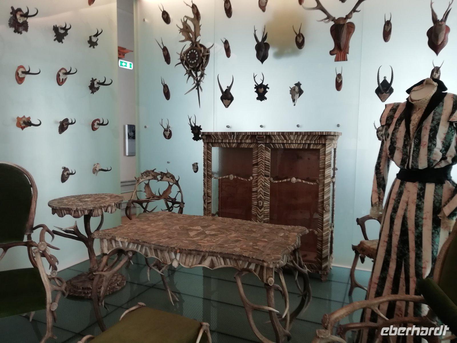 Entlang der Enns fahren wir heute zum Schloss Trautenfels. Es liegt auf einem Felsvorsprung am Fuße des Grimmings. Gemeinsam steigen wir hinauf in den ersten Stock, wo ein umfangreiches und sehr liebevoll gestaltetes Heimatmuseum untergebracht ist. Nach einer kurzen Erläuterung zur Geschichte des Schlosses erkunden wir bei einem individuellen Rundgang u.a. Wissenswertes zum Thema Holz und Wald, lernen die Tiere der Region kennen, können sehen, wie man früher hier lebte und welche Bräuche heute noch gepflegt werden. Auch die Sonderausstellung „Gipfelstürmen" ist interessant. Wer genug Puste hat, erklimmt noch den Aussichtsturm und genießt den schönen Blick über das Ennstal von dort oben.