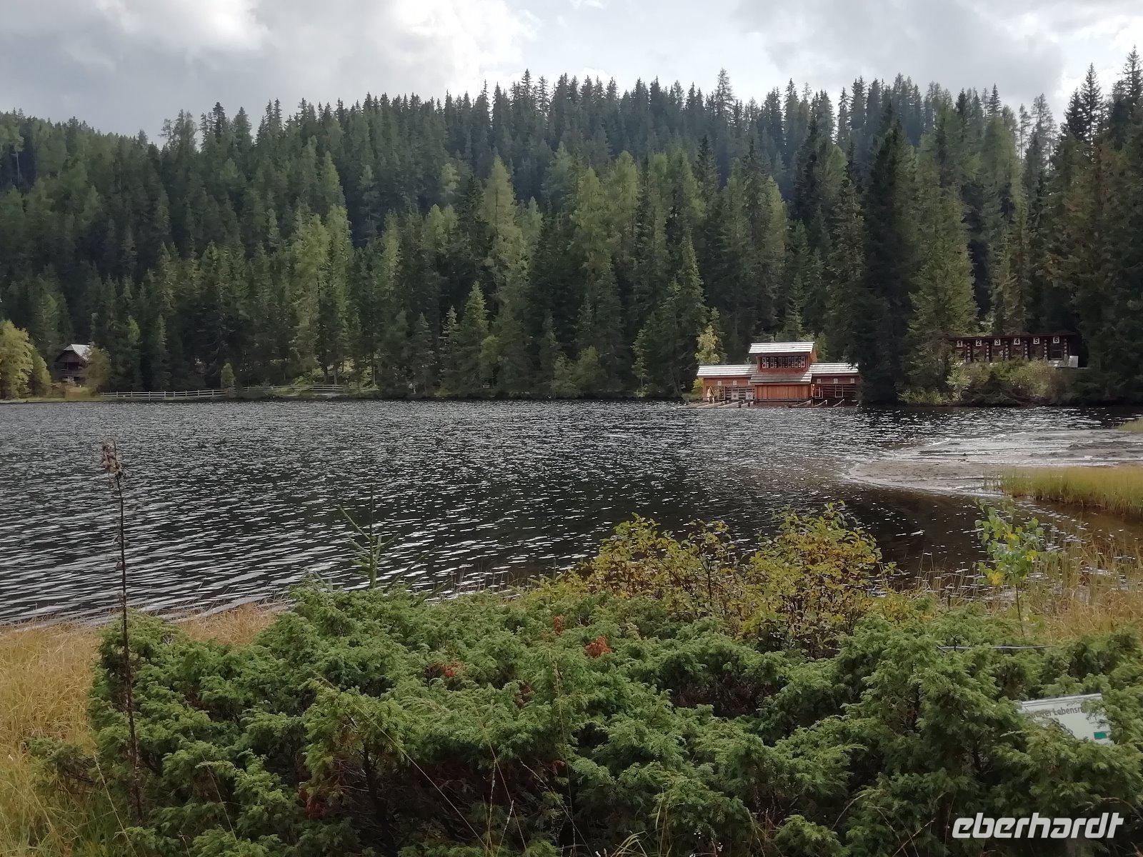 Am Nachmittag wollen wir noch zum Steirischen Bodensee. Dazu fahren wir ins Seewigtal. Vom Parkplatz spazieren trotz des leichten Regens alle Gäste zum See. Einige Gäste umrunden den See sogar, andere können den leckeren Eisbechern im „Forellenhof" nicht wiederstehen.