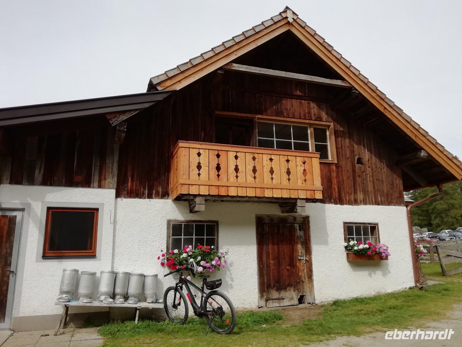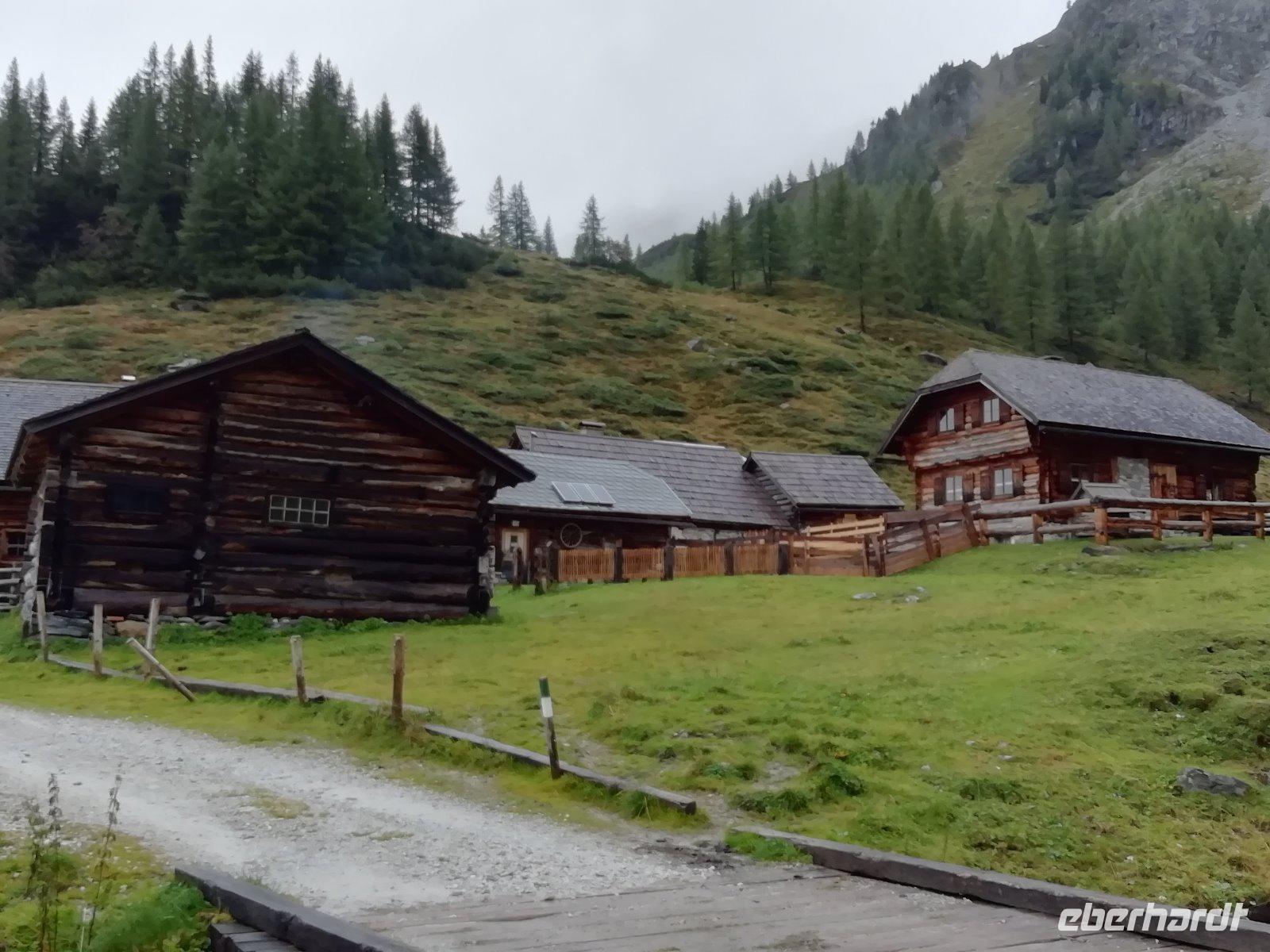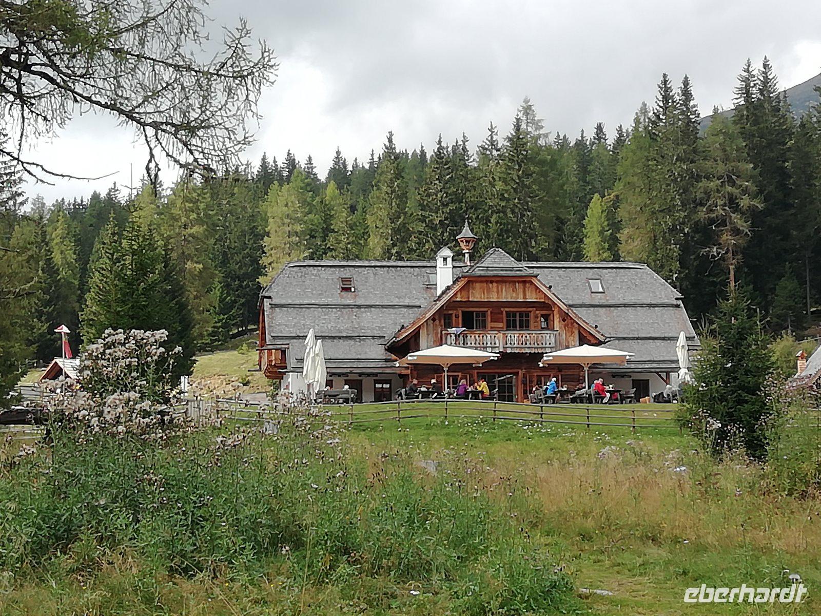 Der Morgen bringt gute Nachrichten: Unserem Ausflug auf die Ursprungalm steht nichts im Weg. Unser Bus ist allerdings zu lang für die Auffahrt zur Alm, aber wir werden mit einem kleineren Bus auf spektakulärer Strecke bis auf eine Höhe von 1604 m gebracht. Die Alm befindet sich am Fuß der Steirischen Kalkspitze in den Schladminger Tauern. Bekannt geworden ist sie vor allem, da einst Szenen für einen Heidifilm dort gedreht wurden. Trotz des nicht gerade schönen Wetter begeben sich alle Gäste auf den Rundweg, wo an mehreren Stellen Tafeln mit allerlei Informationen stehen. Dann kehren wir in die Almhütte ein und Wirt Helmut serviert uns seine Almprodukte.