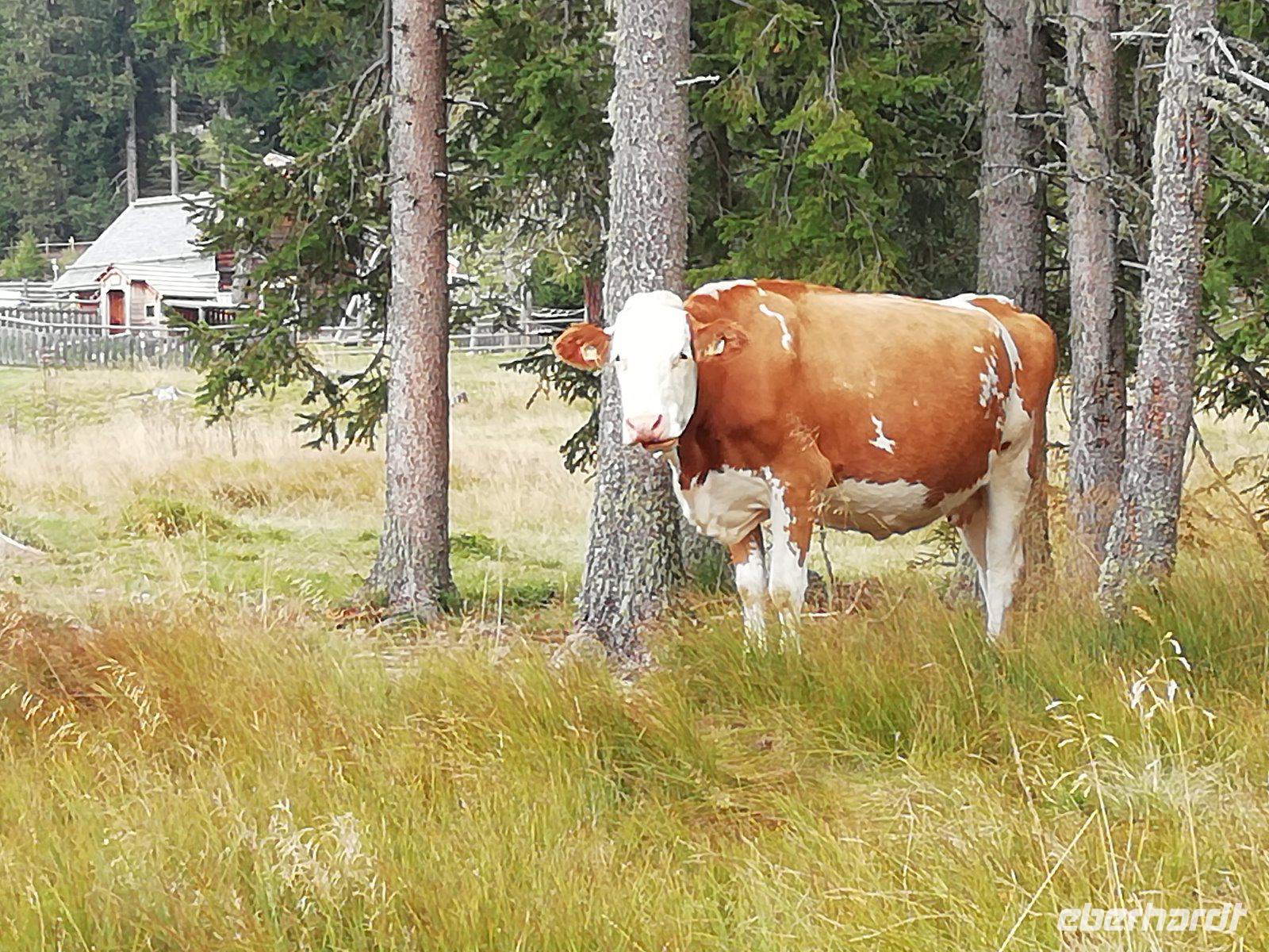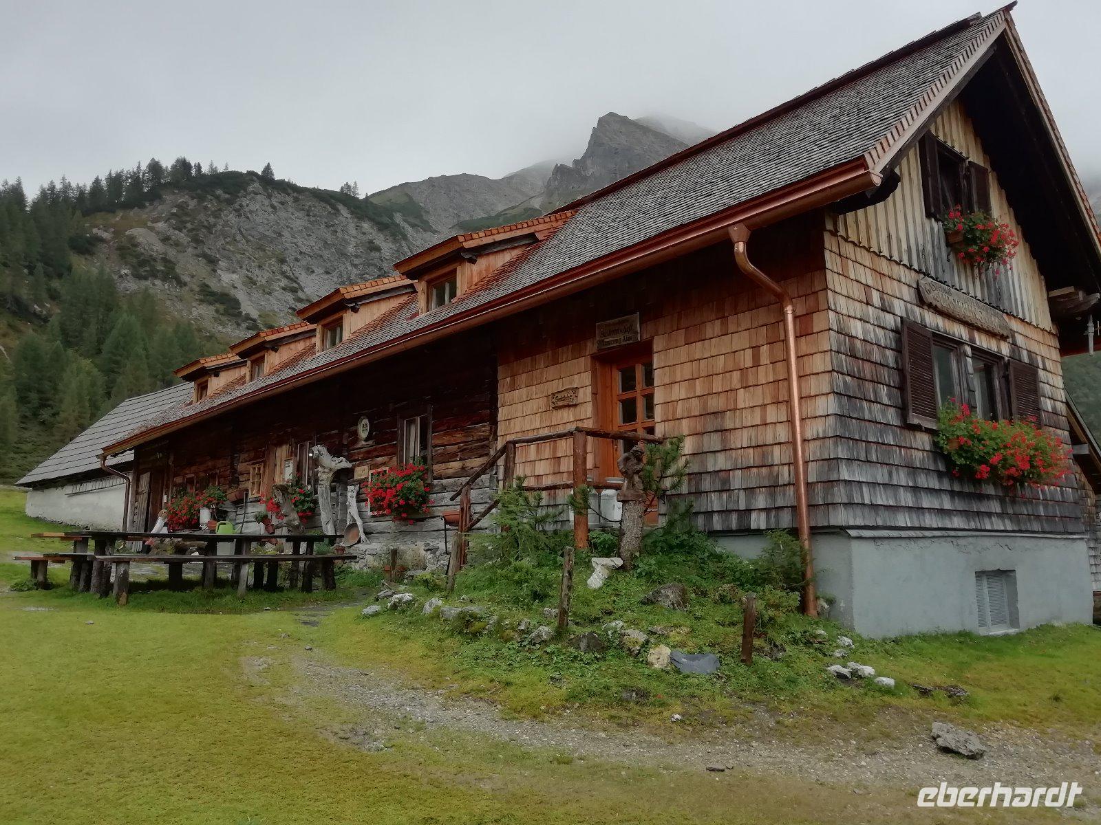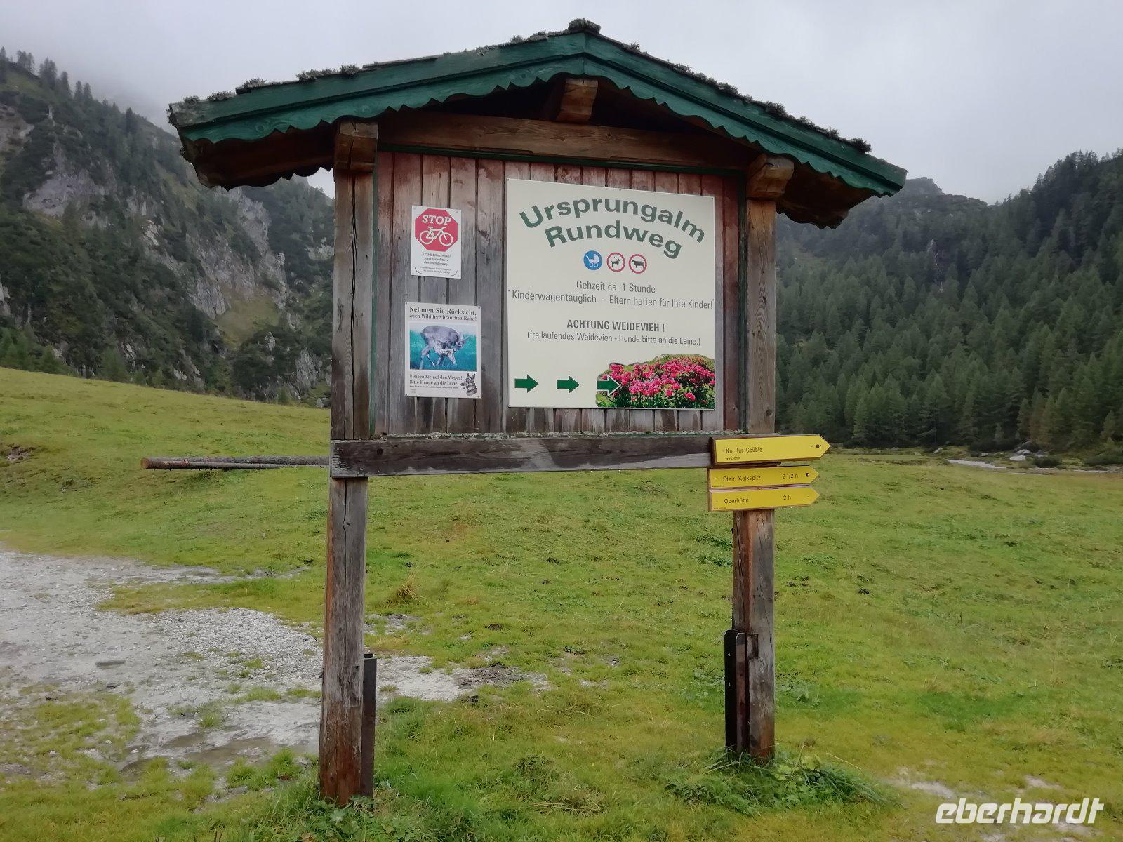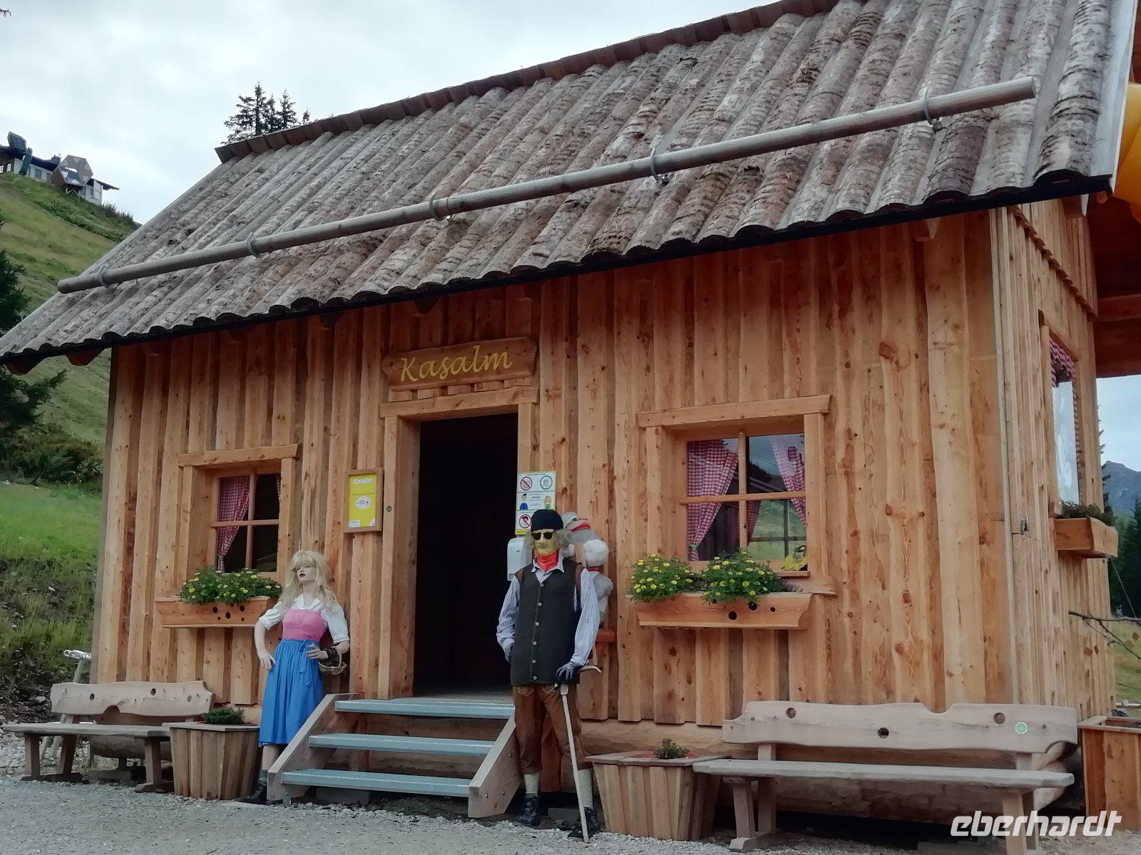 Der Morgen bringt gute Nachrichten: Unserem Ausflug auf die Ursprungalm steht nichts im Weg. Unser Bus ist allerdings zu lang für die Auffahrt zur Alm, aber wir werden mit einem kleineren Bus auf spektakulärer Strecke bis auf eine Höhe von 1604 m gebracht. Die Alm befindet sich am Fuß der Steirischen Kalkspitze in den Schladminger Tauern. Bekannt geworden ist sie vor allem, da einst Szenen für einen Heidifilm dort gedreht wurden. Trotz des nicht gerade schönen Wetter begeben sich alle Gäste auf den Rundweg, wo an mehreren Stellen Tafeln mit allerlei Informationen stehen. Dann kehren wir in die Almhütte ein und Wirt Helmut serviert uns seine Almprodukte.