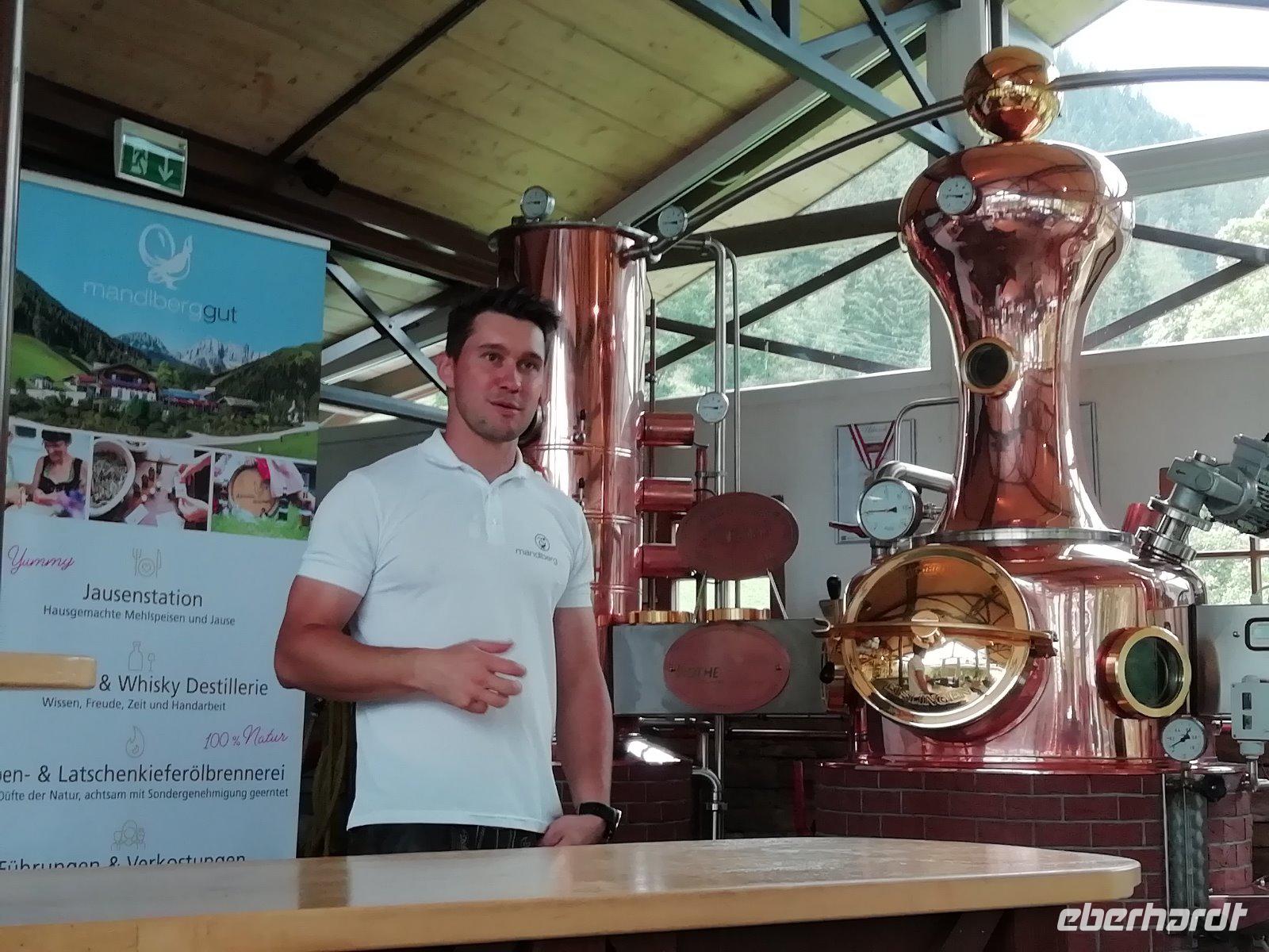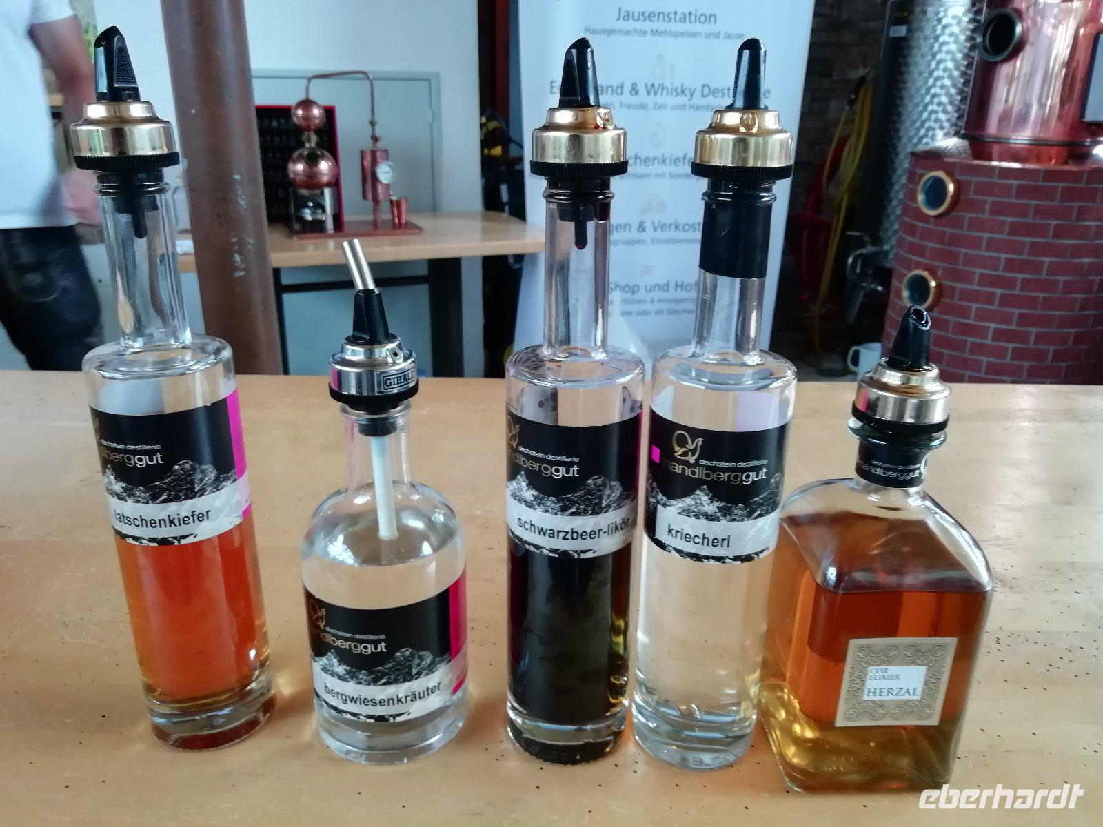 Gut gestärkt geht es ins Ennstal zurück. Weit über die Region hinaus bekannt ist das Mandlberggut, das wir nun besuchen wollen. Unsere Führung beginnt in der Latschenkiefer-Brennerei. Dort wird die Latschenkiefer zur Ölgewinnung genutzt. Wir erfahren u.a., dass 400 kg Nadeln und Zweigspitzen nötig sind, um ca. einen Liter ätherisches Latschenkiefernöl zu gewinnen. Nun besuchen wir noch die Dachstein-Destillerie, wo wir erklärt bekommen, wie aus frischem Obst edle Brände entstehen. Und natürlich dürfen wir auch verkosten. Im kleinen Shop wird dann so manches Mitbringsel gekauft.