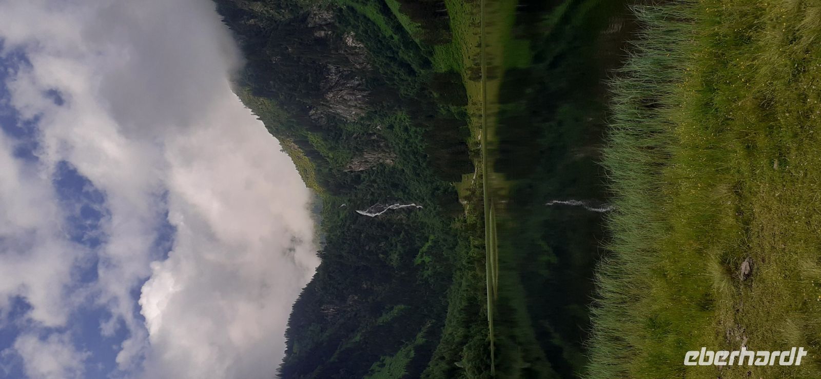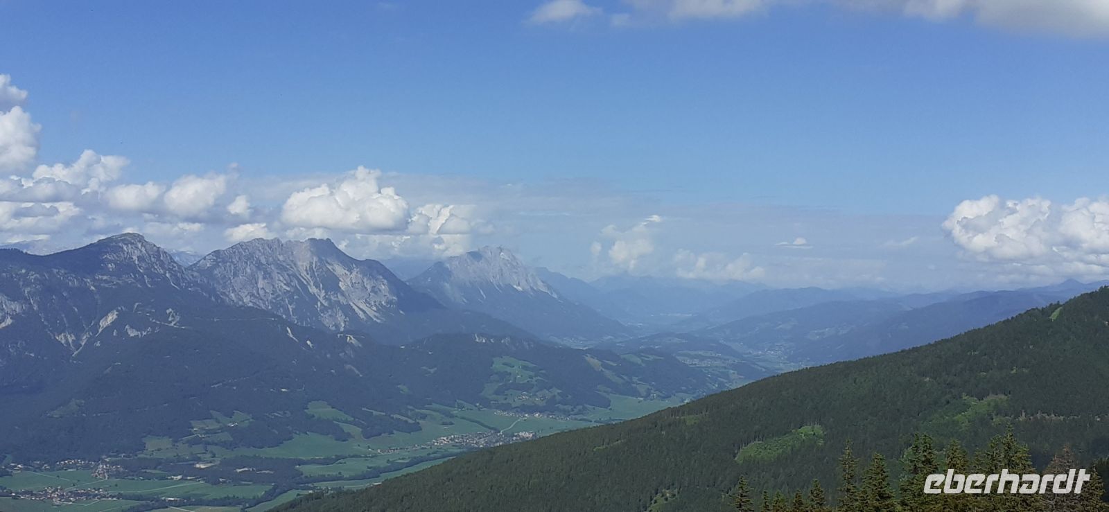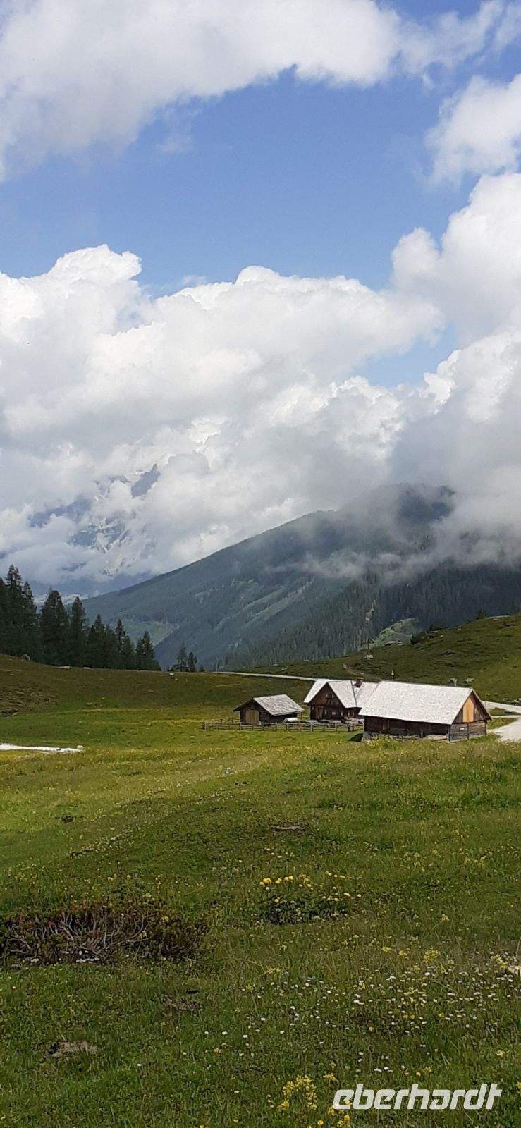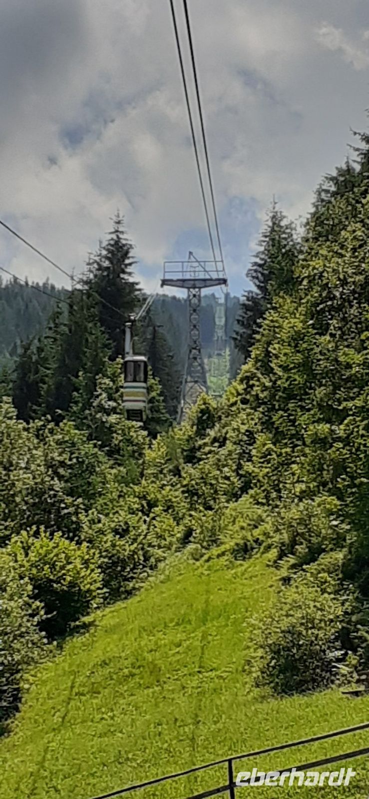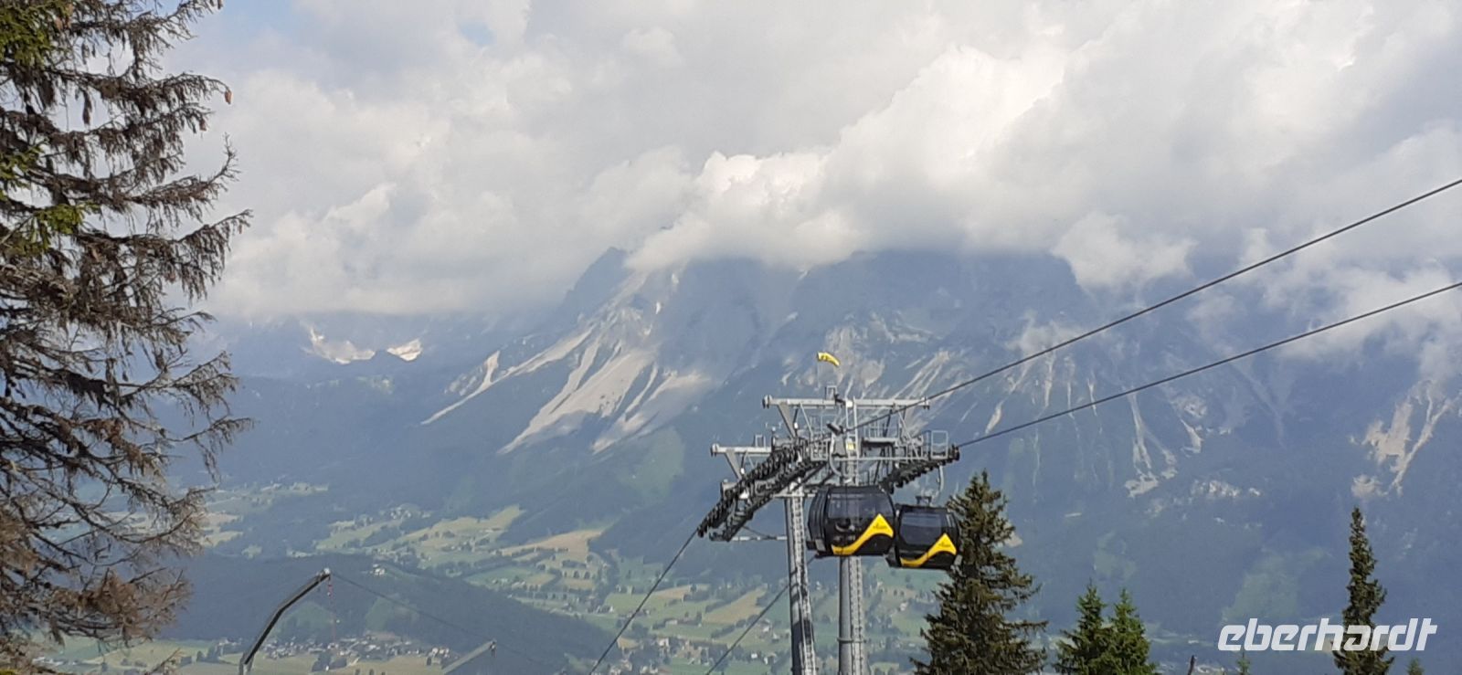 Der Steirische Bodensee war am Morgen unser Ziel. Auch dort führte eine Mautstraße herauf. Vom Parkplatz spazierten wir zum See und sahen schon von weitem den Wasserfall in die Tiefe stürzen. Der See liegt eingebettet zwischen den Schladminger und Hohen Tauern. Wir unternahmen den Rundweg um den See oder noch weiter zum Wasserfall. Dabei spiegelten sich die Berge und Wolken im See. Da das Wetter durchhielt beschlossen wir unserem Hausberg dem Hauser Kaibling einen Besuch abzustatten. Die neue Gondel fuhr noch nicht und so nutzten wir die nostalgische Gondel im Ort. Einmal umsteigen und schon waren wir oben. Wer Lust hatte wanderte hinauf auf den Gipfel, zur Kaibling Hütte oder kehrte in der Berghütte ein.