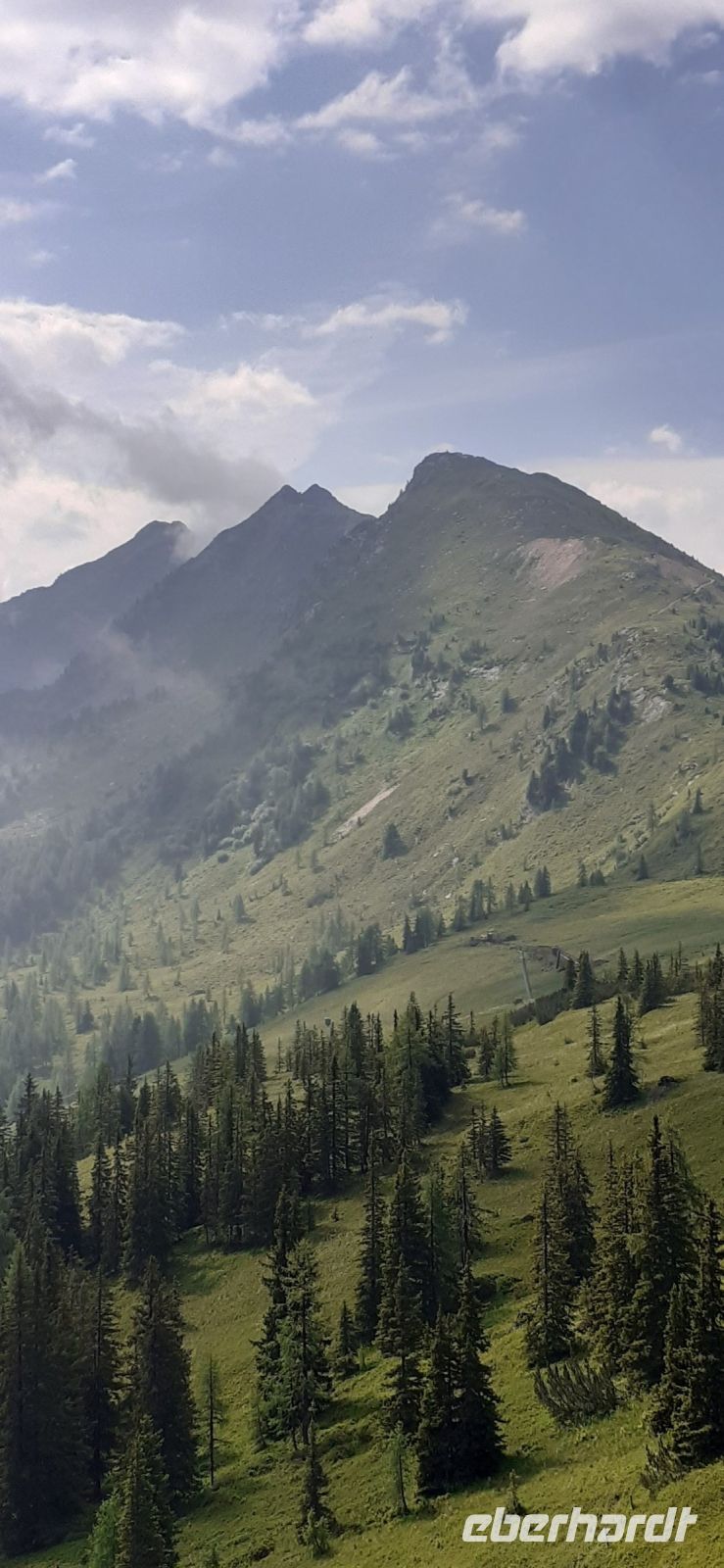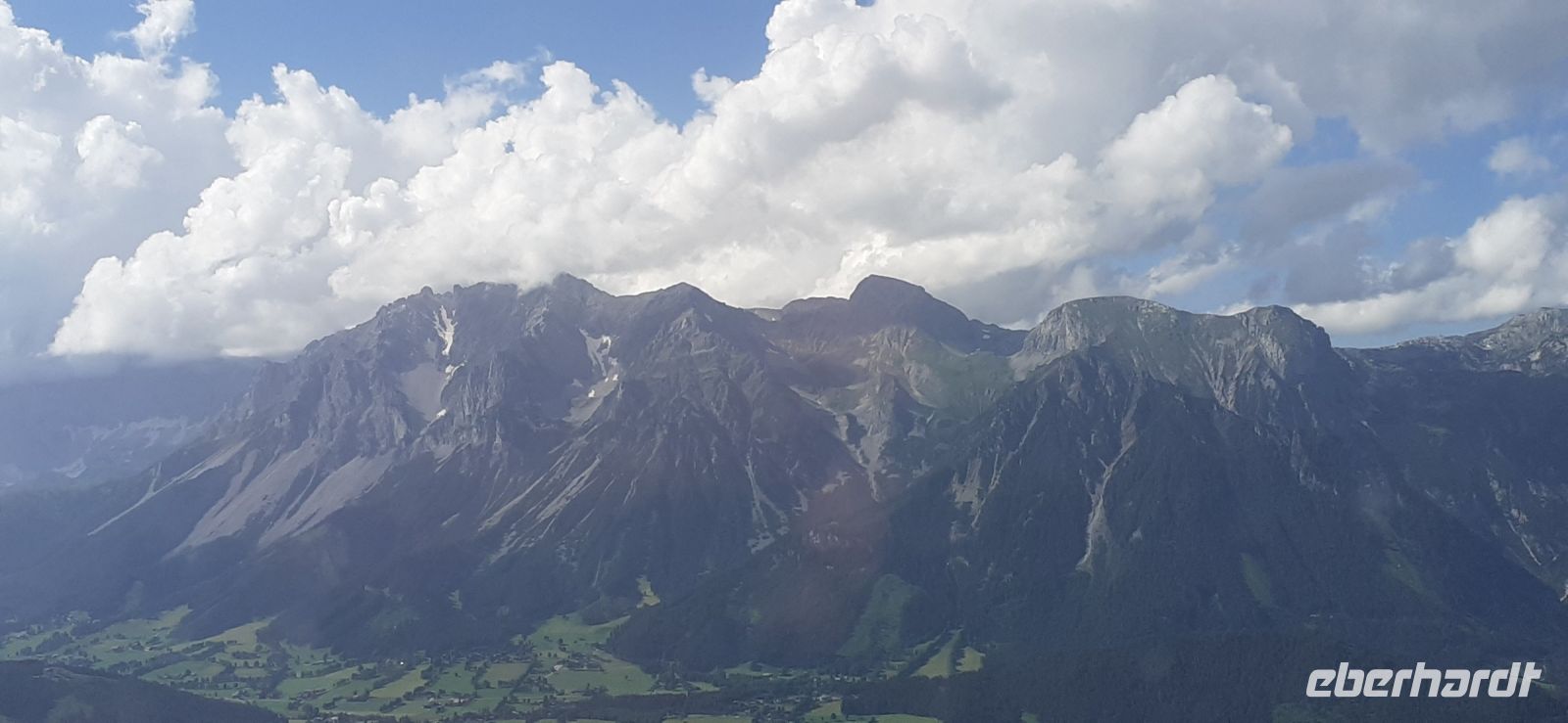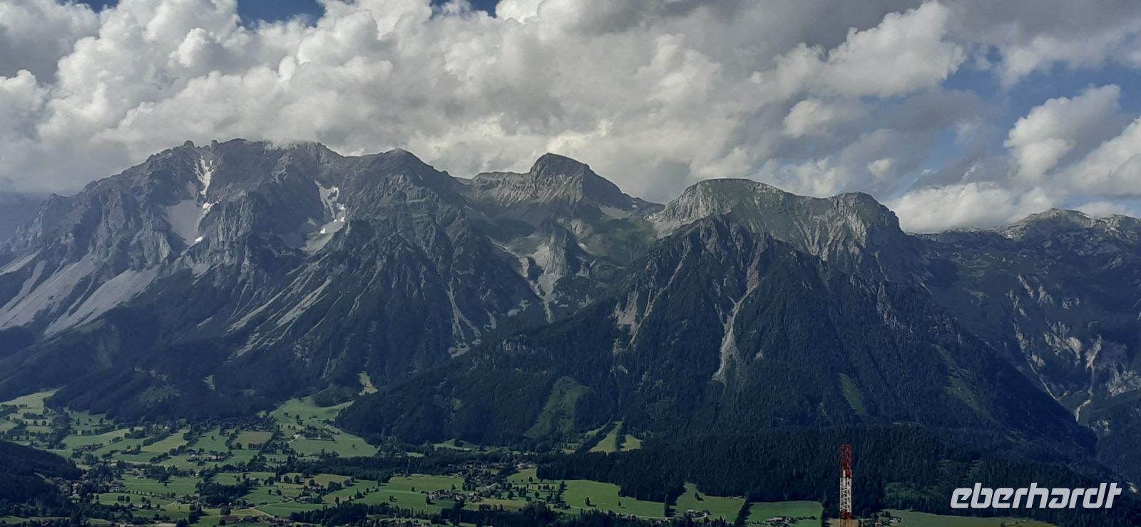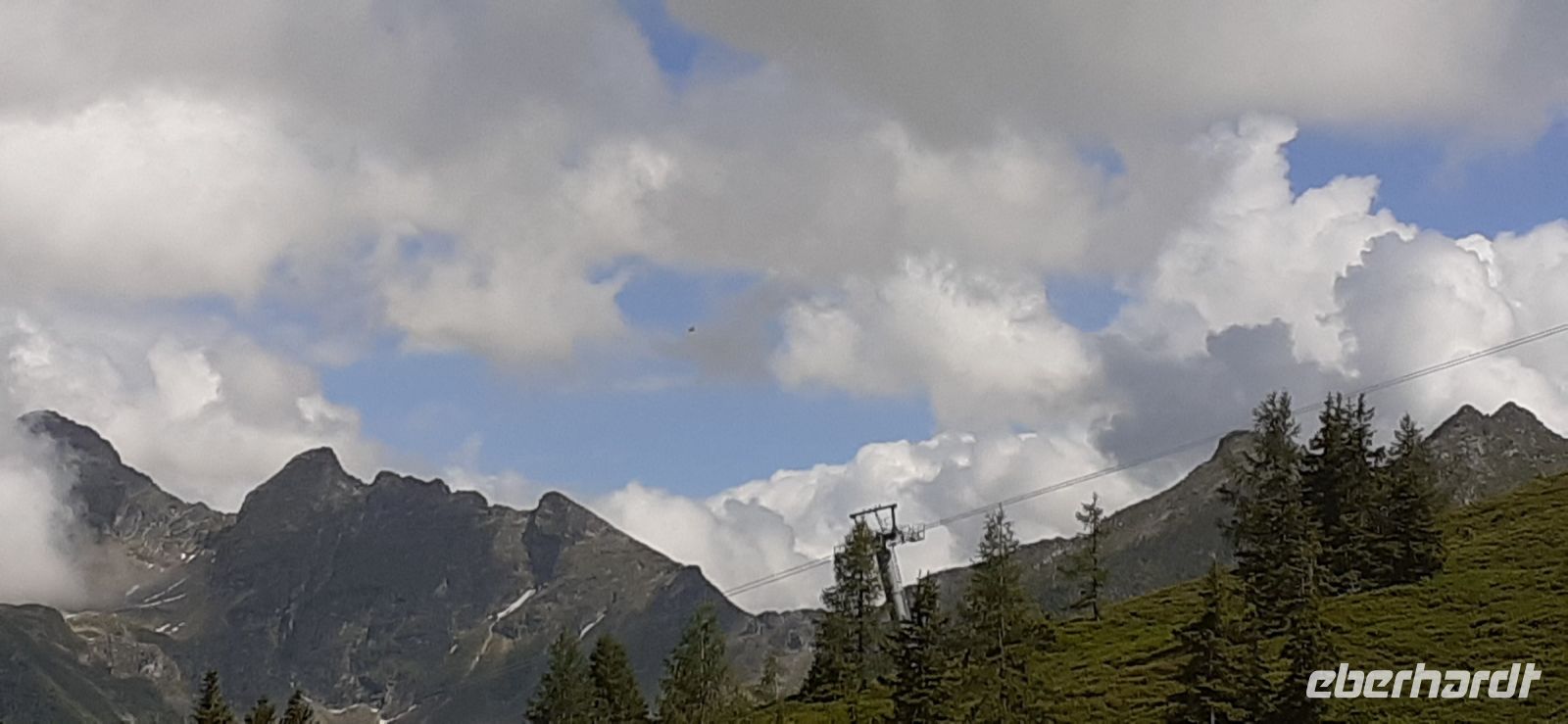 Der Steirische Bodensee war am Morgen unser Ziel. Auch dort führte eine Mautstraße herauf. Vom Parkplatz spazierten wir zum See und sahen schon von weitem den Wasserfall in die Tiefe stürzen. Der See liegt eingebettet zwischen den Schladminger und Hohen Tauern. Wir unternahmen den Rundweg um den See oder noch weiter zum Wasserfall. Dabei spiegelten sich die Berge und Wolken im See. Da das Wetter durchhielt beschlossen wir unserem Hausberg dem Hauser Kaibling einen Besuch abzustatten. Die neue Gondel fuhr noch nicht und so nutzten wir die nostalgische Gondel im Ort. Einmal umsteigen und schon waren wir oben. Wer Lust hatte wanderte hinauf auf den Gipfel, zur Kaibling Hütte oder kehrte in der Berghütte ein.