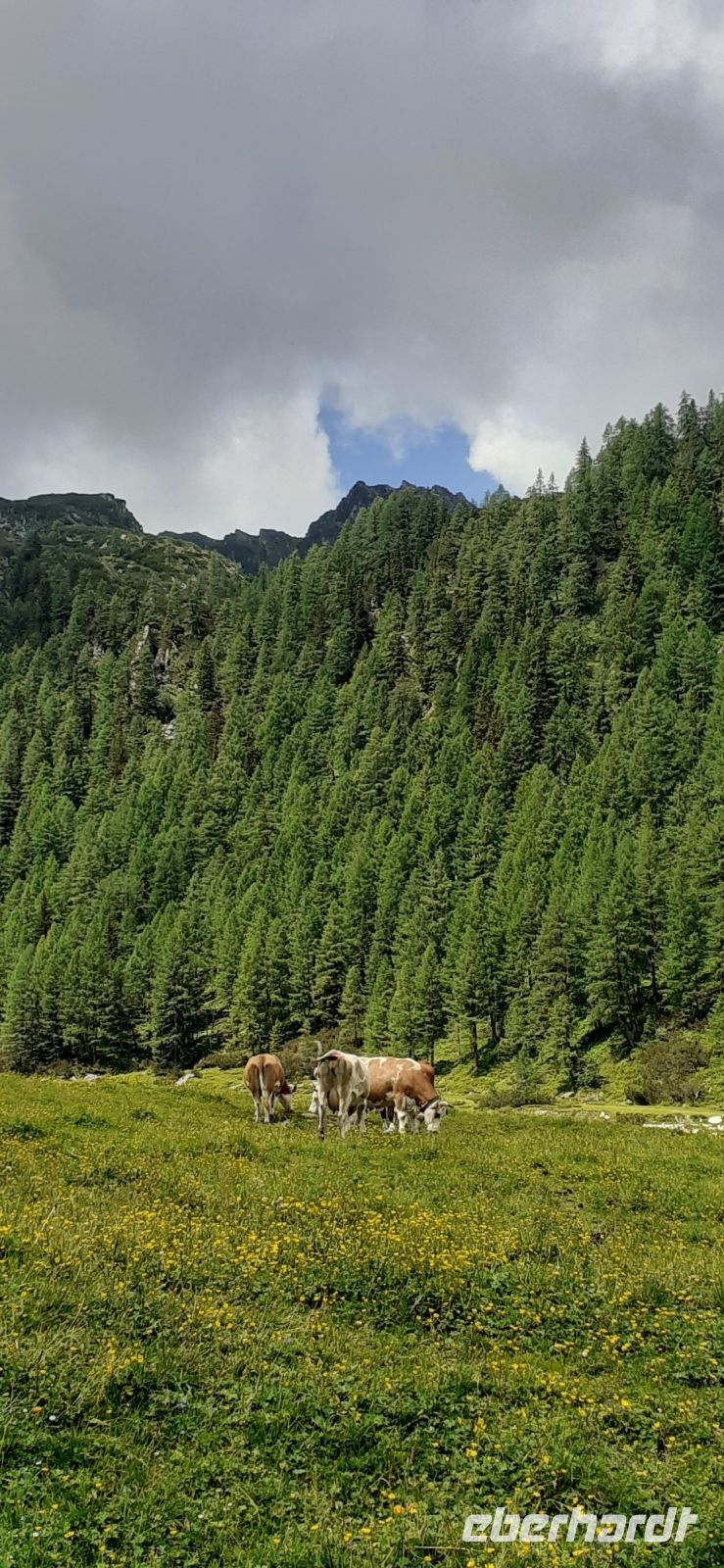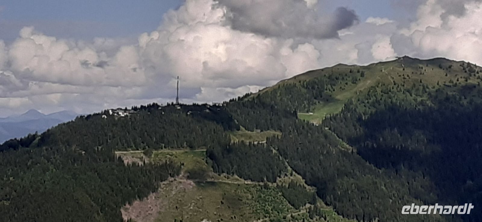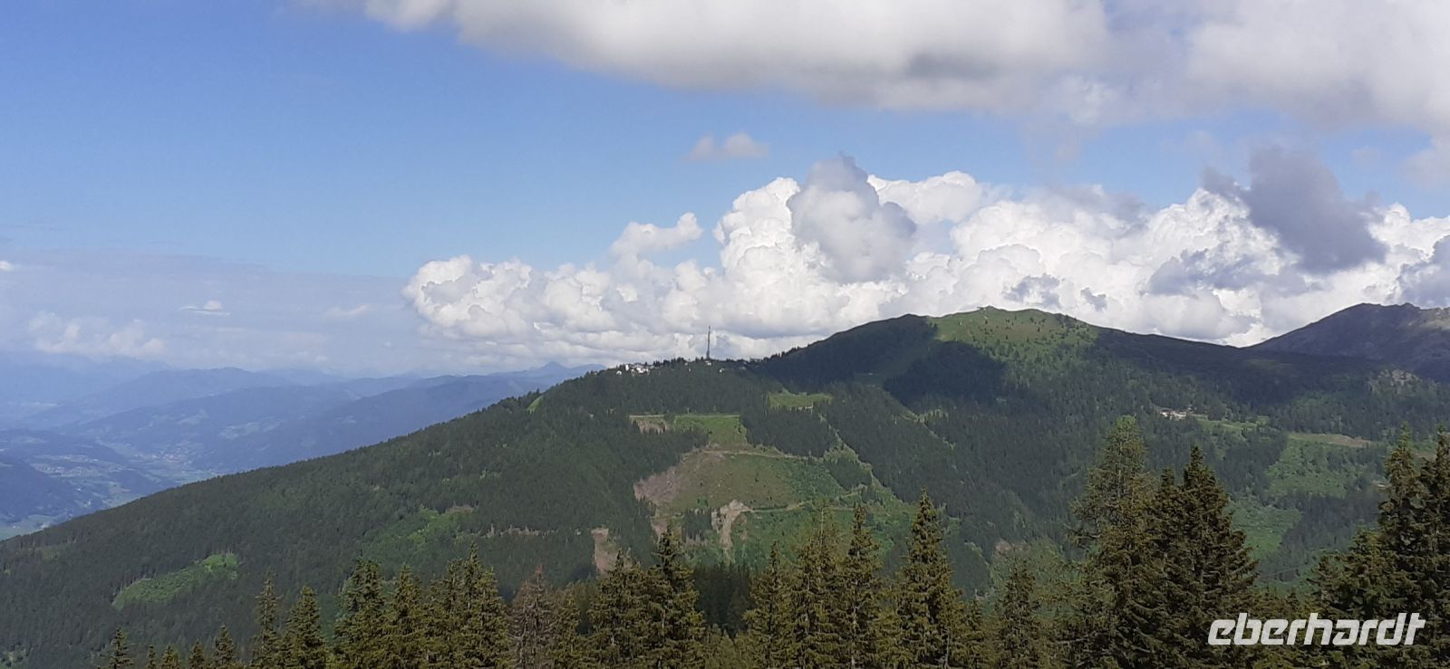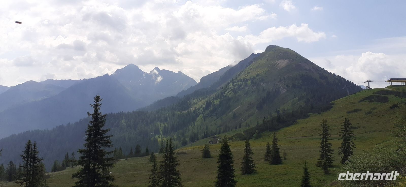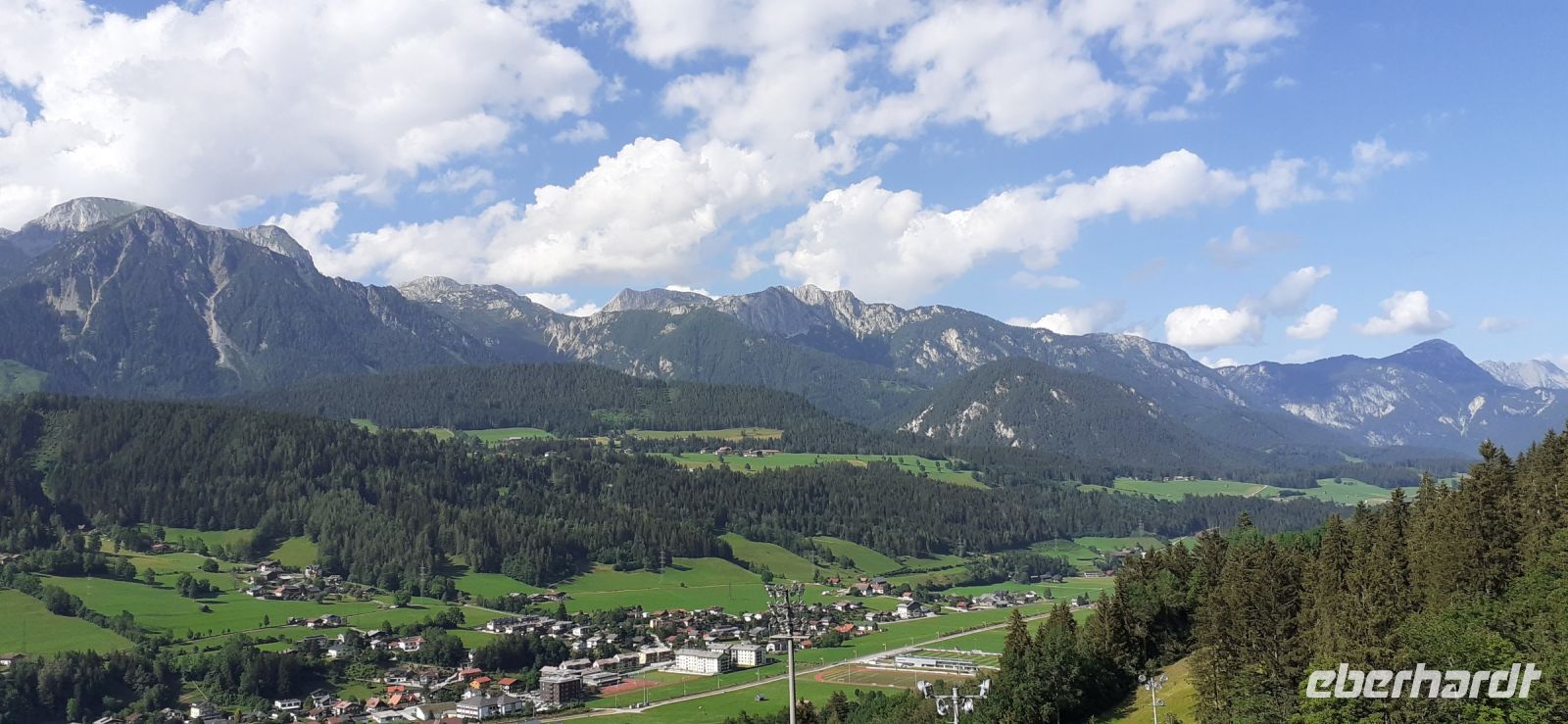 Der Steirische Bodensee war am Morgen unser Ziel. Auch dort führte eine Mautstraße herauf. Vom Parkplatz spazierten wir zum See und sahen schon von weitem den Wasserfall in die Tiefe stürzen. Der See liegt eingebettet zwischen den Schladminger und Hohen Tauern. Wir unternahmen den Rundweg um den See oder noch weiter zum Wasserfall. Dabei spiegelten sich die Berge und Wolken im See. Da das Wetter durchhielt beschlossen wir unserem Hausberg dem Hauser Kaibling einen Besuch abzustatten. Die neue Gondel fuhr noch nicht und so nutzten wir die nostalgische Gondel im Ort. Einmal umsteigen und schon waren wir oben. Wer Lust hatte wanderte hinauf auf den Gipfel, zur Kaibling Hütte oder kehrte in der Berghütte ein.