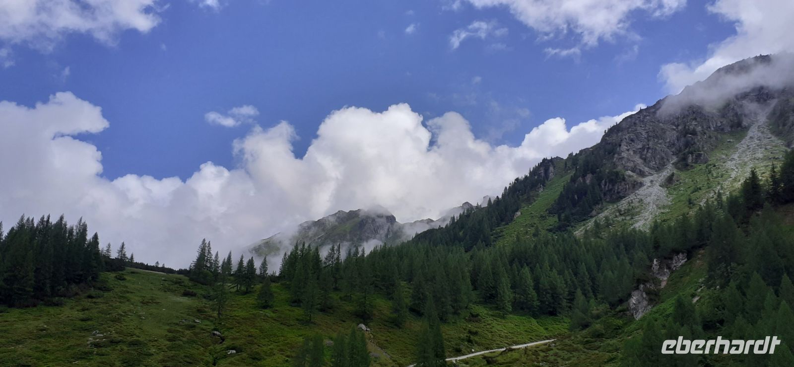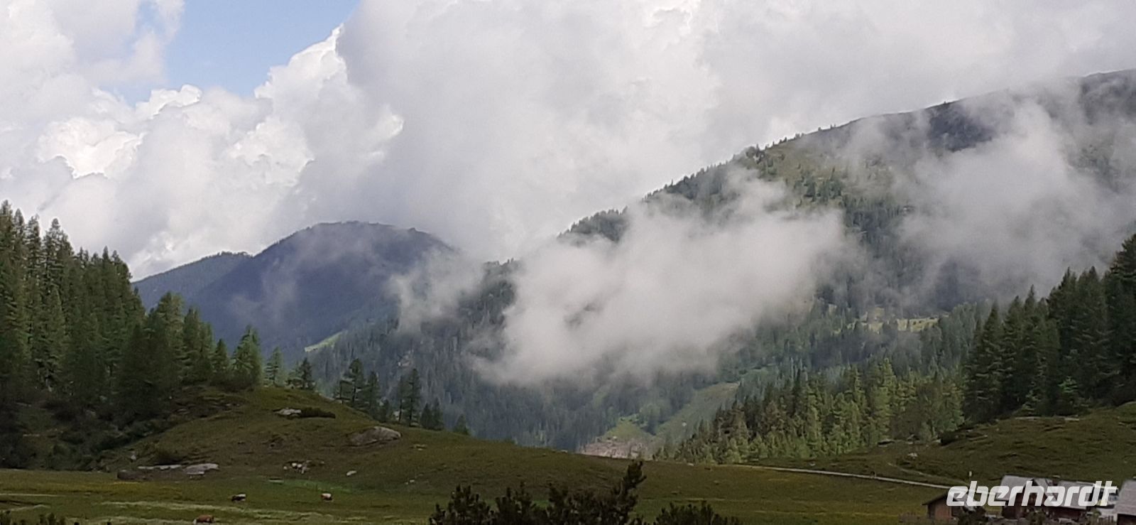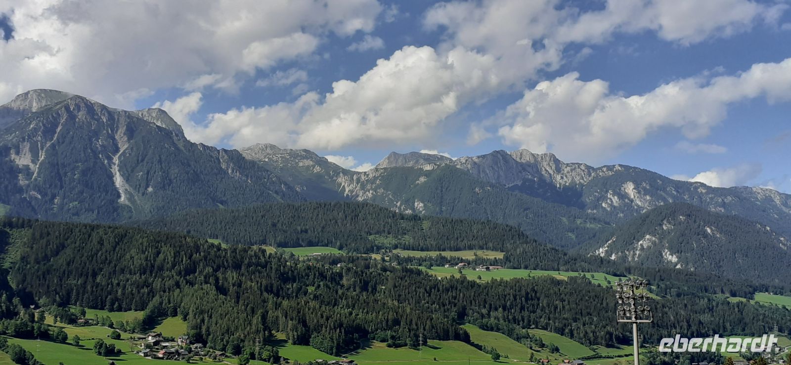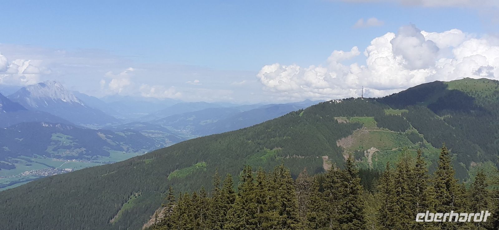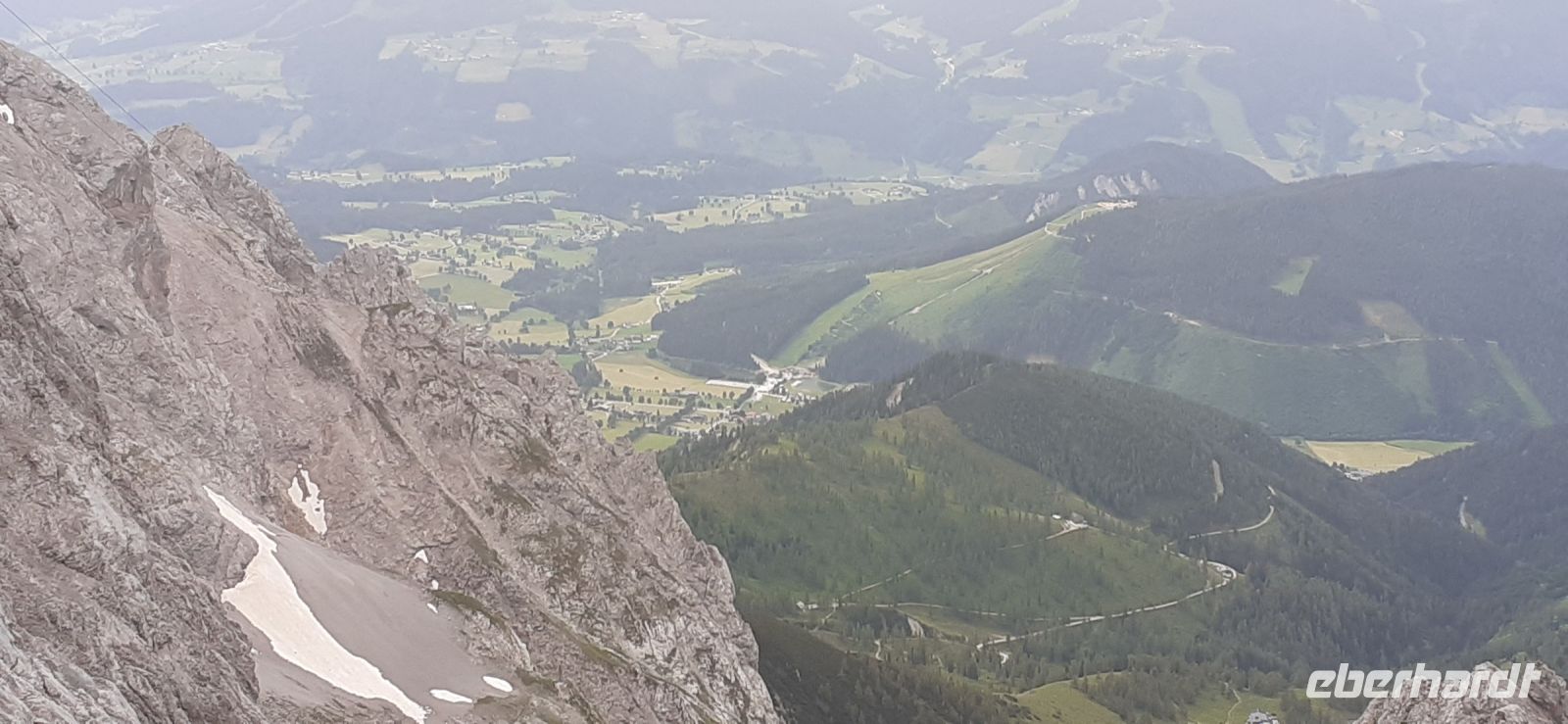 Der Steirische Bodensee war am Morgen unser Ziel. Auch dort führte eine Mautstraße herauf. Vom Parkplatz spazierten wir zum See und sahen schon von weitem den Wasserfall in die Tiefe stürzen. Der See liegt eingebettet zwischen den Schladminger und Hohen Tauern. Wir unternahmen den Rundweg um den See oder noch weiter zum Wasserfall. Dabei spiegelten sich die Berge und Wolken im See. Da das Wetter durchhielt beschlossen wir unserem Hausberg dem Hauser Kaibling einen Besuch abzustatten. Die neue Gondel fuhr noch nicht und so nutzten wir die nostalgische Gondel im Ort. Einmal umsteigen und schon waren wir oben. Wer Lust hatte wanderte hinauf auf den Gipfel, zur Kaibling Hütte oder kehrte in der Berghütte ein.