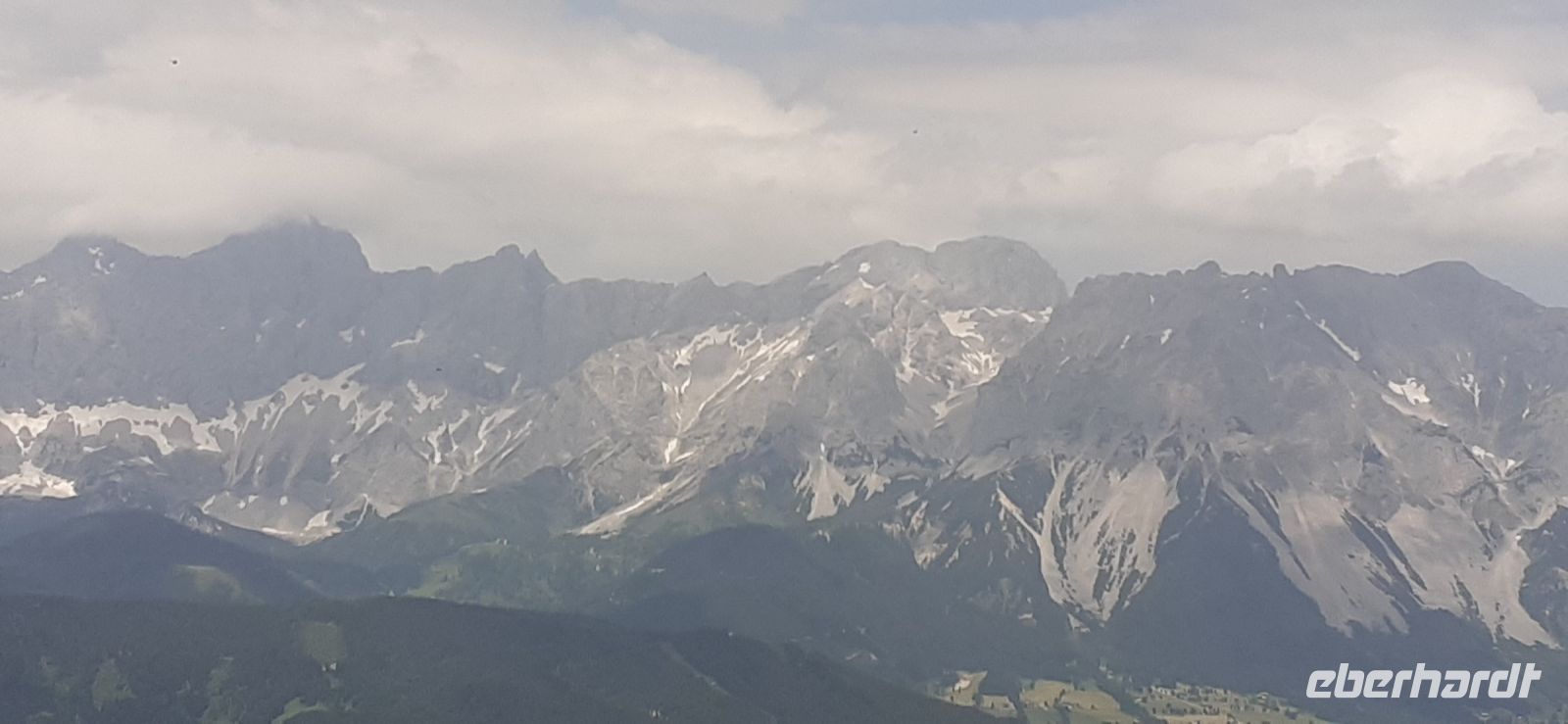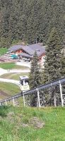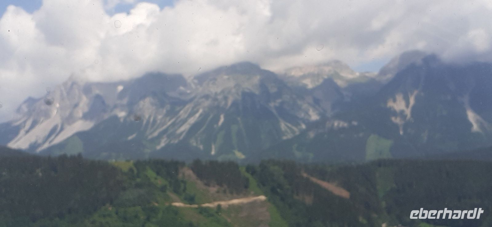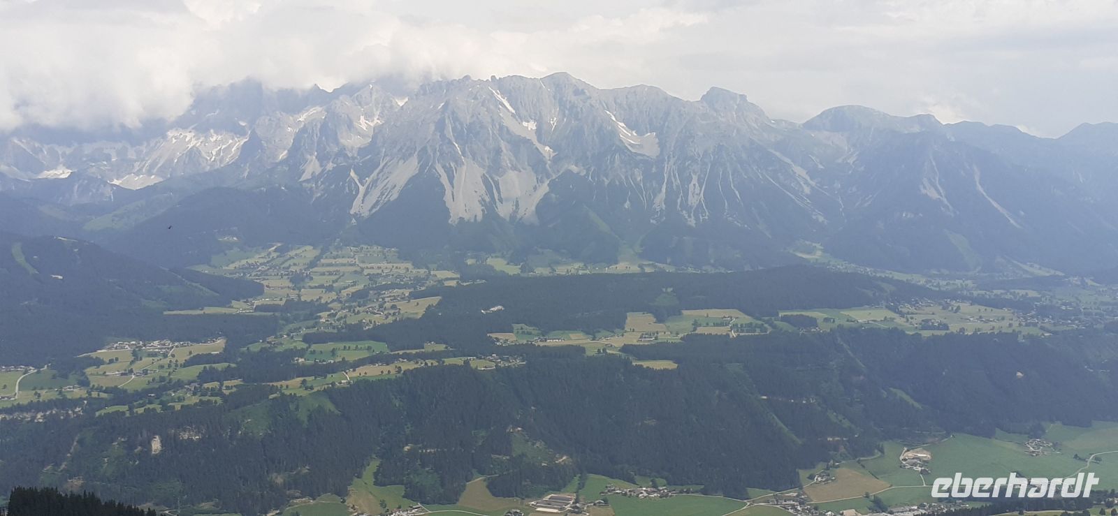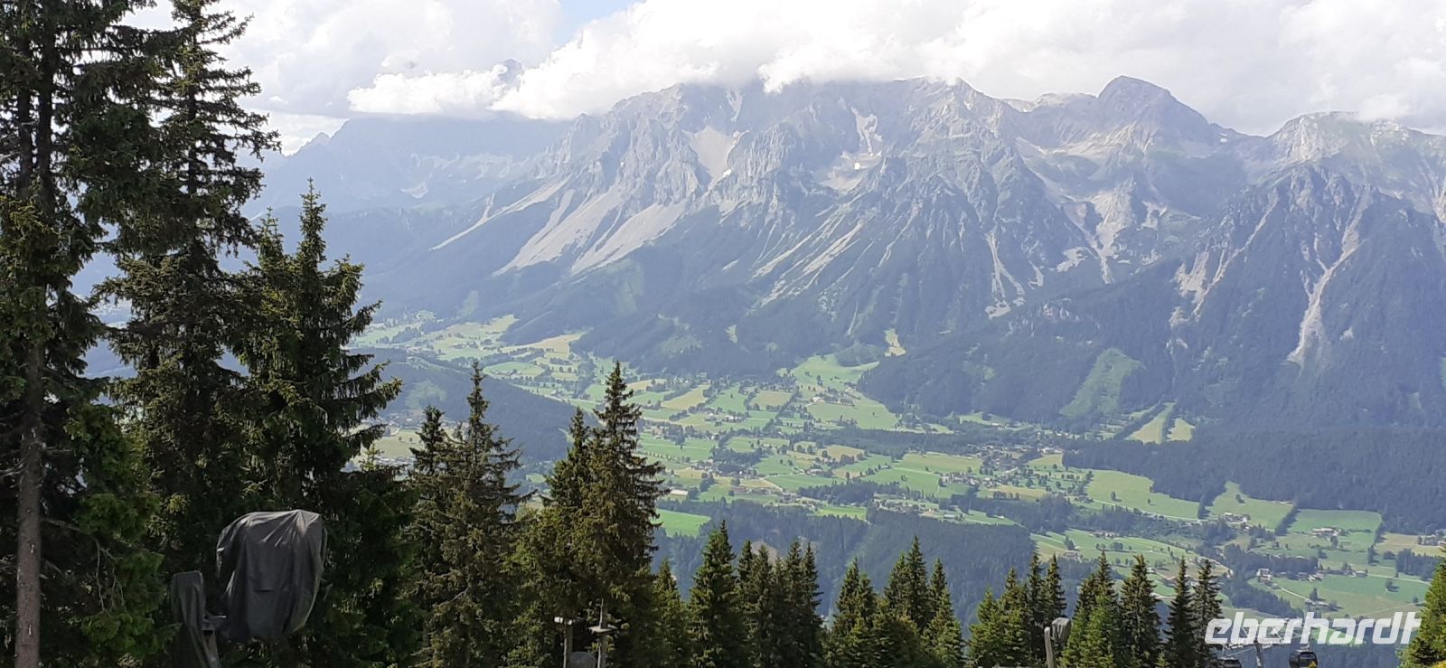Die Ursprungalm war unser Ziel. Da wir nicht mit unserem Bus hinauf fahren durften stiegen wir in den Shuttelbus um der uns übe die Kurvenreiche Straße zur Ursprungalm in 1610m brachte. Uns erwartete wunder schöne Natur und Landschaft mit blühenden Wiesen und weidenten Kühen. Kein Wunder das dort in der 1968 ein Heidifilm gedreht wurde. Leider durfte er nie gezeigt werden den die Schweizer pochten auf ihre Rechte. Auf einem schönen Rundweg wanderten wir wieder zur Alm immer mit dem Blick auf die Hohen Tauern. Auf der Terrasse der Alm kehrten wir ein und ließen uns die Köstlichkeiten munden. Nach einem weiteren Spaziergang brachte uns der Bus wieder zur Planai Talstation. Spontan haben wir uns entschieden noch einmal auf die Planai zu fahren. Blauer Himmel und Sonnenschein und fast keine Wolken lockten uns nach oben. Wir wurden belohnt mit einem Blick in die Region. Das Dachsteinmassiv ohne Wolken. Was wollten wir mehr.