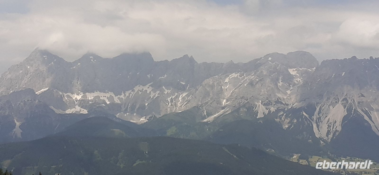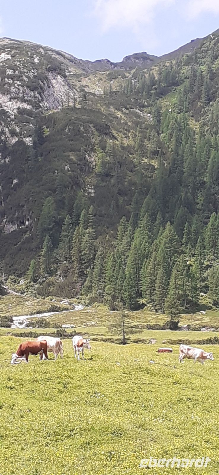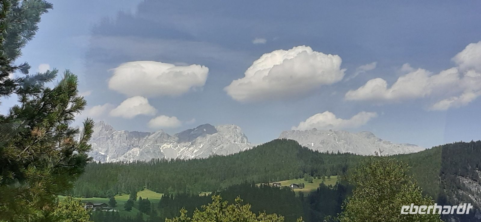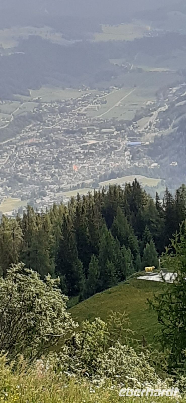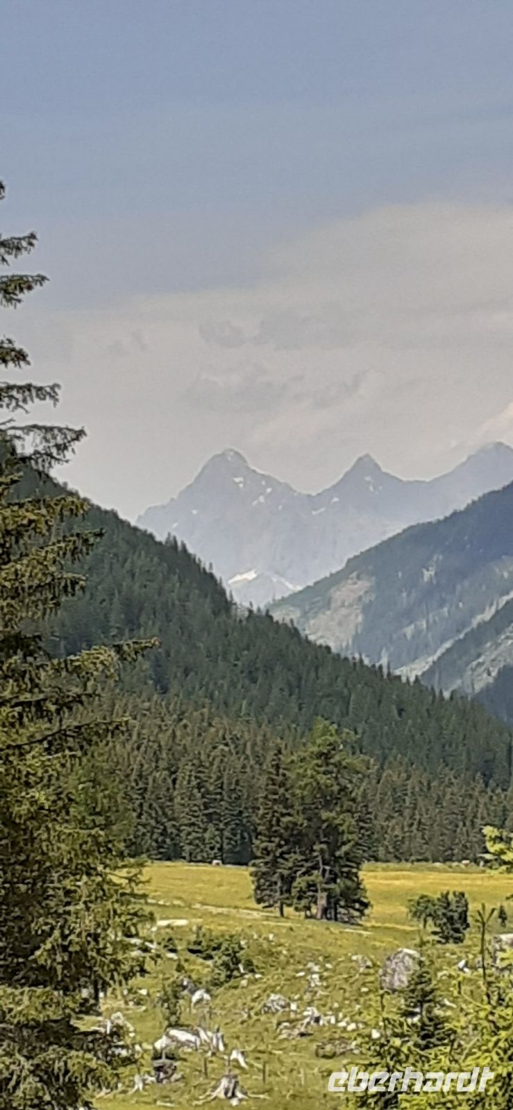 Die Ursprungalm war unser Ziel. Da wir nicht mit unserem Bus hinauf fahren durften stiegen wir in den Shuttelbus um der uns übe die Kurvenreiche Straße zur Ursprungalm in 1610m brachte. Uns erwartete wunder schöne Natur und Landschaft mit blühenden Wiesen und weidenten Kühen. Kein Wunder das dort in der 1968 ein Heidifilm gedreht wurde. Leider durfte er nie gezeigt werden den die Schweizer pochten auf ihre Rechte. Auf einem schönen Rundweg wanderten wir wieder zur Alm immer mit dem Blick auf die Hohen Tauern. Auf der Terrasse der Alm kehrten wir ein und ließen uns die Köstlichkeiten munden. Nach einem weiteren Spaziergang brachte uns der Bus wieder zur Planai Talstation. Spontan haben wir uns entschieden noch einmal auf die Planai zu fahren. Blauer Himmel und Sonnenschein und fast keine Wolken lockten uns nach oben. Wir wurden belohnt mit einem Blick in die Region. Das Dachsteinmassiv ohne Wolken. Was wollten wir mehr.