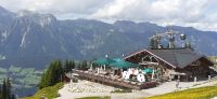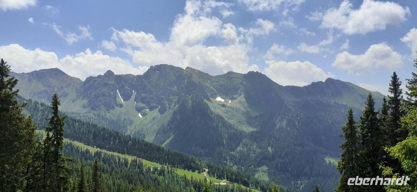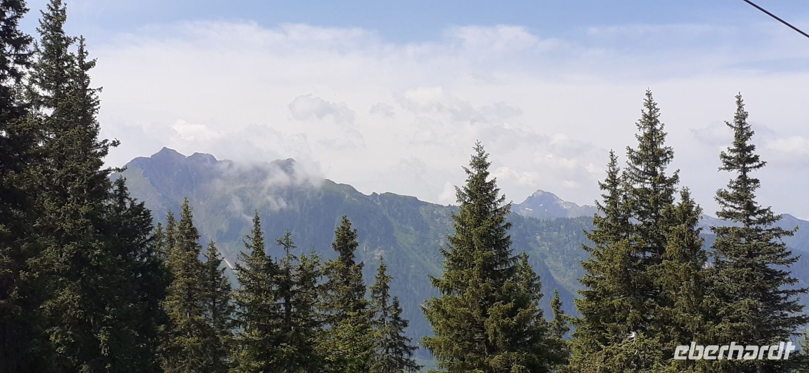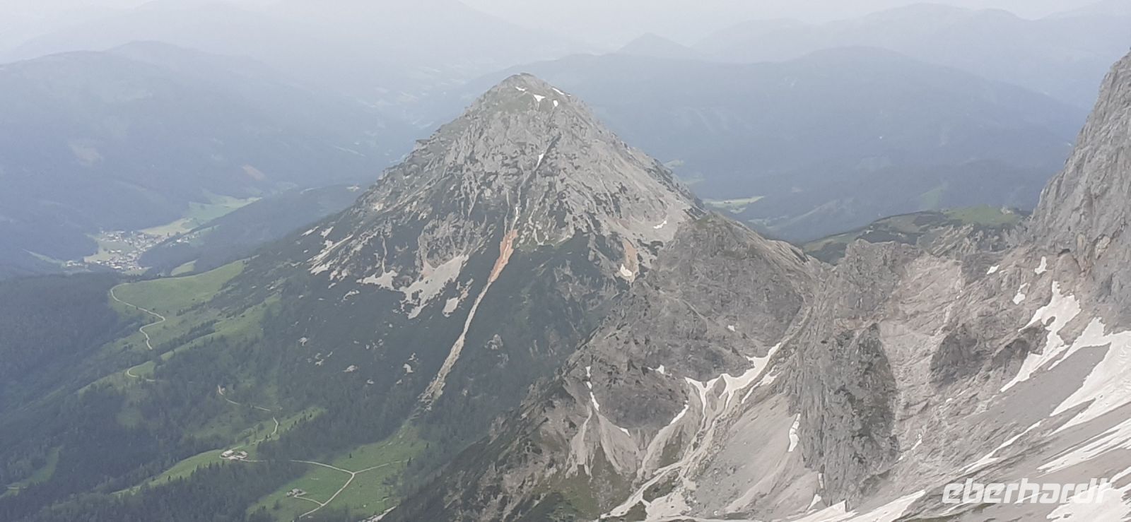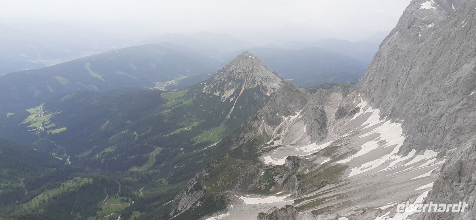 Die Ursprungalm war unser Ziel. Da wir nicht mit unserem Bus hinauf fahren durften stiegen wir in den Shuttelbus um der uns übe die Kurvenreiche Straße zur Ursprungalm in 1610m brachte. Uns erwartete wunder schöne Natur und Landschaft mit blühenden Wiesen und weidenten Kühen. Kein Wunder das dort in der 1968 ein Heidifilm gedreht wurde. Leider durfte er nie gezeigt werden den die Schweizer pochten auf ihre Rechte. Auf einem schönen Rundweg wanderten wir wieder zur Alm immer mit dem Blick auf die Hohen Tauern. Auf der Terrasse der Alm kehrten wir ein und ließen uns die Köstlichkeiten munden. Nach einem weiteren Spaziergang brachte uns der Bus wieder zur Planai Talstation. Spontan haben wir uns entschieden noch einmal auf die Planai zu fahren. Blauer Himmel und Sonnenschein und fast keine Wolken lockten uns nach oben. Wir wurden belohnt mit einem Blick in die Region. Das Dachsteinmassiv ohne Wolken. Was wollten wir mehr.