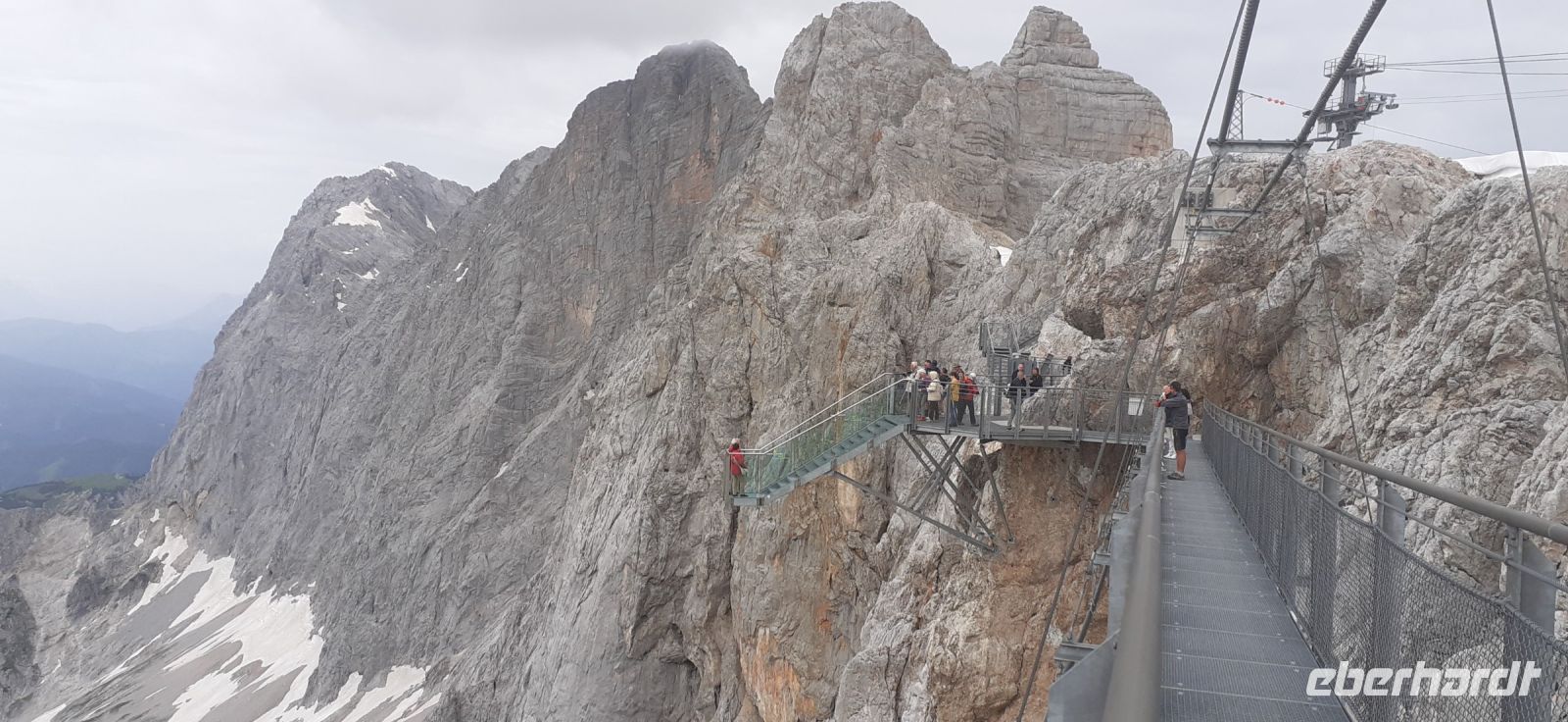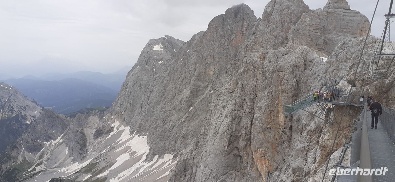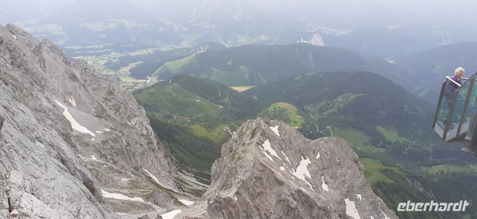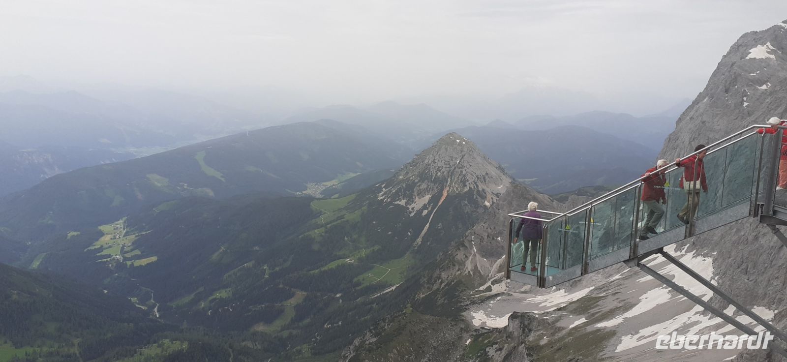 Eigentlich hatten wir den Besuch des Dachsteins für heute schon abgesagt. Es sollte der schlechteste Tag der Woche sein. Doch ein Blick aus dem Fester und die Webcam des Dachsteins belehrte uns eines Besseren. Schnell an den Computer und die nächst mögliche Gondel reservieren. Wir hatten Glück es war zwar etwas bewölkt aber der Rundumblick auf die Berge und den Gletscher war gewährleistet. Da das Wetter schnell umschlagen kann liefen wir hinunter zur Hängebrücke. Schnell die Tickets gekauft und natürlich die Treppe ins Nichts für schöne Fotos genutzt. Anschließend ging es in die Eishöhle wo jedes Jahr neue Eisfiguren entstehen. Ein schönes Erlebnis. Der Himmel trübte sich etwas ein und wir besuchten das Mandelberggut. Dort erhielten wir in der Latschenbrennerei Informationen über die Herstellung des Öl und die Verarbeitung zu verschiedenen Produkten. Anschließend erfuhren wir in der Schnapsbrennerei einiges über die Schnapsherstellung und über die Whisky Herstellung. Ein besonderer Whisky wir ja in der Eishöhle in Fässern gelagert. Eine Kostprobe durfte natürlich auch nicht fehlen. Es fing an zu regnen und deshalb besuchten wir das Schloss Trautenfels. Nach einer kurzen Einführung über die Geschichte des Schlosses und in das Museum schauten wir uns die Ausstellung an. Besonders beeindruckend war der Marmorsaal mit seinen schönen Malereien. Auch die Ausstellungen über die Natur- und Kulturgeschichte waren sehenswert. Die Sonderausstellung über die Geschichte der Medizin gab Einblick in die Entwicklung des Gesundheitswesens in der Steiermark.