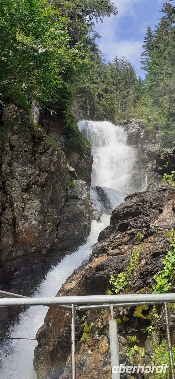 Das Wetter sah gut aus und so starteten wir in Richtung Schladming zur Talstation des Hochwurzen. Die Gondelbahn brachte uns bequem hinauf auf 1850 Meter. Eine kleine Wanderung zum Gipfelkreuz schaffte jeder und wurde mit einem Rundum Blick auf die Bergregion belohnt. Ein Erinnerungsfoto durfte natürlich auch nicht fehlen. Auf dem Weg dahin sahen wir schon die ersten Alpenrosen blühen. Bevor wir wieder ins Tal fuhren beobachteten wir die mutigen Go-Cart Fahrer die 7 Kilometer nach unten fuhren. Weiter ging es mit dem Bus auf der Mautstraße zur Reiteralm. Dort kehrten wir in die Gasselhütte zum Mittagessen ein. Einige Gäste probierten den typischen Steirer Käse. Nach dieser Stärkung spazierten einige um den See, wanderten hinauf zum Aussichtspunkt oder relaxten in der Sonne auf der Bank. Wir nutzten das schöne Wetter und fuhren in das Untertal zum Riesachfall. Der Wasserfall stürzt 7 Meter in die Tiefe. Auf zwei Aussichtsplattformen konnten wir beobachten wie das Wasser ins Tal stürzt. Ein schöner Tag ging zu Ende.