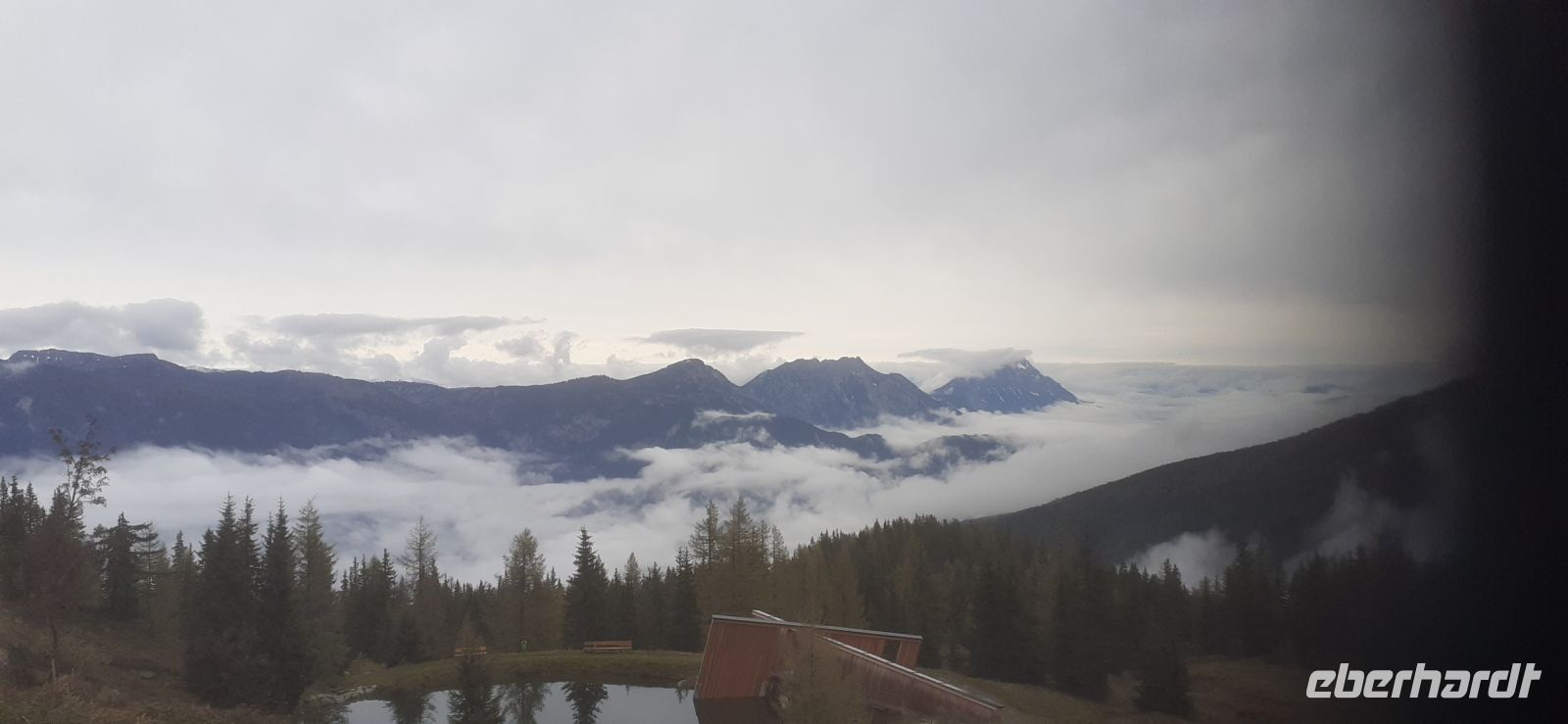 Wir nutzen das schöne Wetter aus und „bestiegen" unseren nächsten Berg. Die Planai der Hausberg von Schladming ist bekannt durch zahlreiche Ski Abfahrtsläufe und internationale Wettkämpfe. Der Schnee war geschmolzen und so nutzen wir die Zeit für einen schönen Spaziergang auf dem Panoramarundweg. Wir waren über den Wolken. Am Anfang war der Blick noch klar doch langsam zogen die Wolken und der Nebel herein. Auch dies war ein besonderes Natur Schauspiel. Anschließend entschlossen wir uns die Oberhofalm in Filzmoos zu besuchen. Wir erreichten den bekannten Wintersportort Filzmoos. Eine Mautstraße führte uns zu den Hofalmen, die sich unterhalb der Bischofsmütze befinden. Wir unternahmen einen Spaziergang rund um den Almsee und zur Holzkirche. In der Oberhof Alm kehrten wir zum Mittag ein. Zurück in Schladming schauten wir im Mandelberggut vorbei. Währen einer Führung in der Latschenkiefer Brennerei erfuhren wir einiges über die Herstellung des Latschenkieferöls. Aus 200 Kilo Latschenkiefer gewinnt man nur einen halben Liter Öl. Es ist sehr aufwendig. Daraus entstehen verschiedene Kosmetik Produkte und Heilmittel. Anschließend besuchten wir die Destillerie. Auch beim Schnapsbrennen gibt es einiges zu beachten. Auf Grund einer eigenen Quelle verfügen Sie über ein sehr weiches Wasser. Dies verbessert die Qualität der Schnäpse. Dabei erfuhren wir ein guter Schnaps muss teuer sein. Den pro Liter erhält der Staat 12.- € Steuern. Natürlich probierten wir auch 2 Gläschen.