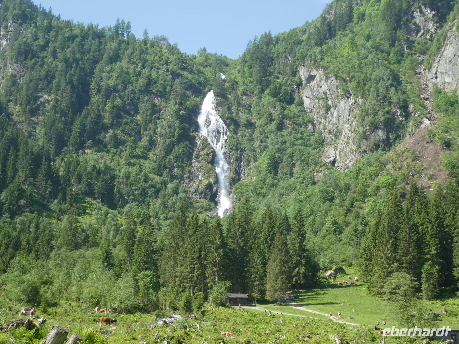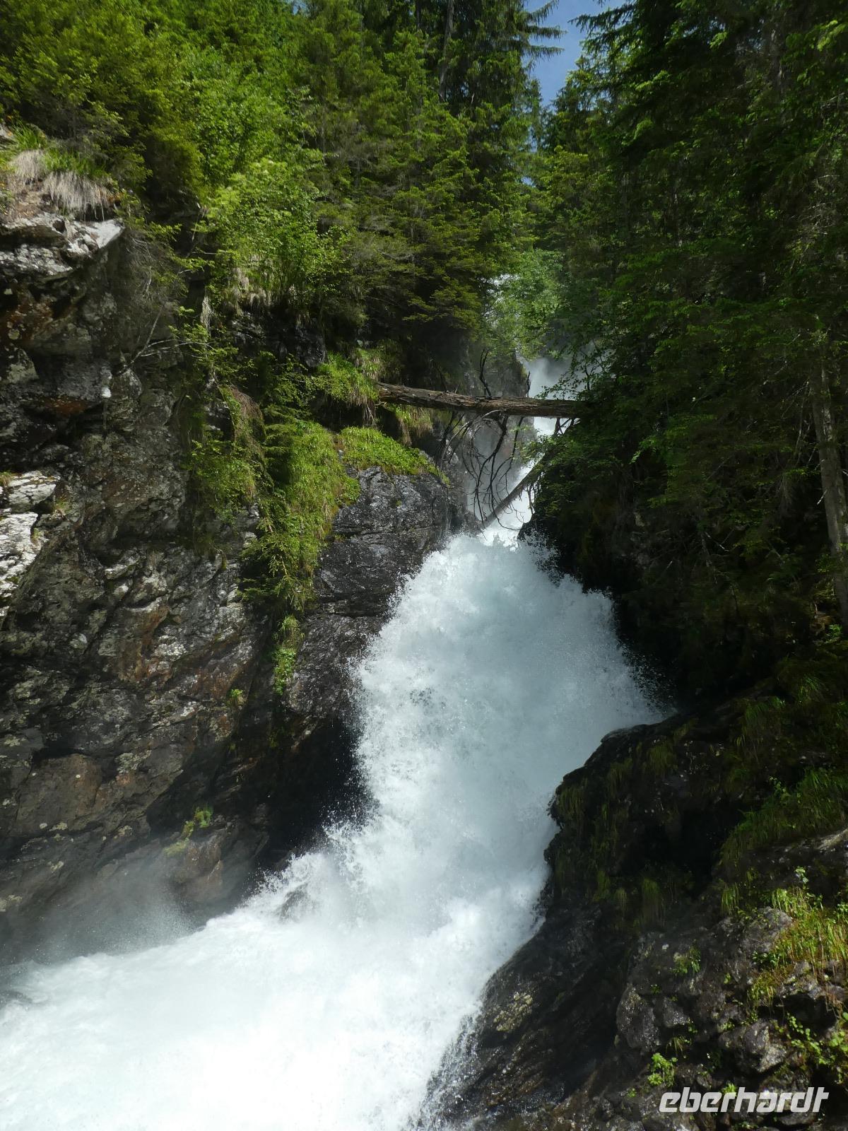 Die Talstation des Hauser Kaibling befindet sich direkt neben dem Hotel. So nutzten wir die Möglichkeit mit der Nostalgiebahn nach oben zu fahren. Auf dem Hausberg von Haus im Ennstal gibt es verschiedene Wandermöglichkeiten. Wir nutzten den Aufstieg zum Gipfelkreuz oder den Wanderweg zur Kaibling Alm. Wieder zurück im Tal fuhren wir in das gebiet des Wilden Wassers. Auf der Mautstraße fuhren wir in das Untertal zum Riesbachwasserfall. Nach der Einkehr im Gasthaus spazierten wir zum unteren Wasserfall. Der seinem Namen wildes Wasser alle Ehre machte. Der Wasserfall stürzte mit voller Macht herunter. Auf der oberen Plattform erhielt man eine natürliche Dusche. Leider war es unser letzter Tag in der schönen Bergwelt der Schladming-Dachstein Region. Zum Abendessen wurden wir mit einem Grillbuffet verwöhnt.