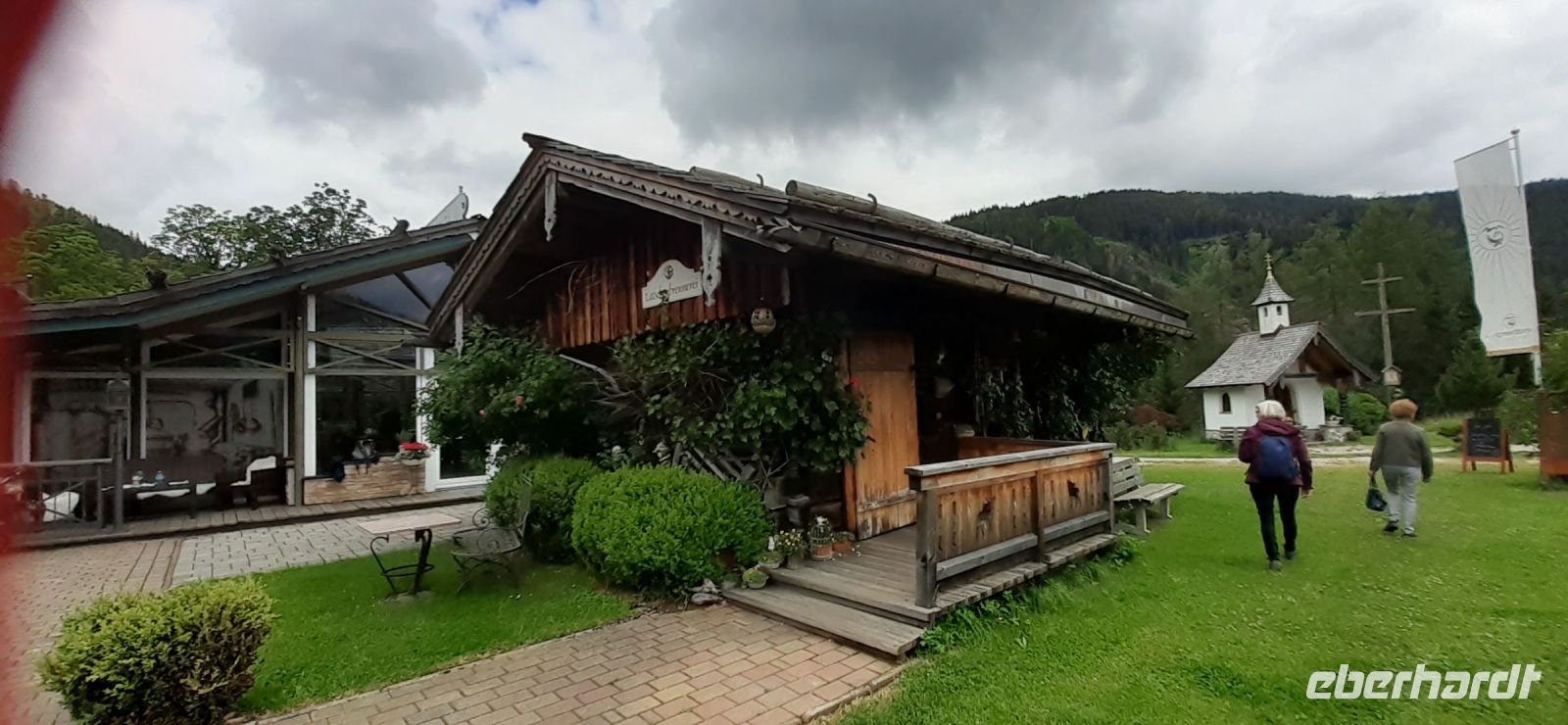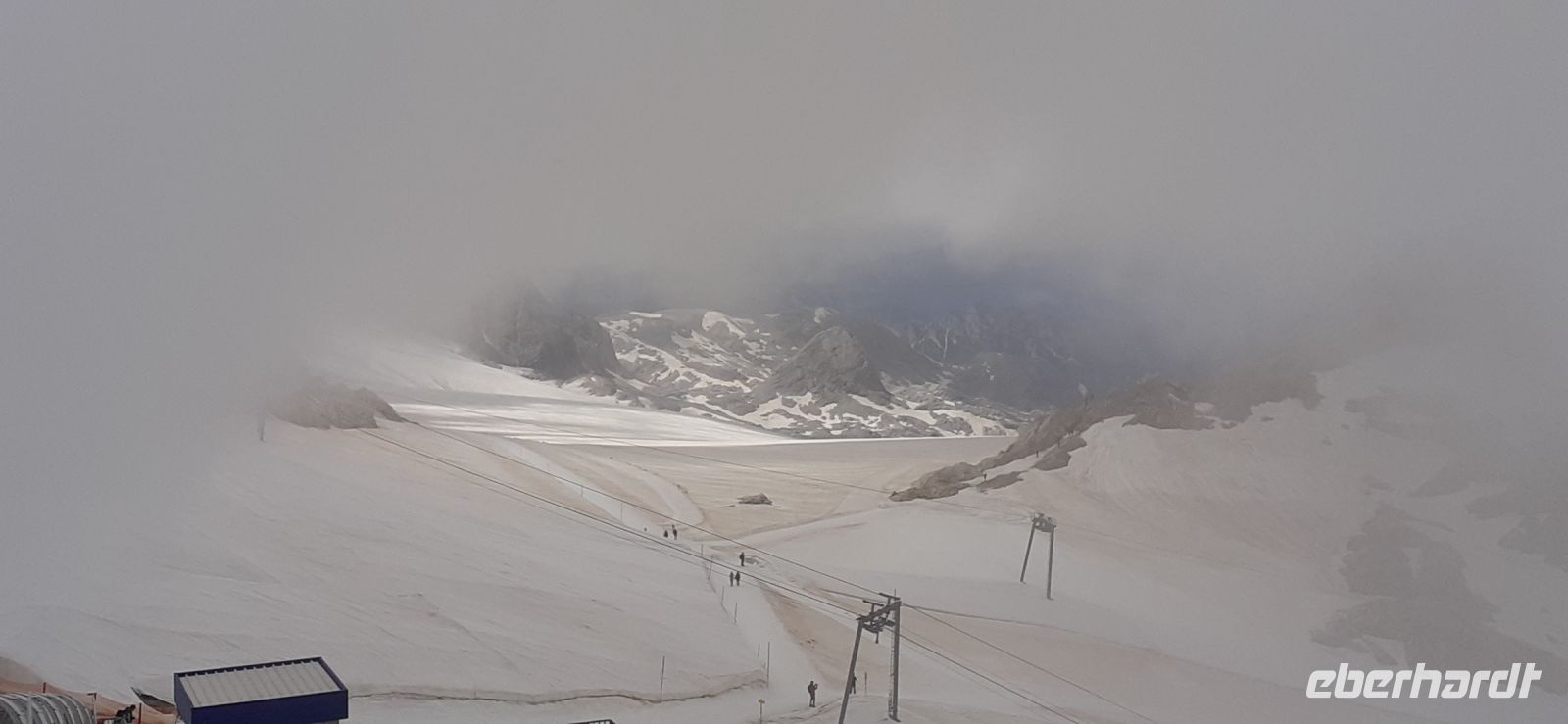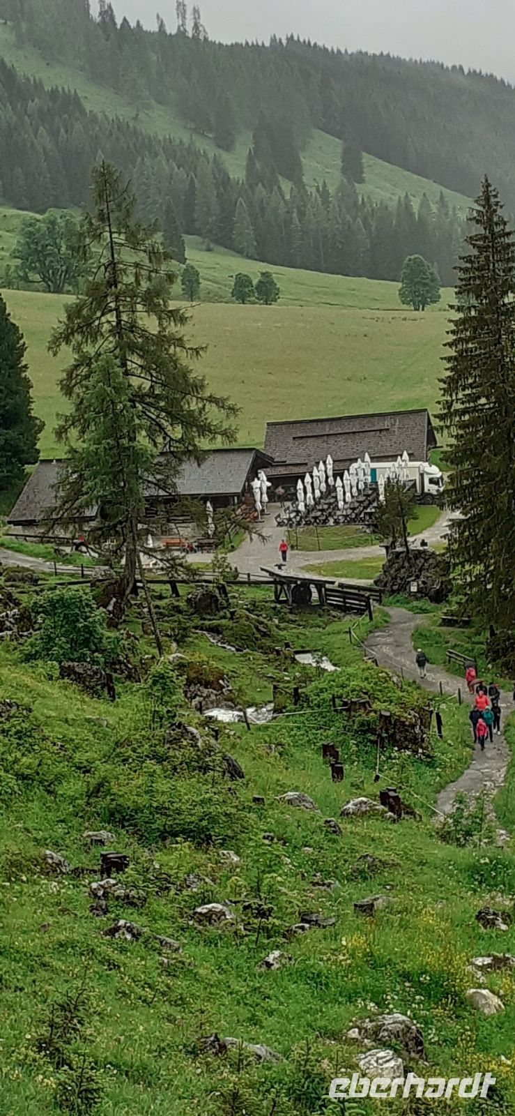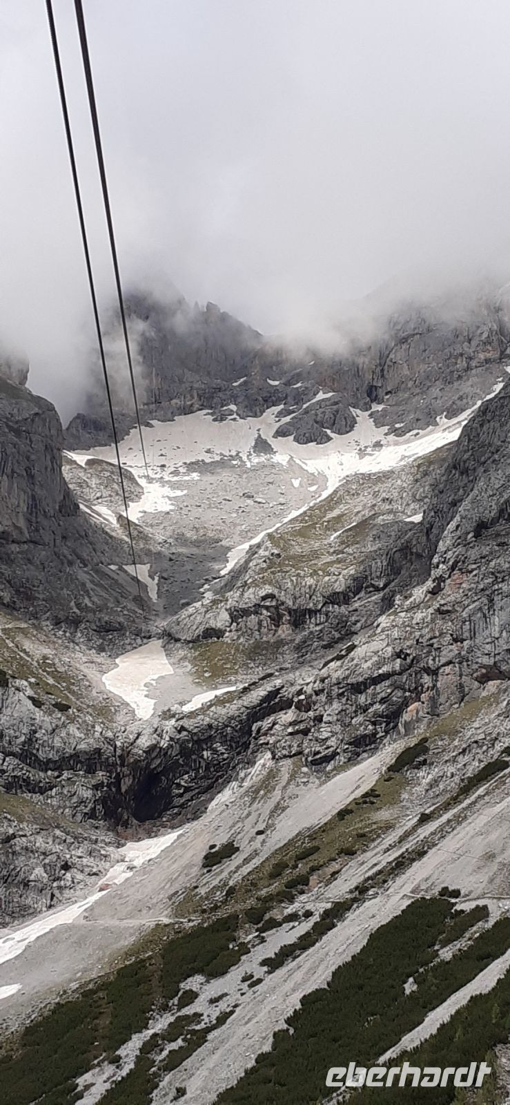Der Steirische Bodensee ist ein kleiner Bergsee in 1157 m Höhe. Über eine Mautstraße erreichten wir den Parkplatz und wanderten entlang des Baches zum Gasthof Forellenhof und weiter um den See bzw. noch weiter zum Wasserfall. Der Himmel über dem Dachstein war noch bedeckt und so unternahmen wir einen Abstecher zum Mandelberggut. Während einer Führung erfuhren wir interessantes und wissenswertes über die Latschenkiefernöl Herstellung und die verschiedenen Produkte. Nebenan besuchten wir Schnapsbrennerei. Nun wartete der Dachstein auf uns. Wir fuhren über Ramsau auf der Mautstraße zur Talstation. Zum Glück waren nur wenige Gäste da und so konnten wir sofort mit der Gondel nach oben fahren. Einige mutige erlebten die Auffahrt auf dem Dach der Gondel. Da der Dachstein noch in den Wolken lag, Nutzten wir die Gelegenheit für den Besuch der Hängebrücke und der „Treppe ins Nichts" und der Eishöhle. Langsam lichteten sich die Wolken und wir konnten unseren Blick auf den Gletscher, die umliegende Bergwelt und in das Tal schweifen lassen. Es hatte sich gelohnt zu warten.