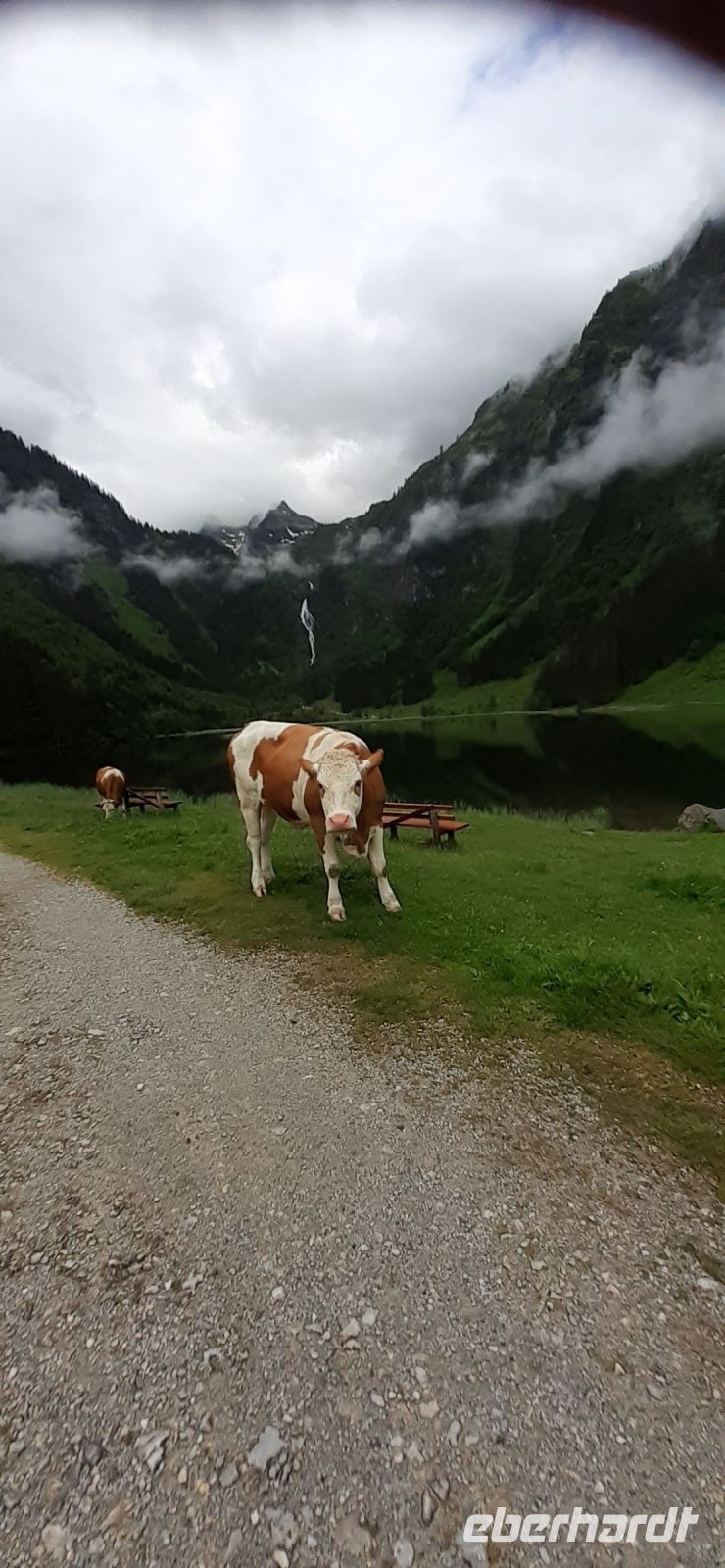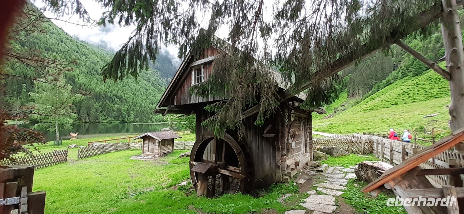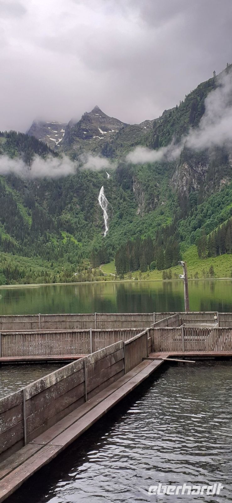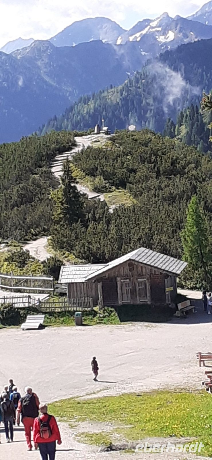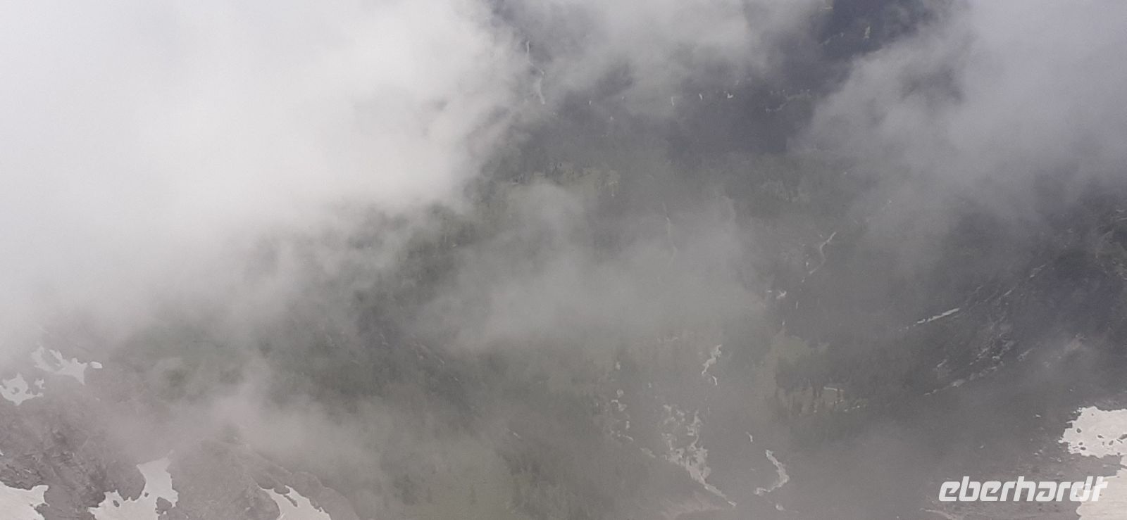 Der Steirische Bodensee ist ein kleiner Bergsee in 1157 m Höhe. Über eine Mautstraße erreichten wir den Parkplatz und wanderten entlang des Baches zum Gasthof Forellenhof und weiter um den See bzw. noch weiter zum Wasserfall. Der Himmel über dem Dachstein war noch bedeckt und so unternahmen wir einen Abstecher zum Mandelberggut. Während einer Führung erfuhren wir interessantes und wissenswertes über die Latschenkiefernöl Herstellung und die verschiedenen Produkte. Nebenan besuchten wir Schnapsbrennerei. Nun wartete der Dachstein auf uns. Wir fuhren über Ramsau auf der Mautstraße zur Talstation. Zum Glück waren nur wenige Gäste da und so konnten wir sofort mit der Gondel nach oben fahren. Einige mutige erlebten die Auffahrt auf dem Dach der Gondel. Da der Dachstein noch in den Wolken lag, Nutzten wir die Gelegenheit für den Besuch der Hängebrücke und der „Treppe ins Nichts" und der Eishöhle. Langsam lichteten sich die Wolken und wir konnten unseren Blick auf den Gletscher, die umliegende Bergwelt und in das Tal schweifen lassen. Es hatte sich gelohnt zu warten.