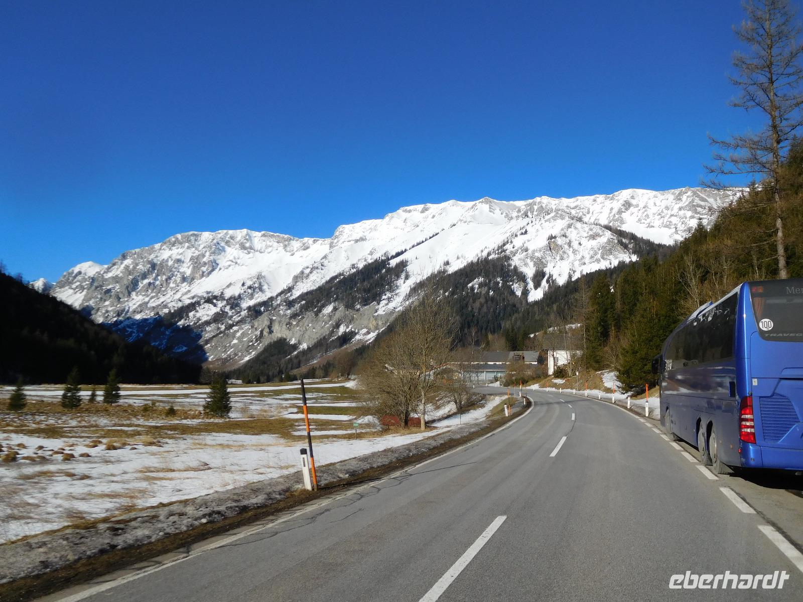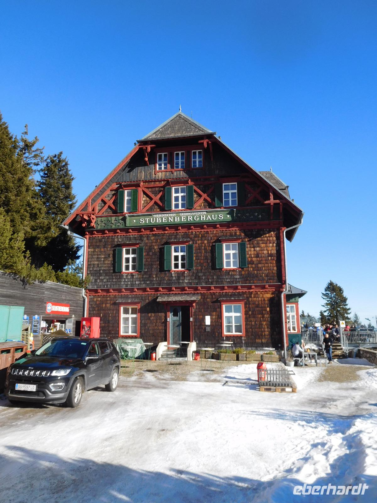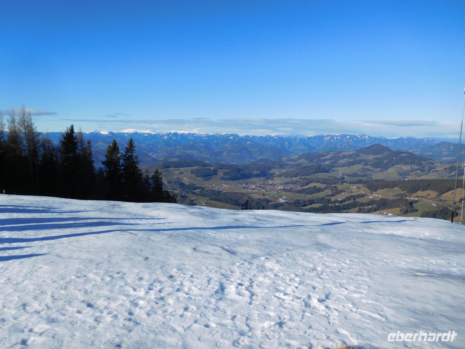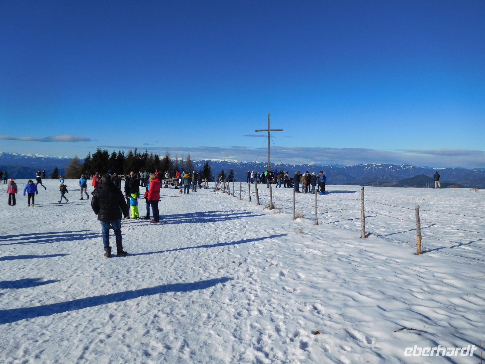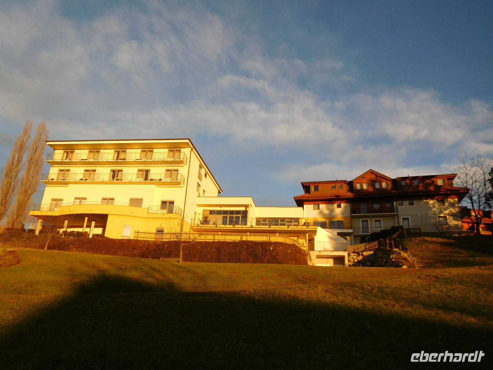 Am Sylvestertag fuhren wir bei schönstem Sonnenschein zum Grazer Hausberg Schöckl, der nordöstlich der Landeshauptstadt liegt. Nach einer guten halben Stunde Busfahrt erreichten wir den hübschen Ort Sankt Radegund, in dem sich die Talstation der Schöcklbahn befindet. Der 1445 Meter hohe Berg wurde seit Beginn des 20. Jahrhunderts touristisch erschlossen. Zunächst baute man eine Straße bis auf das Hochplateau, dann das immer noch bewirtschaftete Stubenberghaus und 1951 die erste Seilbahn, später noch einen Sessellift. Die Seilbahn wurde mittlerweile durch eine moderne Kabinenbahn ersetzt, mit der wir in etwa sieben Minuten die Strecke von rund zwei Kilometern überwanden. Auch oben erwartete uns Traumwetter und so suchte sich jeder den ihm gemäßen Höhenrundweg zum Spazieren aus oder kehrte in eines der drei Gasthäuser ein. Am beliebtesten waren natürlich die Sonnenplätze auf den windgeschützten Terrassen. Nach zweieinhalb Stunden Sonnenbad trafen wir uns wieder am Bus und fuhren gemütlich zurück zum Hotel. In Laßnitzhöhe war ebenfalls noch schönster Sonnenschein und so spazierten manche noch durch den Ort oder setzten sich auf eine der zahlreichen Sonnenbänke. Andere beendeten das alte Jahr mit einem zünftigen Saunabesuch.