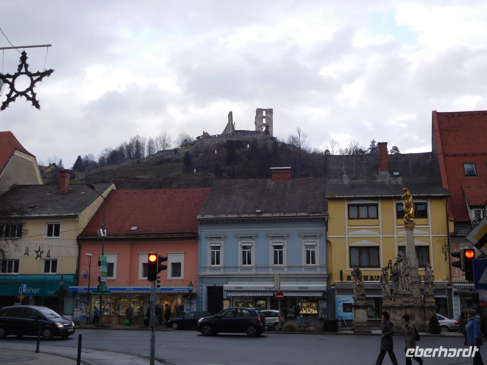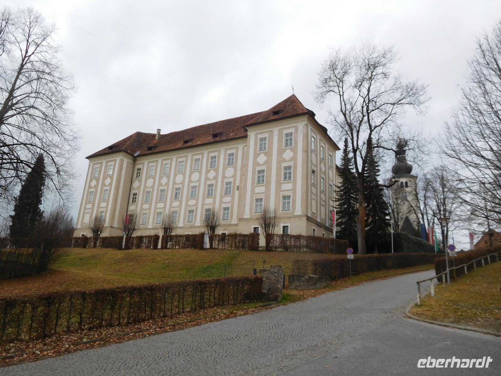 Die nahe gelegene Pfarre Piber war schon um 1100 wichtig und auch die heutige Andreaskirche ist noch zu großen Teilen romanisch. Von römischer Besatzungszeit künden Reliefs im Eingangsbereich. Die alte Wehrburg Piber wurde durch ein prächtiges Renaissanceschloss ersetzt, in dem meist die Vögte der Bischöfe. Weil noch genügend Zeit war, legten wir noch im nahe gelegenen Städtchen Voitsberg eine Mittagspause ein. Die Altstadt ist noch gut erhalten und der Hauptplatz weist viele kleine Häuser mit Laubenvorbauten auf. Die ursprünglich romanische Kirche besitzt eine Reihe historisch wertvoller Grabsteine und das Rathaus wurde 2002 vom Künstler Arik Brauer mit 120 Quadratmetern Fliesen verziert, deren Bildschmuck auf bekannten Sprichwörtern basiert. Hier lässt sich trefflich bummeln und zahlreiche Kaffeehäuser und Gastwirtschaften laden zum Verweilen. Den Rest des Nachmittags verbrachten wir in Lassnitzhöhe.