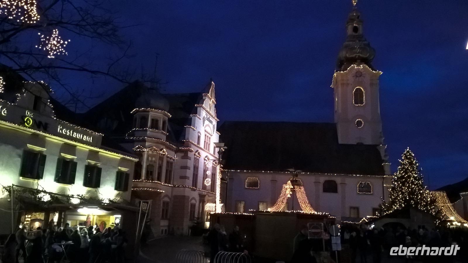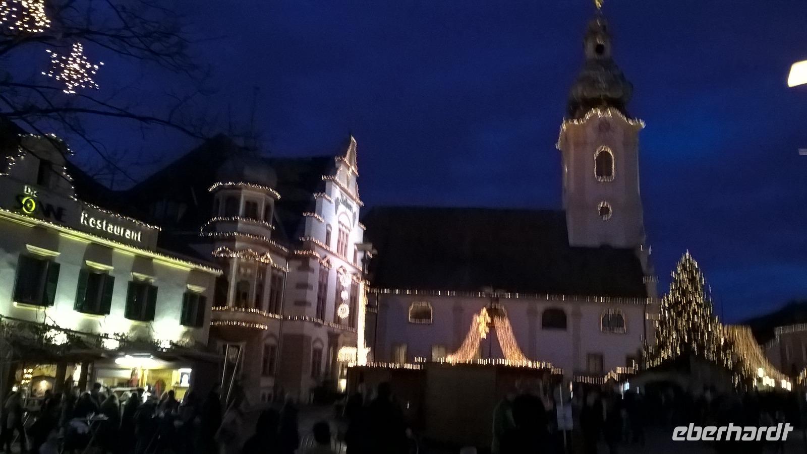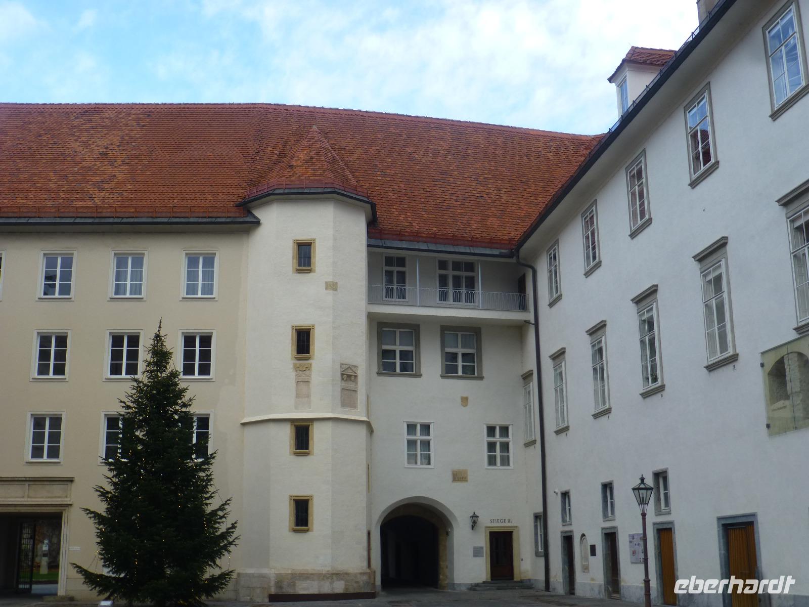 Graz die Hauptstadt der Steiermark ist zu jeder Jahreszeit einen Besuch wert. Unser Gästeführer David brachte uns seine Stadt mit Engagement und Leidenschaft näher. Wir merkten gar nicht wie die Zeit verging. Strahlend blauer Himmel und Sonnenschein taten sein Übriges. Sehr interessant war die doppelführende Wendeltreppe in der ehemaligen Burg. Sie ist einzigartig auf der Welt. Nach dem Besuch im Dom kamen wir gerade rechtzeitig zum Glockenspiel. Es erklangen weihnachtliche Weisen. Anschließend besuchten wir die Eiskrippe im Amtshof. Jedes Jahr entsteht ein neues Motiv. Wir erreichten den Rathausplatz und erhaschten den ersten Blick auf das Wahrzeichen von Graz, den Uhrturm. Noch ein Abstecher zur Mur und wir entschieden uns bei dem schönen Wetter auf den Schlossturm zu fahren. Der Lift brachte uns bequem nach oben. Die Auffahrt hatte sich gelohnt ein wunderschöner Blick auf Graz und die Umgebung erwartete uns. Nach einem kleinen Spaziergang auf dem Schlossberg besuchten wir noch den Weihnachtsmarkt. Zurück im Hotel nahmen wir in der Weiz Kirche an der Kinderchristmette teil. Eine schöne Einstimmung auf den Heiligen Abend. Nach dem Weihnachtsmenü schaute sogar der Weihnachtsmann vorbei. In geselliger Runde ließen wir denn Tag ausklingen. Im Innenhof trafen wir uns zu einem Punsch und lauschten den Turmbläsern.