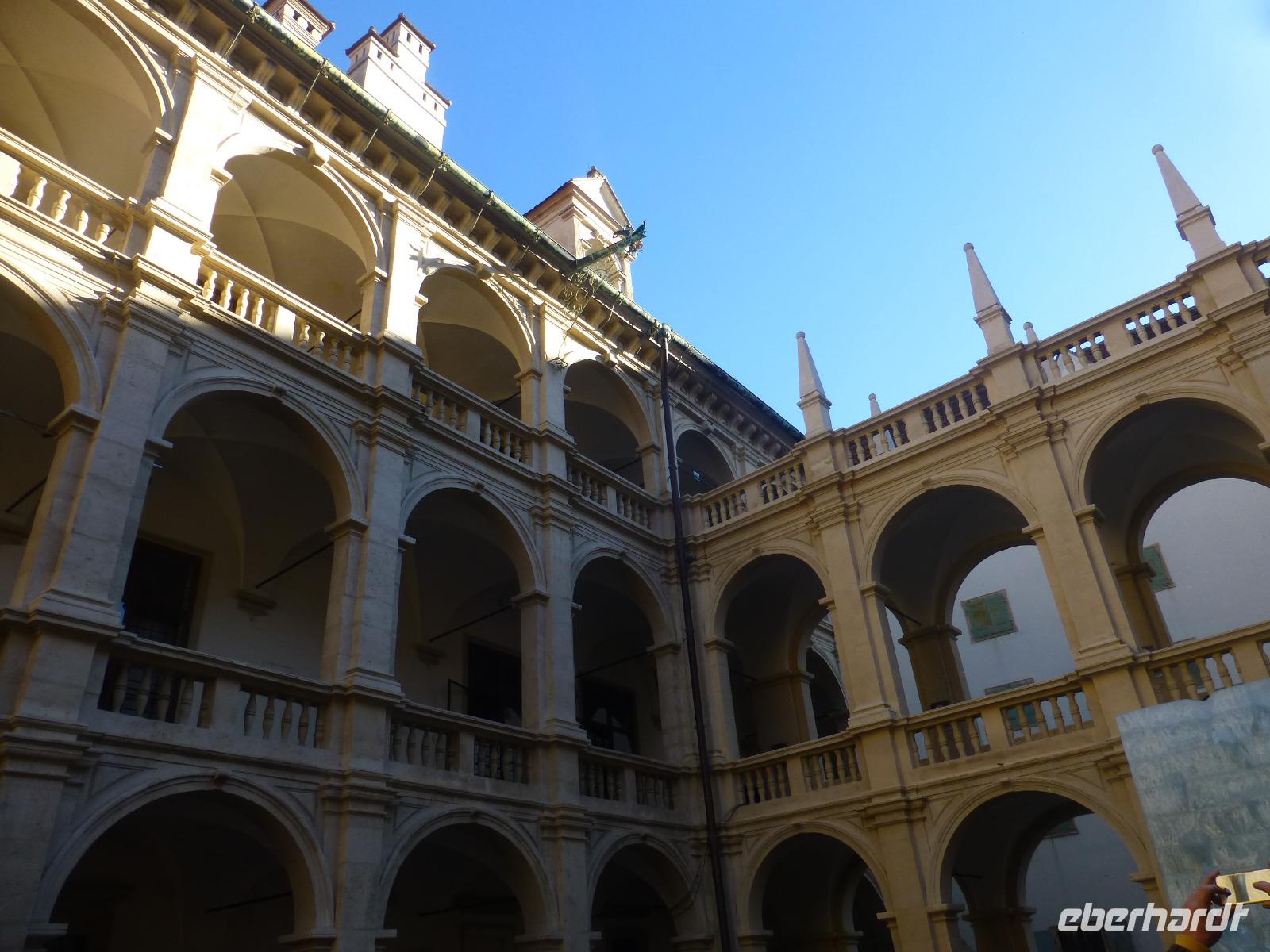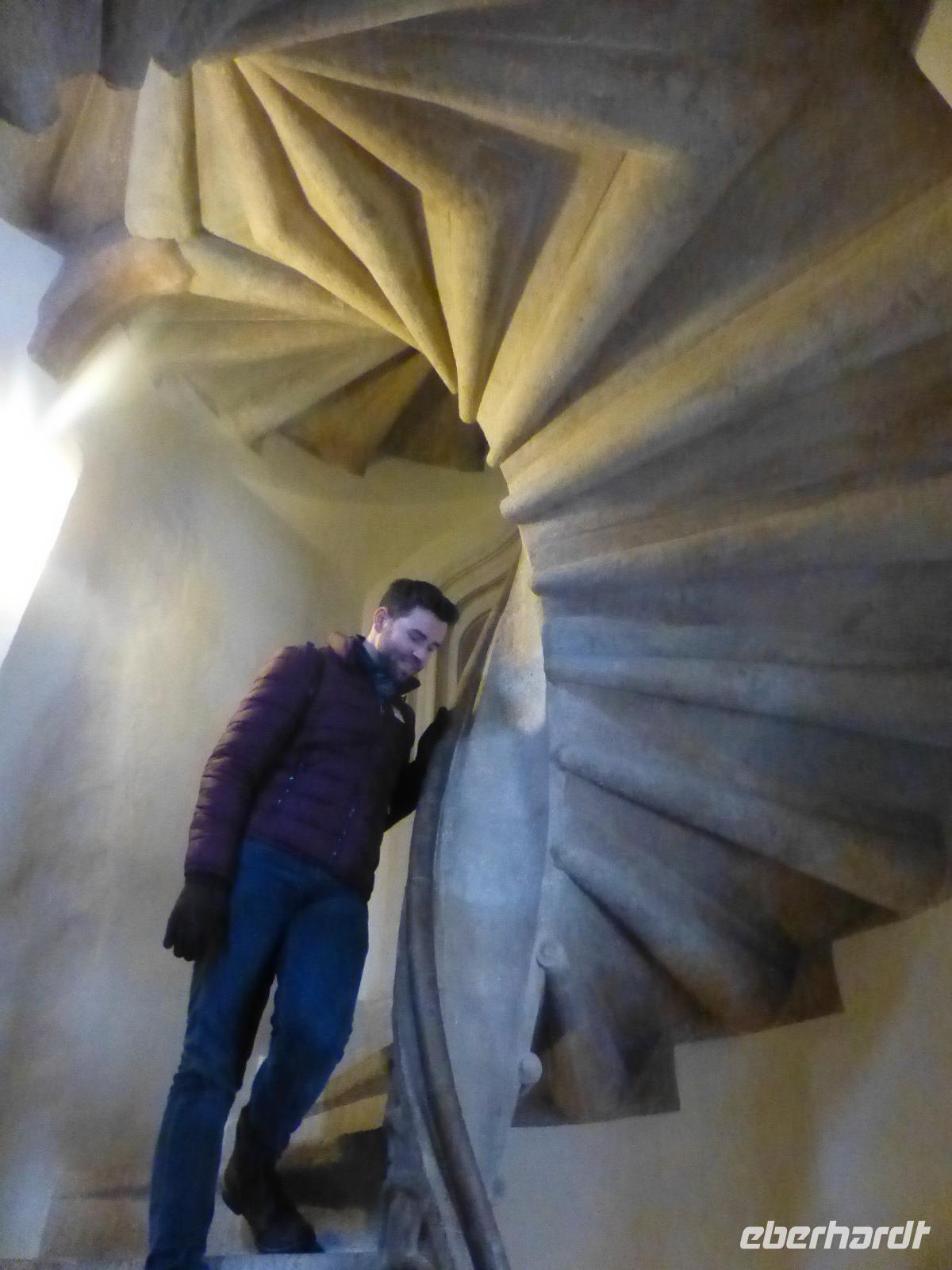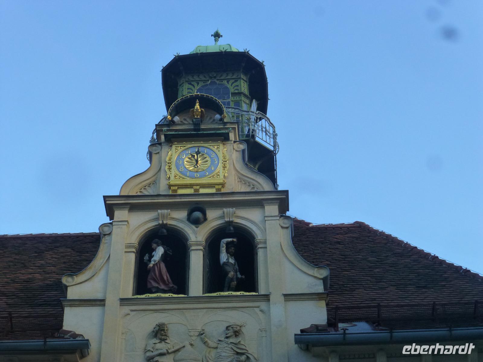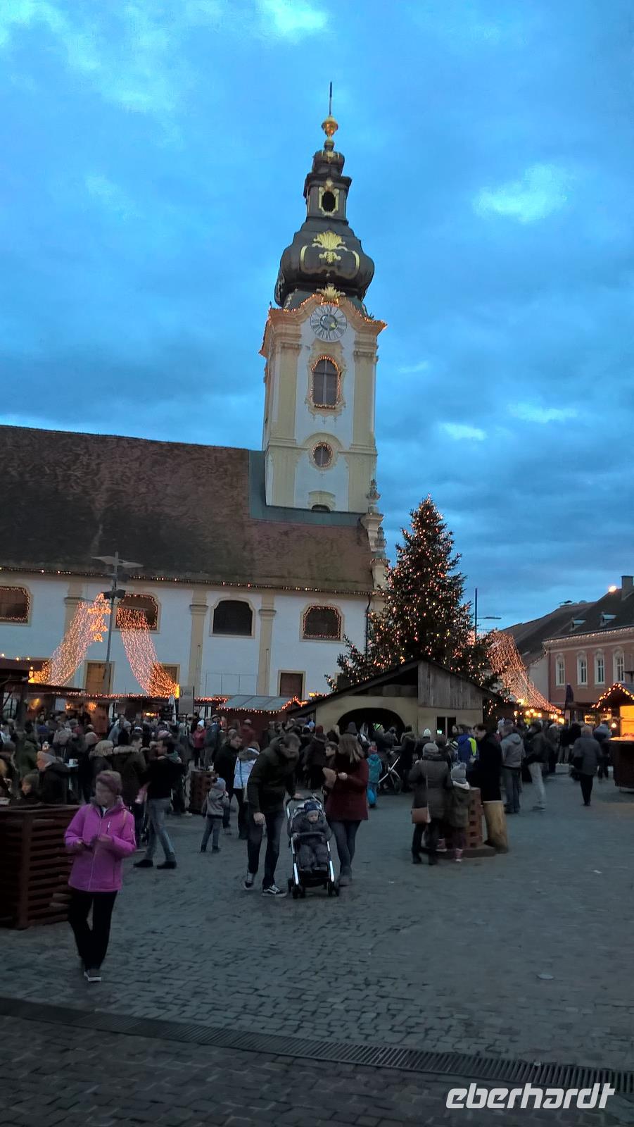 Graz die Hauptstadt der Steiermark ist zu jeder Jahreszeit einen Besuch wert. Unser Gästeführer David brachte uns seine Stadt mit Engagement und Leidenschaft näher. Wir merkten gar nicht wie die Zeit verging. Strahlend blauer Himmel und Sonnenschein taten sein Übriges. Sehr interessant war die doppelführende Wendeltreppe in der ehemaligen Burg. Sie ist einzigartig auf der Welt. Nach dem Besuch im Dom kamen wir gerade rechtzeitig zum Glockenspiel. Es erklangen weihnachtliche Weisen. Anschließend besuchten wir die Eiskrippe im Amtshof. Jedes Jahr entsteht ein neues Motiv. Wir erreichten den Rathausplatz und erhaschten den ersten Blick auf das Wahrzeichen von Graz, den Uhrturm. Noch ein Abstecher zur Mur und wir entschieden uns bei dem schönen Wetter auf den Schlossturm zu fahren. Der Lift brachte uns bequem nach oben. Die Auffahrt hatte sich gelohnt ein wunderschöner Blick auf Graz und die Umgebung erwartete uns. Nach einem kleinen Spaziergang auf dem Schlossberg besuchten wir noch den Weihnachtsmarkt. Zurück im Hotel nahmen wir in der Weiz Kirche an der Kinderchristmette teil. Eine schöne Einstimmung auf den Heiligen Abend. Nach dem Weihnachtsmenü schaute sogar der Weihnachtsmann vorbei. In geselliger Runde ließen wir denn Tag ausklingen. Im Innenhof trafen wir uns zu einem Punsch und lauschten den Turmbläsern.