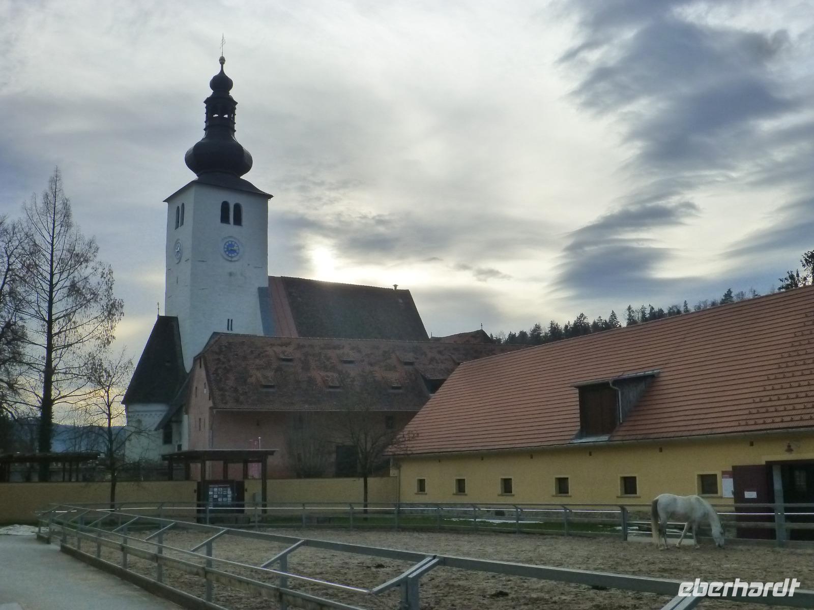 Am Stefanitag finden jedes Jahr in den verschiedenen Regionen Österreichs die Pferdeweihung statt. Wir besuchten diese in Fladnitz an der Teichalm. In der Kirche fand ein Gottesdienst statt. In dieser Zeit formierten sich die Reiter und Gespanne auf der Parkwiese. Besonders putzig waren die Ponys. Der Bürgermeister eröffnete die Veranstaltung und begrüßte auch unsere Reisegruppe. Anschließend sprach der Pfarrer einige Worte und weihte die Pferde. Damit wird für ihren Schutz und die Gesundheit gebeten. Gleichzeitig bekamen die Pferde Brot und Salz gereicht. Zum Aufwärmen gab es für die Zweibeiner Glühwein und Punsch. Nach diesem Erlebnis fuhren wir hinauf zur Teichalm und hofften in 1300m Meter auf unseren ersten Schnee. Wir wurden nicht enttäuscht und nutzten die Gelegenheit für einen Spaziergang entlang des gleichnamigen Sees. In der gemütlichen Latschenhütte kehrten wir ein und genossen die einheimischen Köstlichkeiten. Über das größte zusammenhängende Almengebiet Europas fuhren wir nach Köflach in das Lipizzanergestüt Piber. Schon seit 1798 wird dort die älteste Kulturpferderasse Europas gezüchtet. Eingebettet in eine Hügellandschaft befindet sich das Gestüt wo die Weißen Pferde für die Spanische Hofreitschule gezüchtet werden. Währen der Führung erfuhren wir das die Fohlen Schwarz, Braun oder Grau zur Welt kommen und erst viel später ihre Weiße Farbe erhalten. In verschieden Aufzuchtstationen und umliegenden Almen werden die Fohlen untergebracht. Nur die besten Hengste werden nach Wien gebracht und dort für die Hofreitschule ausgebildet. Nach der interessanten Führung legten wir noch einen Fotostopp an der Hundertwasserkirche in Bärnbach ein. Leider ging heute unsere Weihnachtsreise zu Ende.