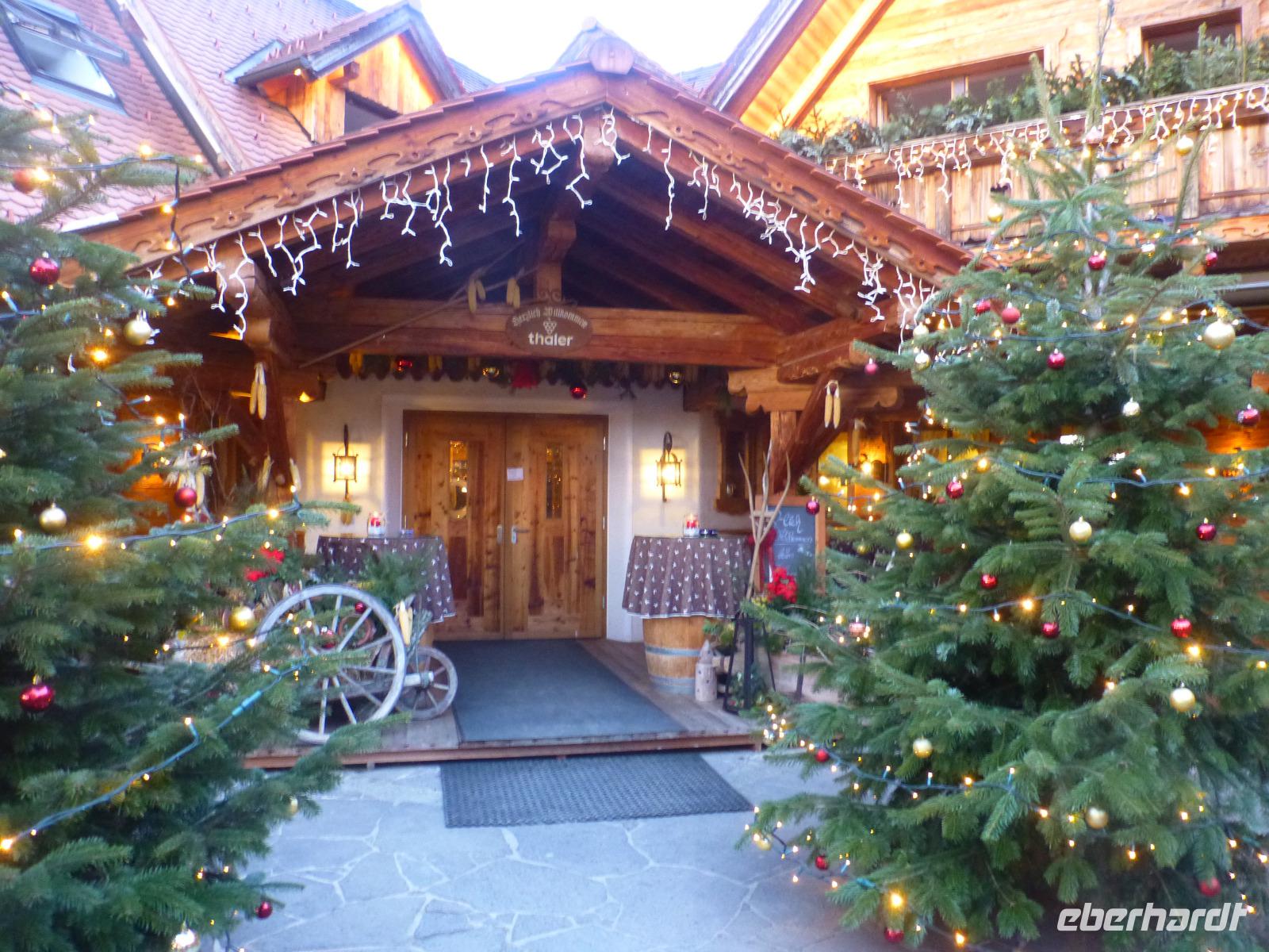 Schon zeitig startete unsere Weihnachtsreise in die Steiermark. Wir fuhren über Prag und entschieden uns über Budweis zu fahren. Wir erreichten die Phyrn Autobahn und hatten einen schönen Blick auf die schneebedeckte Berge der Kalkalpen. Vor dem Gleinalmtunnel verließen wir wieder die Autobahn und fuhren weiter auf der Landstraße nach Weiz in das Hotel „Der Ederer". Wir wurden herzlich begrüßt und mit einem ersten leckeren Abendessen verwöhnt.