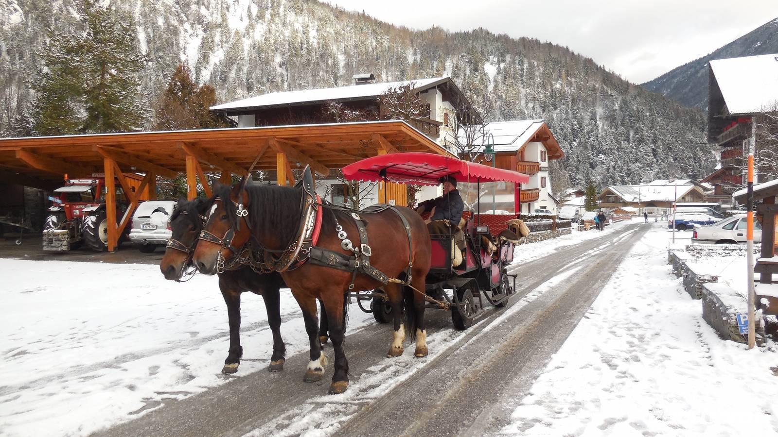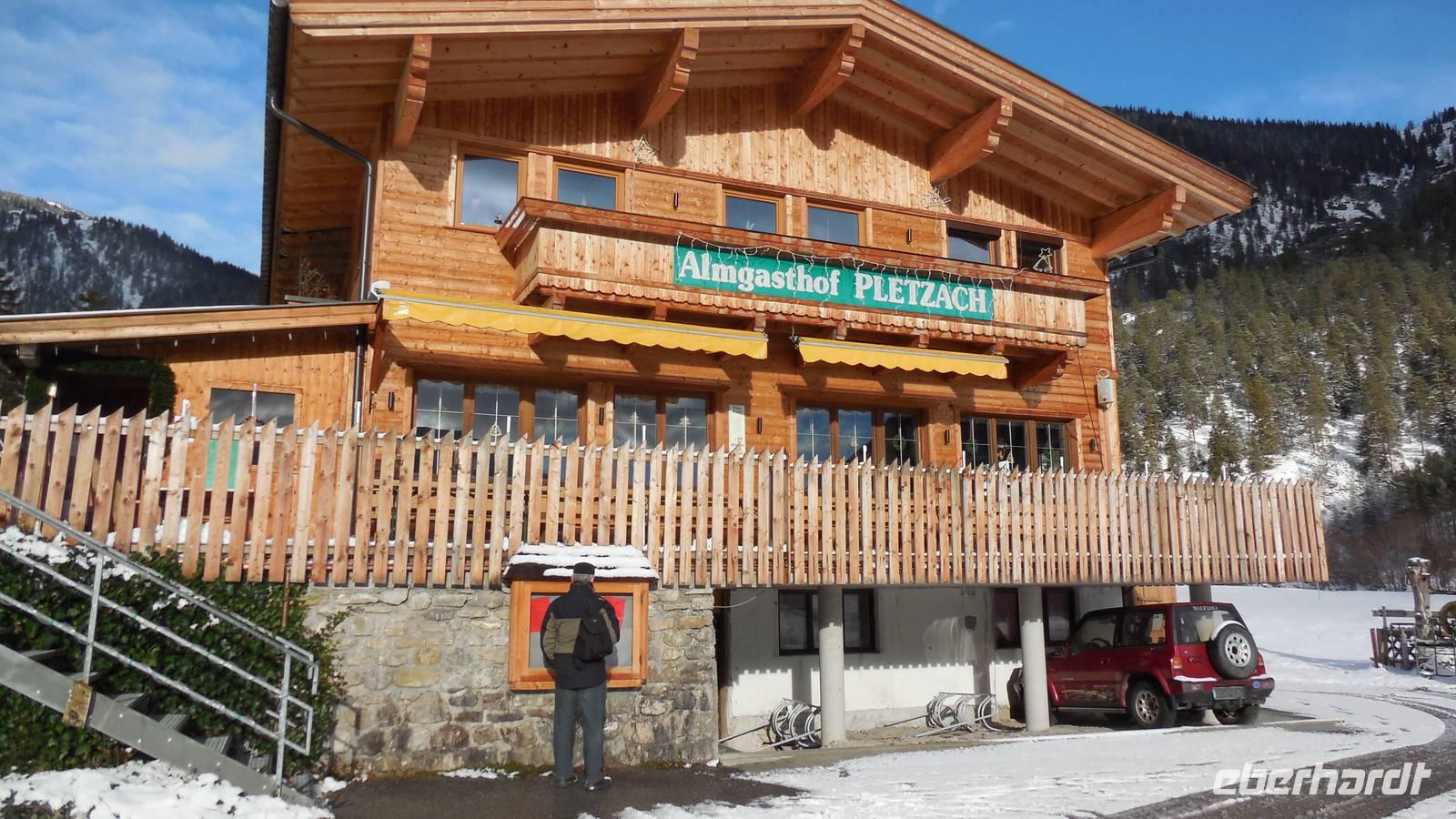 Bei Kaiserwetter erfolgte am zweiten Tag eine Pferdekutschfahrt, (der in der Nacht gefallene Schnee reichte noch nicht für den Schlitten) zur Pletzachalm in 1.040 m Höhe. Ein kleiner Spaziergang und ein Jagatee in der bewirtschafteten Alm rundeten diesen Ausflug ab.