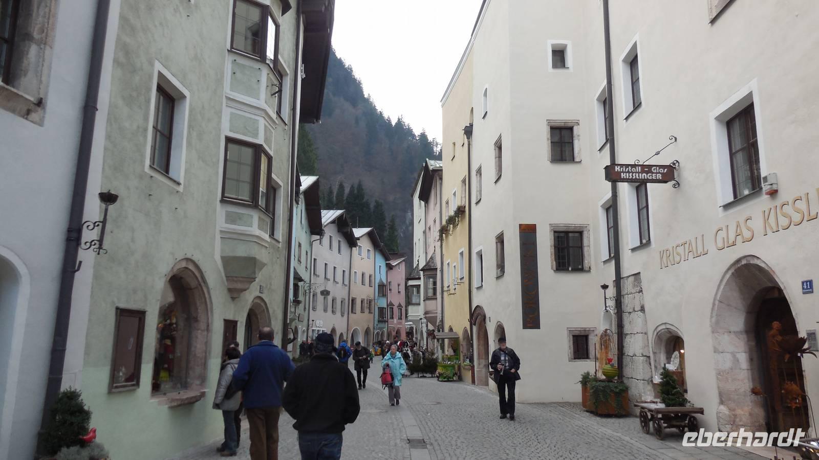 Rattenberg, eine kleine Stadt am Inn, statteten wir am nächsten Tag einen Besuch ab. Zuerst konnten wir in der „Kristallwelt Kiessling" einem Glasbläser und zwei Glasschleiferinnen bei der Arbeit zuschauen, bevor wir uns von den Ergebnissen der Arbeit in mehreren Schauräumen überzeugen konnten. Auf eine „Mittelalterische Zeitreise" vorgetragen mit Humor und in entsprechender Kleidung brachte uns die Stadtführerin die Geschichte Rattenbergs näher.