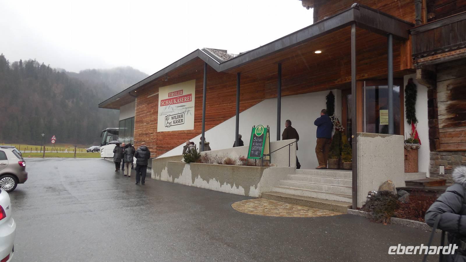 Der erste Weihnachtsfeiertag begann mit leichten Regen, der dann in der folgenden Nacht in heftigen Schneefall überging. Unser Weg führte uns zuerst in das Kaisergebirge nach Kirchdorf i.T.. In der Käserei „Wilder Käser" wurden wir bereits erwartet. Hier erfuhren wir viel Wissenswertes über die Geschichte der Käserei, die Herstellung von Käse und dessen Qualität. Bei einer Verkostung konnten sich die Mitglieder der Gruppe davon überzeugen. Vom möglichen Einkauf wurde dann rege Gebrauch gemacht.