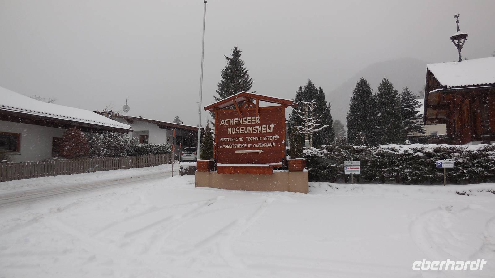 Am letzten Tag unseres Aufenthaltes führte uns ein fakultativer Ausflug in das Rofangebirge. Von der Talstation in Maurach ging es mit der Kabinenseilbahn zur Bergstation in 1.840 m Höhe. Obwohl man kurzzeitig von oben den Achensee sehen konnte, war die Sicht insgesamt nicht so toll. Auch der Spaziergang konnte nach dem vielen Schnee, der in der Nacht gefallen war, nicht durchgeführt werden. Trotzdem nutzte jeder Gast die Zeit auf seine Weise. Neben der „Erfurter Hütte" gab es noch zwei weitere Möglichkeiten zur Einkehr. Nach einen kleinen Aufenthalt im Gelände sowie Foto -und Filmaufnahmen traf man sich in einer der drei Hütten, um dort Tiroler Spezialitäten und wärmende Getränke zu sich zu nehmen.Nachdem wir wieder im Tal waren bestiegen wir den Bus und fuhren zum „Achenseemuseum".
