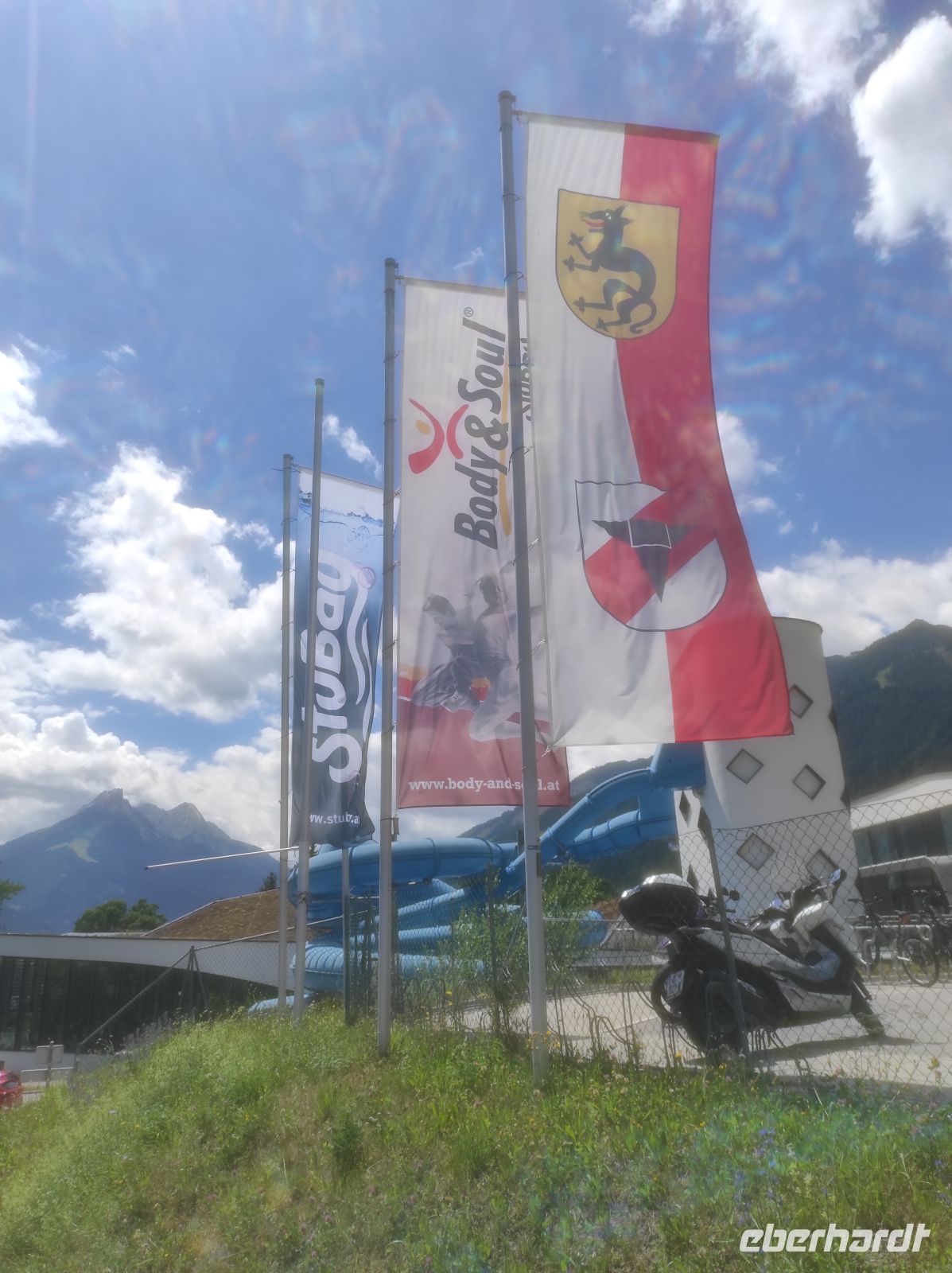 Eine letzte Abkühlung an diesem heißen Tag versprach erneut das Bad das Schwimmbad "Stubai", mit Soletherme und einer tollen Aussicht, zog es einige Wasserfreunde in der Gruppe an !