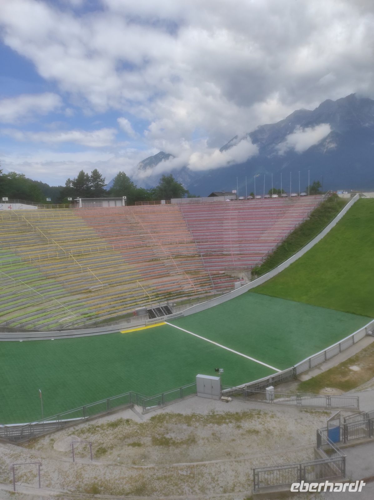 Sie wurde 1927 erbaut und 2002 erweitert. Sie hat 98 m Anlauf und ist 134 m hoch, sowie 316 m lang. Heute beobachteten wir den Innsbrucker Skinachwuchs beim Trockensprung auf Kunstrasen.