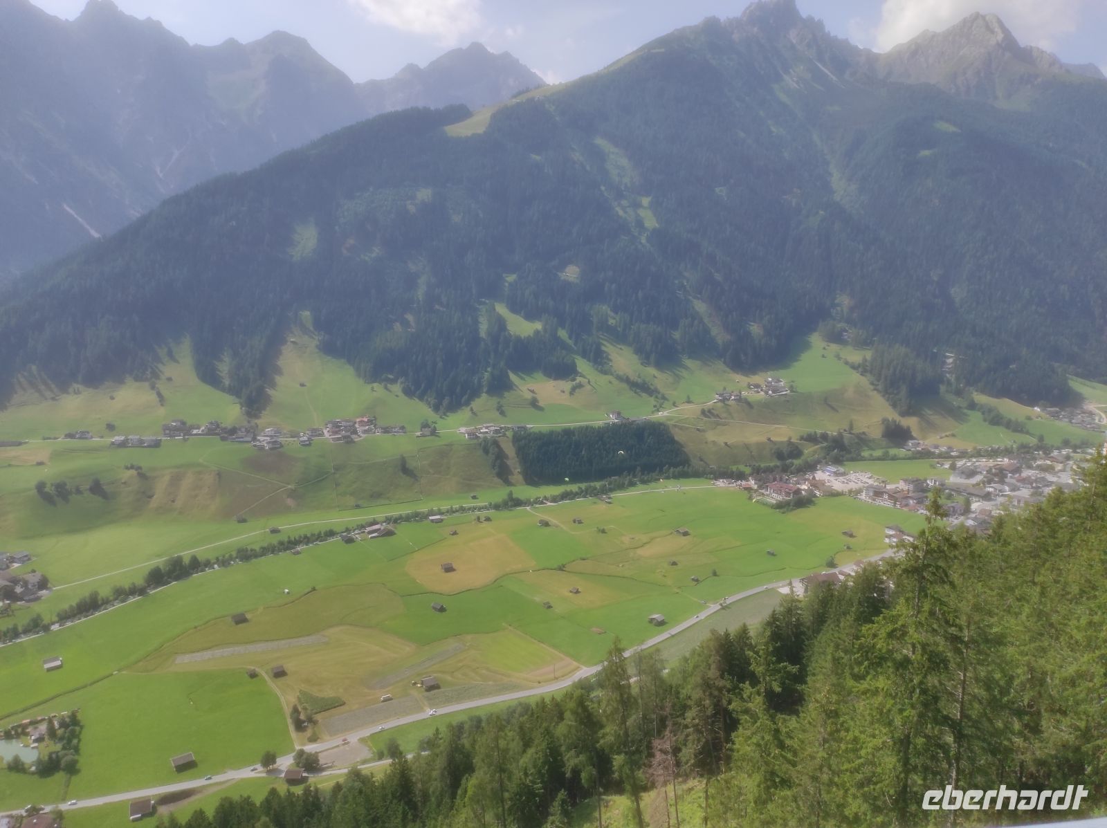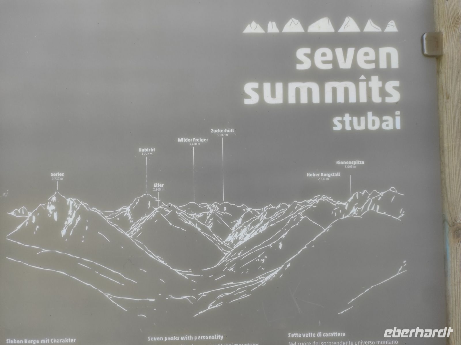 Vom Hotel aus begann die Tour mit einem kurzen Spatziergang zur Bergbahn Schlick 2000, wo wir per Gondel bequem zur 1.350 m hohen Mittelsatation Froneben schwebten. Nun ging es weiter über den Scheibenweg einem Erlebnisweg mit Exponaten, über den Panoramasee, einem Schmelzwasserteich auf zur 1.680 m hochen Galtalm. Hierr oben verzückte eine klare Sicht auf die Bergwelt des Stubaitals wie Serles, Pinnistal, Elfer und Habicht ...den Seven Summits (englisch Gipfel). Nach einer Pause ging es 400 Höhenmeter auf steilen Pfaden bergab zum Naturschauplatz Gschmitz. Von hier hatten wir eine eizigartige Aussicht auf das Pinnistal. Nach einem weiteren Spatziergang kamen wir zur Pause am Berggasthof Vergör, wo wir uns bei einer Vesper nch einmal stärkten , bevor es über einen Waldwanderweg wieder hinab ins Tal ging.