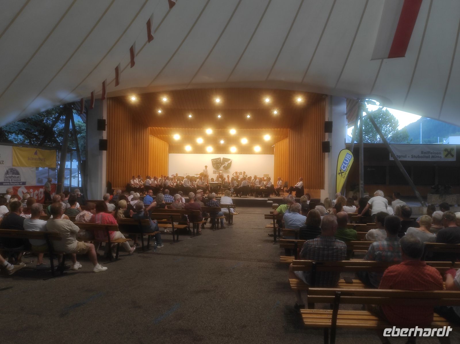 Bei großer Hitze zogen sich einge Teilnehmer in den Schattenplätze der Außenterasse vom Hotel und nach dem Abendessen spielte der Musikzug Fulpmes im naheliegenden Kulturzelt lokale und internationale Hits. Während im Hotel ein Musiker englischsprachige Stücke nach Wunsch spielte !