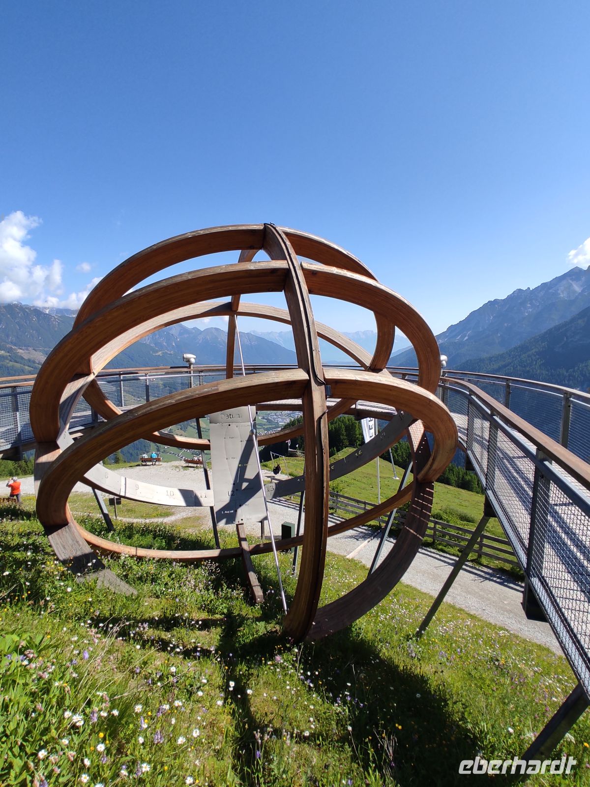 Nach dem Frühstück ging er per Bus nach Neustift, wo der Elferlift uns auf die 1791 m hohe Zwischensation brachte. Hier bestaunten wir die Paraglider, die den Aufwind nutzten um in Tal zu gleiten, sowie die größte begehbare Äquatorialsonnenuhr des Alpenraumes mit einem beeindruckenden Ausblick ins Stubaital. Dann führte uns ein gut ausgebauter Wanderweg, der oft in Sichtweie des 2505 m hohen Elfers verlief, zur Autenalm, einer ca. 350 Jahre alten Almwirtschaft.