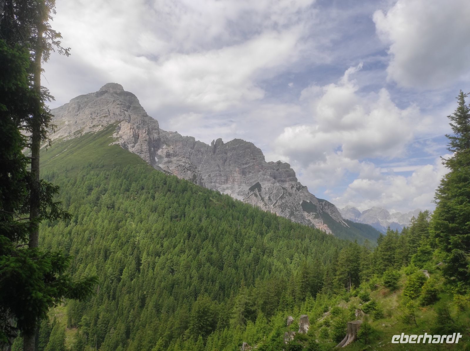 Durch einen Nadelwald, wo wie Kühe mit Halsglocken der Bauern trafen, wanderten wir über eine flachen Weg zur Bsuchalm auf 1580 m Höhe. Hier wurde erts einmal Mittagsvesper gemacht sowie ein Willkommensgetränk von Eberhardt kredenzt !