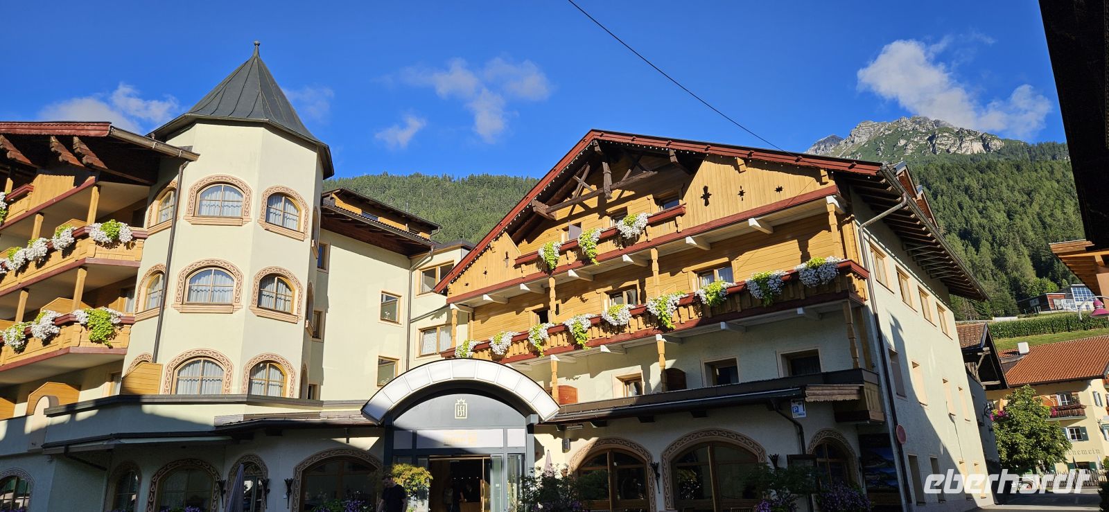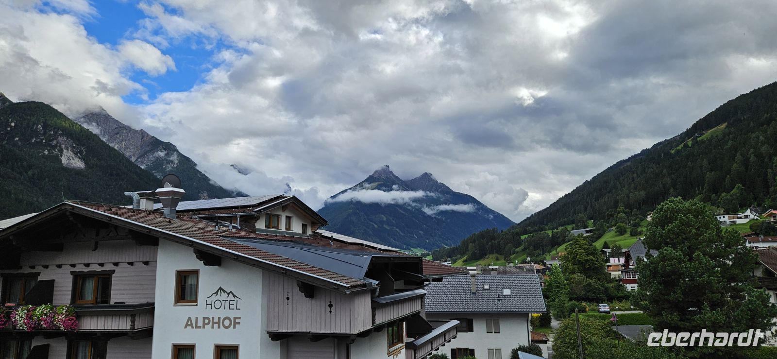 Sehr früh am Morgen startete unser Bus von Dresden mit weiteren Zustiegen Richtung Alpen. Um 13.30 Uhr stiegen wir in Schönberg vom Bus in Kleinbusse um und wurden direkt nach Fulpmes im Stubaital gebracht. Zwei Singles waren mit ihren Pkws angereist und wurden von uns herzlich begrüßt. Im Hotel Stubaier Hof bezogen wir unsere Zimmer und genossen gleich schon mal die Nachmittags Jause mit Kuchen und herzhaften Speisen. Danach wurden die Koffer ausgepackt und 17.30 Uhr lernten wir unseren Bergführer Kevin kennen. Jeder bekam eine Wanderkarte vom Stubaital und Kevin stimmte uns auf den ersten Wandertag ein. Wir stiessen mit einem Glas Prosecco auf unsere Wanderwoche an und danach stellte sich jeder kurz vor. Unsere Zimmer lagen in 3 verschiedenen Häusern der Hotels und alle waren im Keller über Gänge miteinander verbunden. DIESE Unterwelt erkundeten wir als nächstes, denn dort unten befanden sich auch die beiden Schwimmbäder, Saunen und der Wellnessbereich. 18.30 Uhr endlich gab es Abendessen von einem reichhaltigen Büffet und das genossen wir ausgiebig.