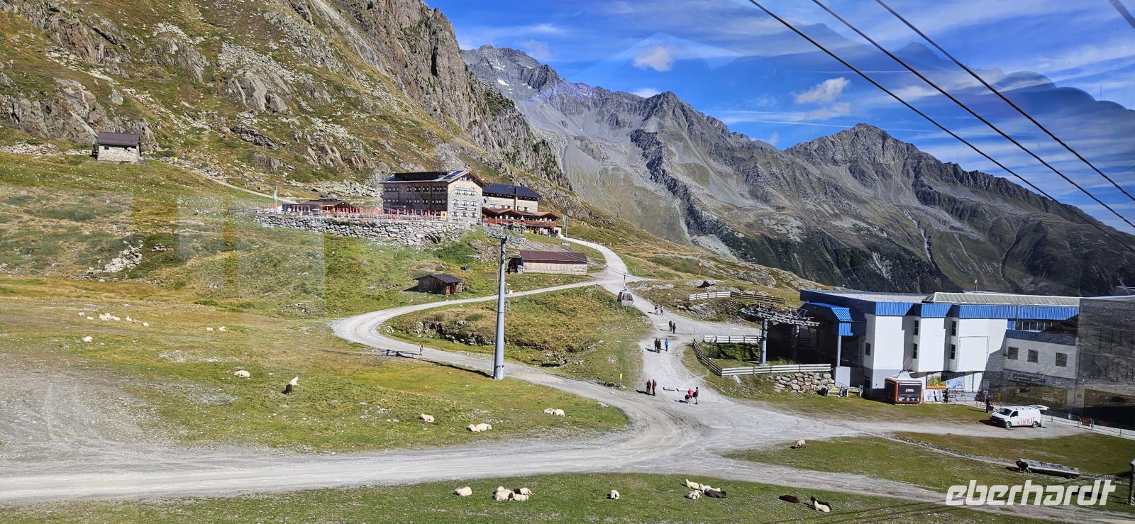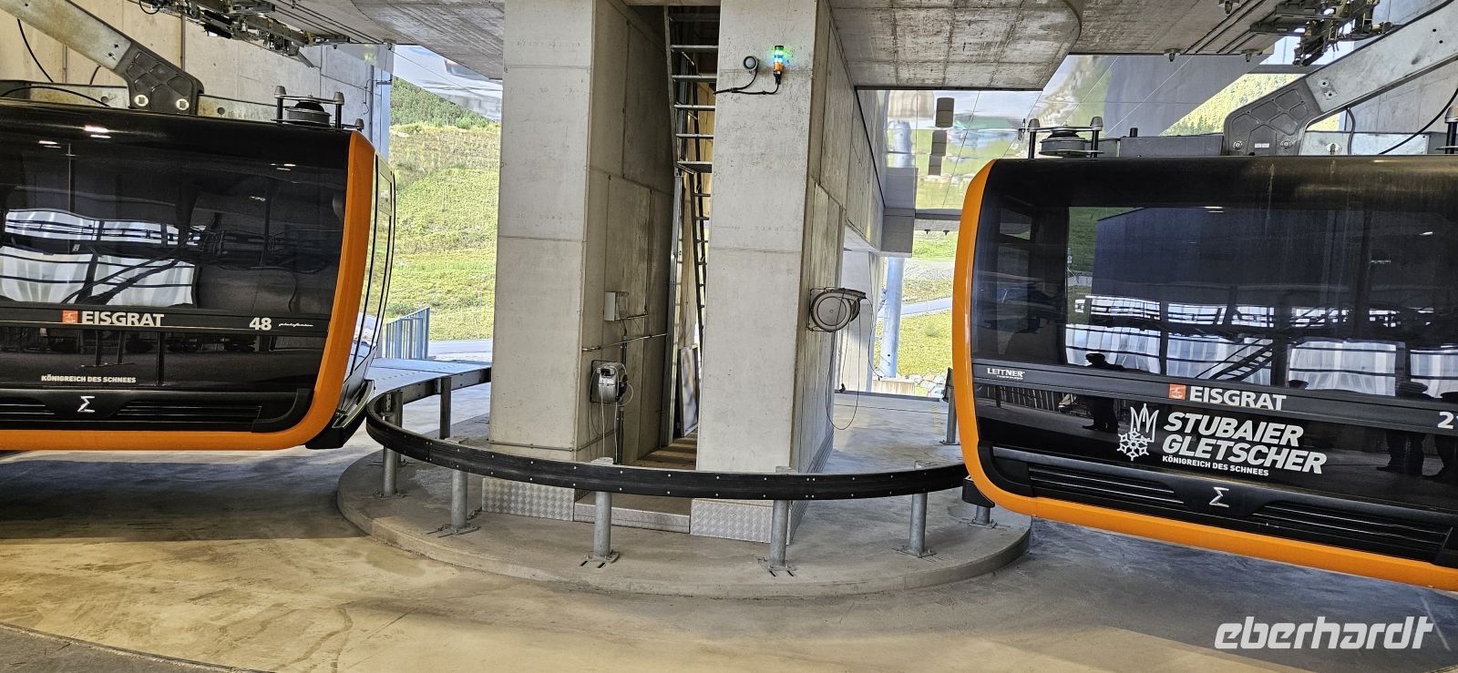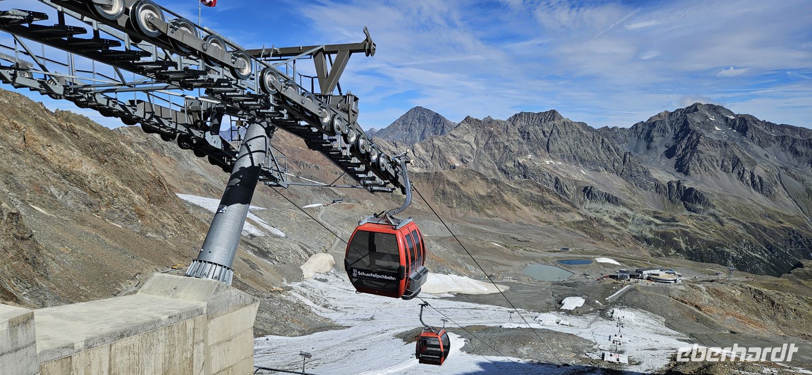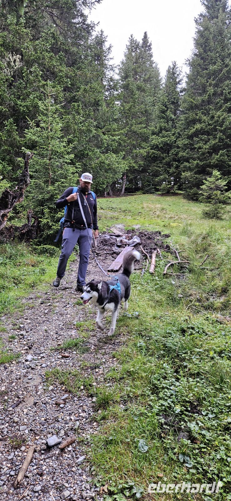 Heute nun war unser letzter Wandertag im Stubaital angebrochen und da gab es eine ganz besondere Überraschung. Mit einem frühen Bus fuhren wir bis zum Talende an der Mutterbergalm. Mit der Stubaier Gletscher Bahn ging es dann vorbei an der Dresdner Hütte bis zur Bergstation Eisgrat auf 2900 m Höhe. Dort konnte man sich gut unterhalten und z.B. das riesjge Mammut bestaunen. Wir fuhren aber mit der nächsten Gondelbahn hinauf zur Schaufelspitze und über eine Eisenleiter stiegen wir hinauf zum Top of Tirol in 3210 m Höhe. Die Luft war dünn dort oben und so gingen wir ganz langsam. Oben auf dem Plateau war die Sicht grandios, hinüber zu den Ötztaler Alpen und nach Südtirol bis hin zur Marmolada, dem Schlern und dem Rosengarten. Jeder liess sich am Schild Top of Tirol 3210 m fotografieren und wir waren einfach nur überwältigt vom Ausblick auf die Bergwelt. Auch die Talfahrt mit der Gondelbahn war nochmal ein Erlebnis und unten im Tal legten wir erst einmal die warme Kleidung ab. Nun begann unsere gemütliche Wanderung auf dem Wilde Wasser Weg immer an der Rüetz entlang. Wir kamen auch wieder am Grawa Wasserfall vorbei und diesmal war er in der Sonne und bot ein wunderschönes Fotomotiv. Ein Stück weiter talwärts am Bach legten wir eine Pause ein und stießen mit einem Zirbenlikör auf unsere schöne Wanderung an. Dann wanderten wir weiter talwärts und unsere Mittagspause war in der Tschangenairalm geplant. Dort herrschte aber mächtiger Andrang und man hatte die Reservierung für unsere Gruppe verschusselt. Nun war guter Rat teuer. Ganz spontan schlug Kevin vor, die Mittagspause in der Bsuchalm zu machen und das bedeutete nochmal eine Wanderung von 40 Minuten immer bergan. Diese Mühe lohnte sich aber, denn 14 Uhr waren kaum noch Gäste auf der Bsuchalm und wir hatten wunderschöne Tische im Freien mit einem traumhaften Rundblick am Talende des Langentals. Unsere bestellten Speisen wurden alle frisch zubereitet und es schmeckte alles sehr gut. Nach eineinhalb Stunden traten wir den Rückweg ins Tal an und erreichten auch gleich einen Bus unten im Tal. In der Ortsmitte Fulpmes stiegen wir aus und verabschiedeten uns sehr herzlich von Kevin, unserem Bergführer. Er hatte uns an 5 Tagen auf unseren Wanderungen geführt, die Touren wurden immer dem Wetter angepasst und wir haben von ihm viel über die Bergwelt Tirols erfahren. An 3 Wanderetappen hatte er seinen Husky Loki dabei und der Hund war ein echter Freund.