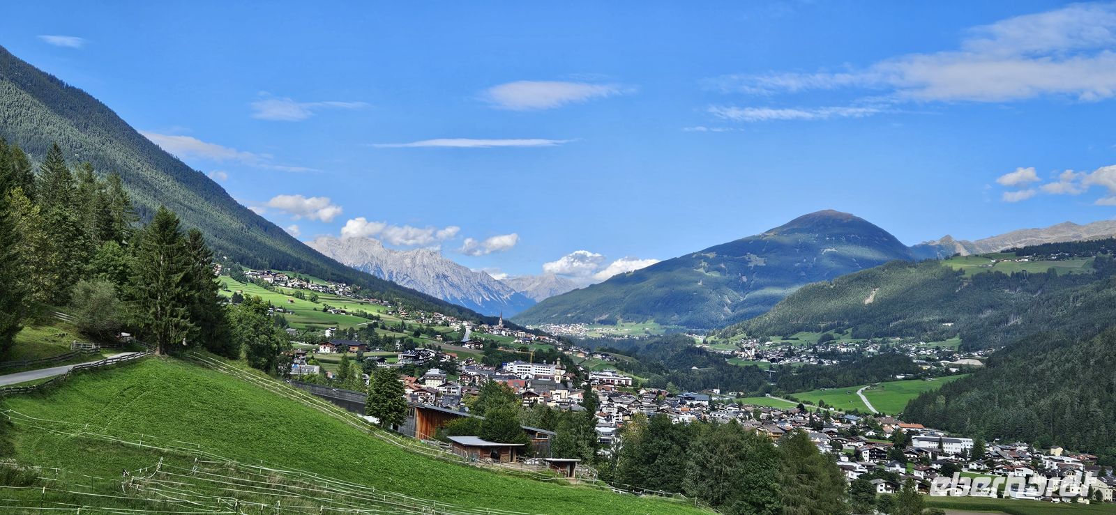Wir nahmen wieder den Bus um 9 Uhr und fuhren nach Neustift. An der Talstation der Elferbahn wurden wir schon von Kevin und Loki erwartet. Mit der Elfer Gondelbahn schwebten wir hinauf auf 1790 m Höhe und dort oben war schon mächtig was los. Viele Gleitschirmflieger richteten am Hang ihre Gleitschirme aus und einer nach dem anderen schwebte bei herrlichem Wetter ins Tal. Wir spazierten zunächst ein Stück bergan zur großen Sonnenuhr und von dort erklärte uns Kevin das prächtige Bergpanorama. Die gute Sicht reichte bis ins Inntal und zu den Karwendel Gipfeln. Danach gingen wir steil bergan, die Elferhütte hoch oben immer im Blick. Am Waldrand nahmen wir dann einen Weg immer am Hang entlang, zuerst im dichten Wald und später mit guter Sicht ins Tal. Am nächsten Abzweig führte unser Weg durch den hohen Wald steil bergab über Stock und Stein. HIER war höchste Konzentration erforderlich. Schließlich lichtete sich der Wald und die Auten Alm kam in Sicht. Zum Mittagessen gab es fast für die ganze Gruppe Kaiserschmarrn. Wir genossen die herrliche Landschaft und konnten uns nur schwer von diesem Platz trennen. Zurück zur Bergstation der Elfer Bahn hatte Kevin wieder einen schönen aussichtsreichen Weg immer am Hang entlang gewählt. An der Bergstation packten wir unsere Wanderstöcke ein und schwebten hinunter nach Neustift. Es hiess Abschied nehmen von Loki, denn er konnte morgen nicht mitkommen. Die Hälfte der Gruppe wanderte mit mir zurück nach Fulpmes und alle anderen nahmen den Bus zurück. Nach dem Abendessen gab es noch ein Platz Konzert im Musikpavillon von Fulpmes.
