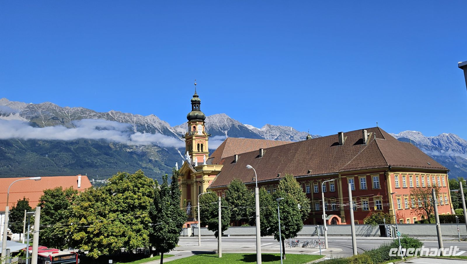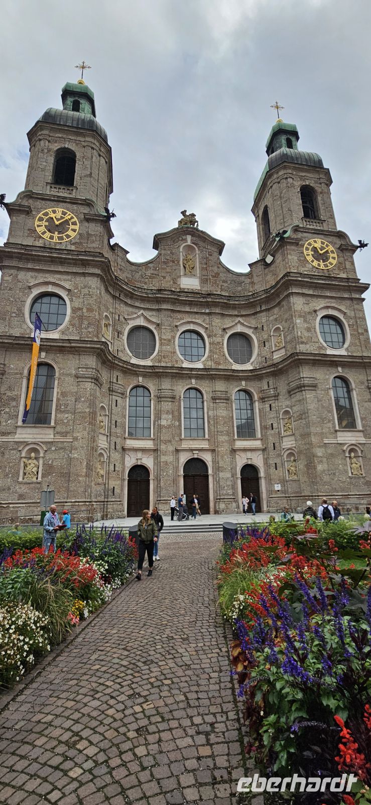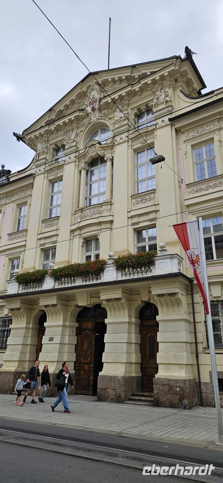 Nach dem Frühstück gingen wir hinunter zur Bushaltestelle und nahmen den Bus 9.15 Uhr nach Innsbruck. 10 Uhr trafen wir uns mit Stadtführer Christian am Bahnhof und wir gingen mit ihm zunächst zur Triumphpforte. Die Pforte wurde anlässlich der Hochzeit von Loepold, Sohn von Maria Teresia, errichtet und am Tag der Hochzeit verstarb der Ehemann Maria Teresias. So hat die Pforte auf der Nordseite traurige Symbole und auf der Südseite die Symbole der Freude. Weiter ging''''''''''''''''''''''''''''''''s zum prächtigen Barockbau des Landtagsgebäudes mit den Symbolen der 4 Stände. Gegenüber liegt das Palais Trapp und das hat als einziges noch den wunderschönen Garten, in dem heute Skulpturen ausgestellt waren. Danach kamen wir am Rathaus vorbei und an der Annasäule. Die heutige Marktgraben Strasse ist dort wo einst der Stadtgraben war und zugleich die Grenze der Altstadt mit der Stadtmauer. Das Kaffeehaus Munding mit dem großen Bildnis des Hl.Christopherus wurde uns wegen der besten heissen Schokolade empfohlen. Dort begannen auch die vielen Stände für das Strassenweinfest, welches am 05. und 6.9.25 stattfand. Weiter gingen wir zur Innbrücke und zum Traditionsgasthaus Goldener Adler und von da war es nicht mehr weit bis zum Goldenen Dachl. Zwei Brautpaare hatten sich gerade in diesem traditionellen Haus das Ja Wort gegeben und wir erfuhren, dass Kaiser Maximillian zweimal verheiratet war und die zweite Frau aus Mailand eine hohe Summe Mitgift in die Ehe brachte. Es folgte die Besichtigung des Domes und der Hofburg und an der Hofkirche beschrieb uns Christian sehr anschaulich das im Inneren befidliche Grab von Kaiser Maximillian mit den 28 Mannln. Zurück am Goldene Dachl endete der Stadtrundgang und nun gab es Freizeit fürs Mittagessen und Bummeln. 13.30 Uhr trafen wir uns wieder und da hatte der Himmel bereits alle Schleusen geöffnet und es regnete stark. Beim Tomaselli, dem besten Eisladen von Innsbruck, gab es für jeden ein Eis seiner Wahl. Da kein Ende des Regens in Sicht war, gingen wir zurück zum Bahnhof und fuhren mit dem Bus nach Fulpmes. Der geplante Besuch der Bergisel Schanze wurde auf den nächsten Tag verlegt.