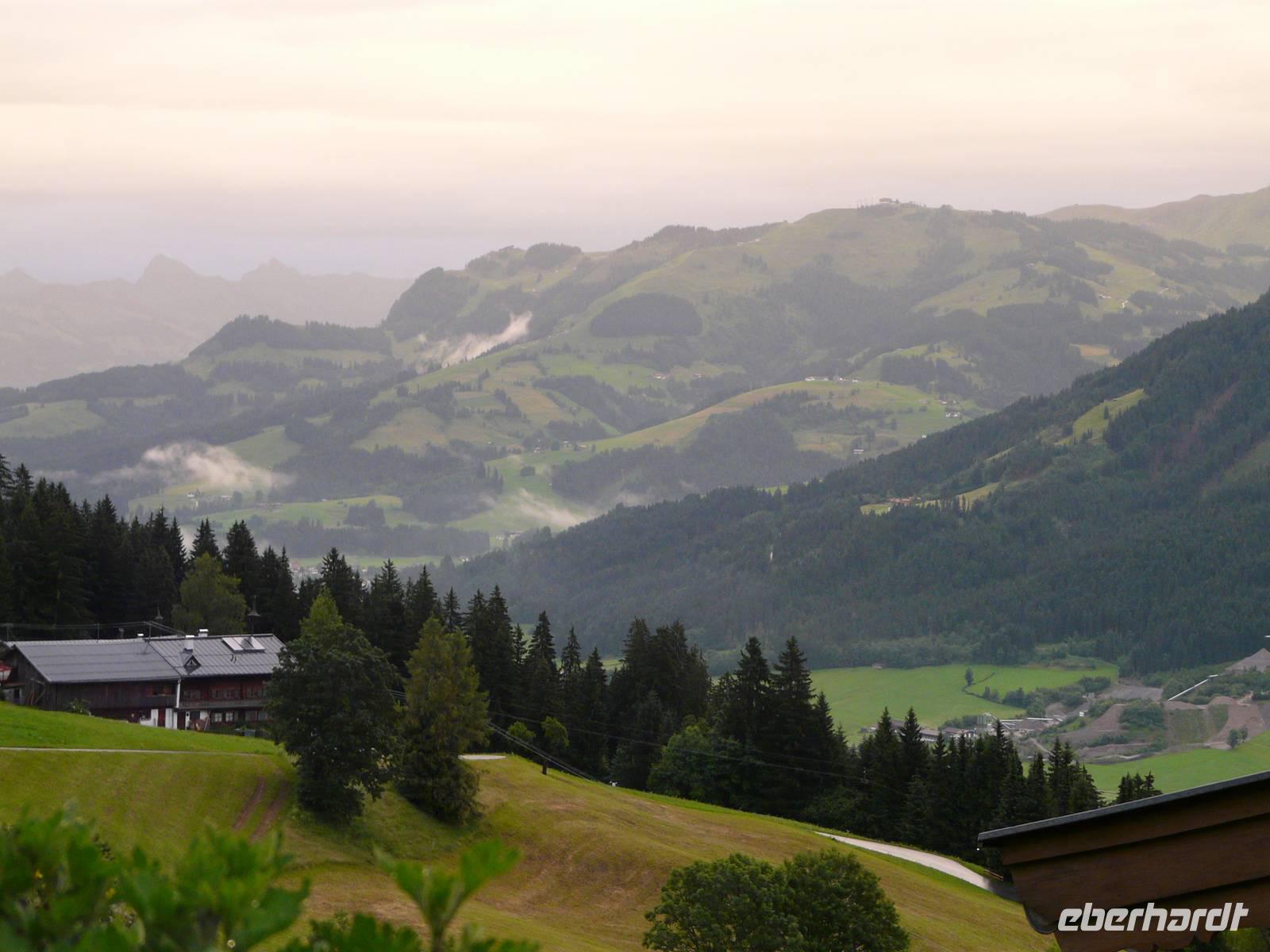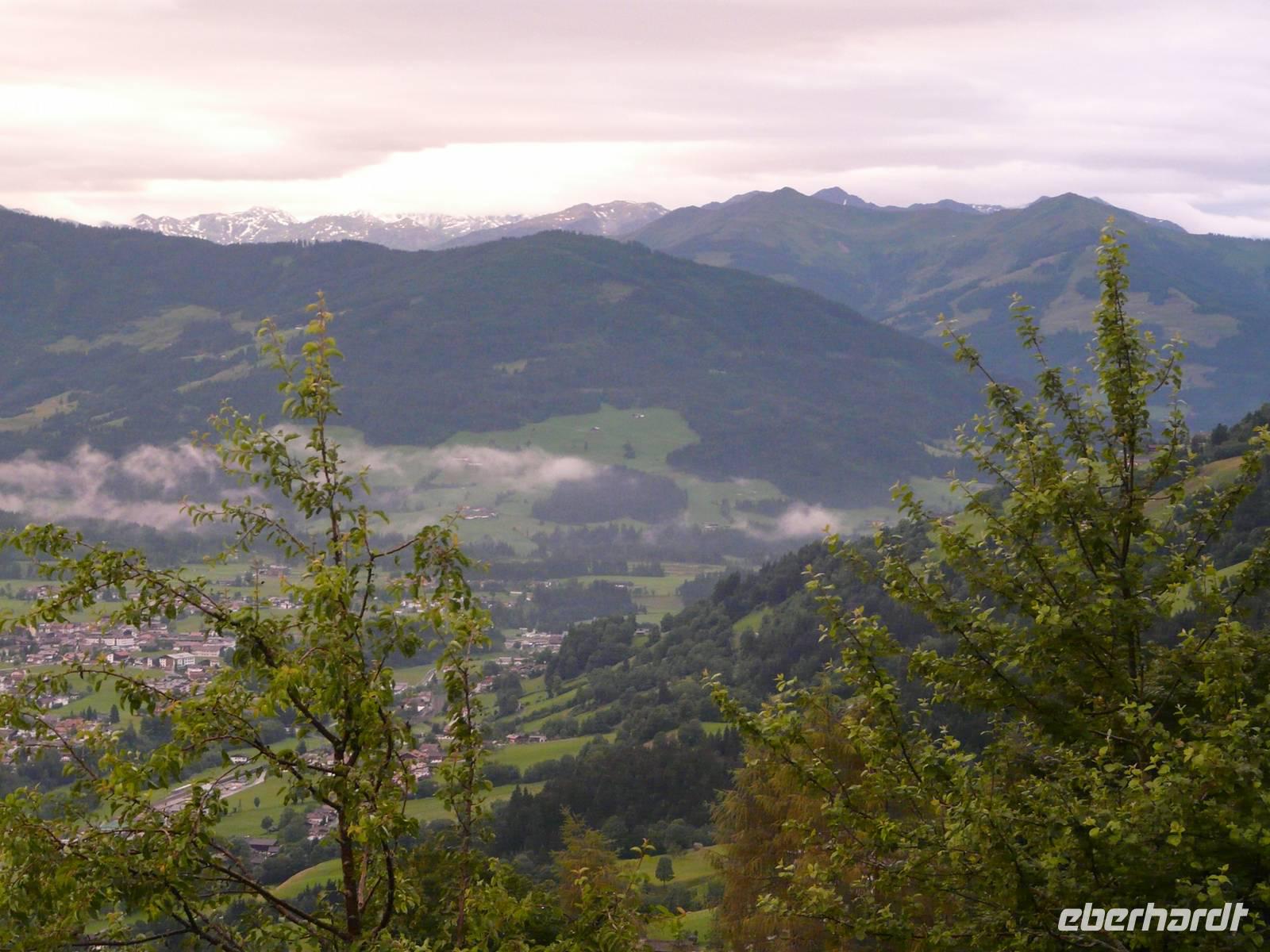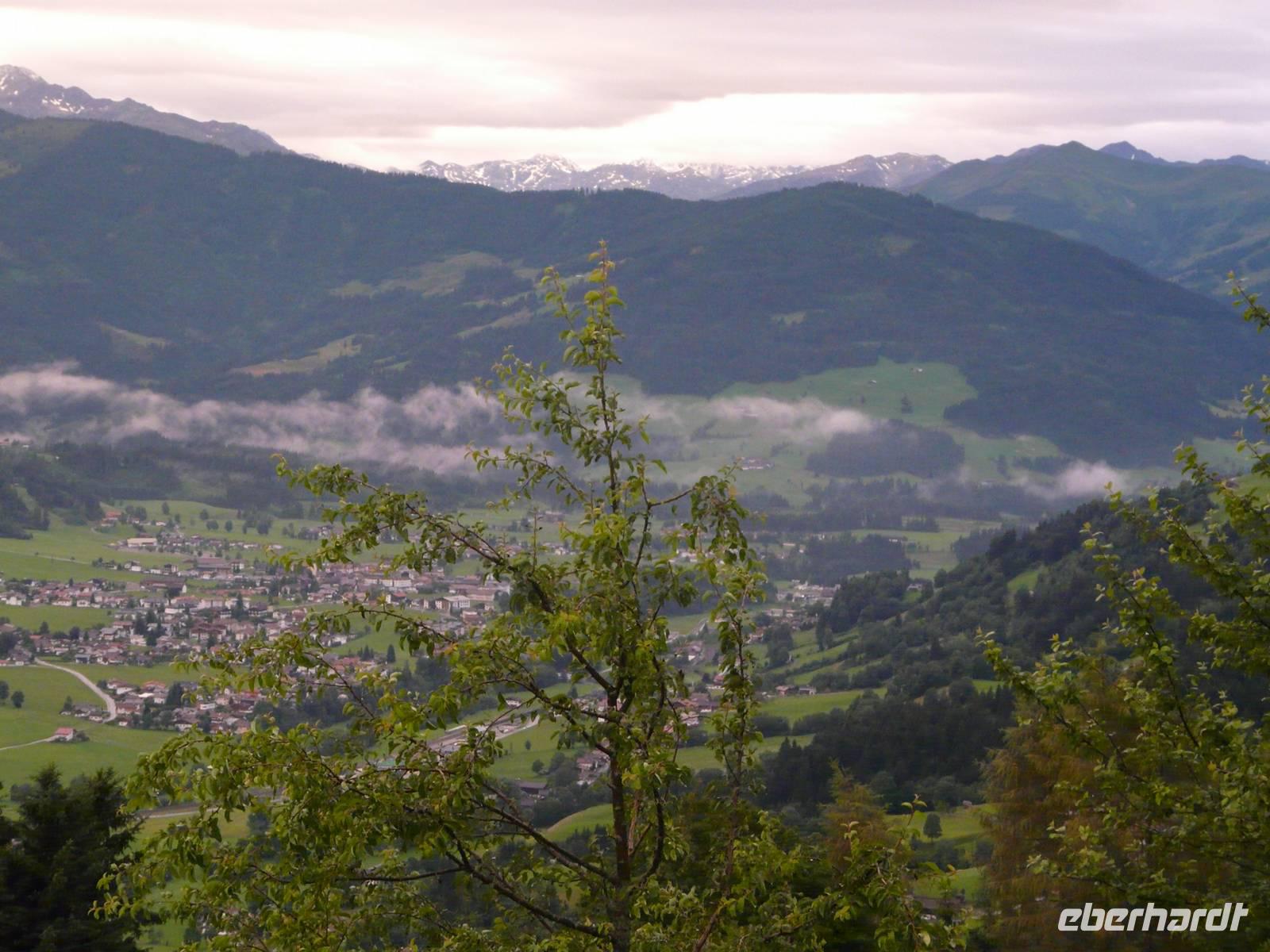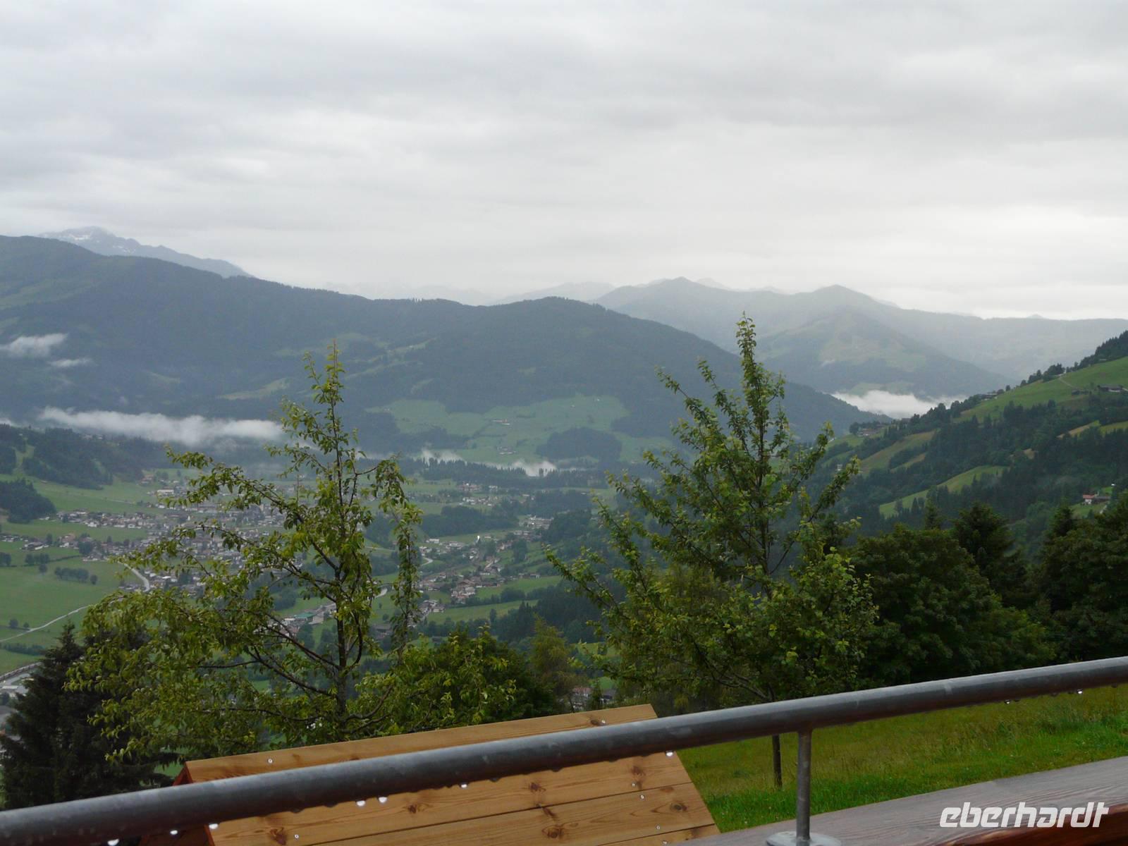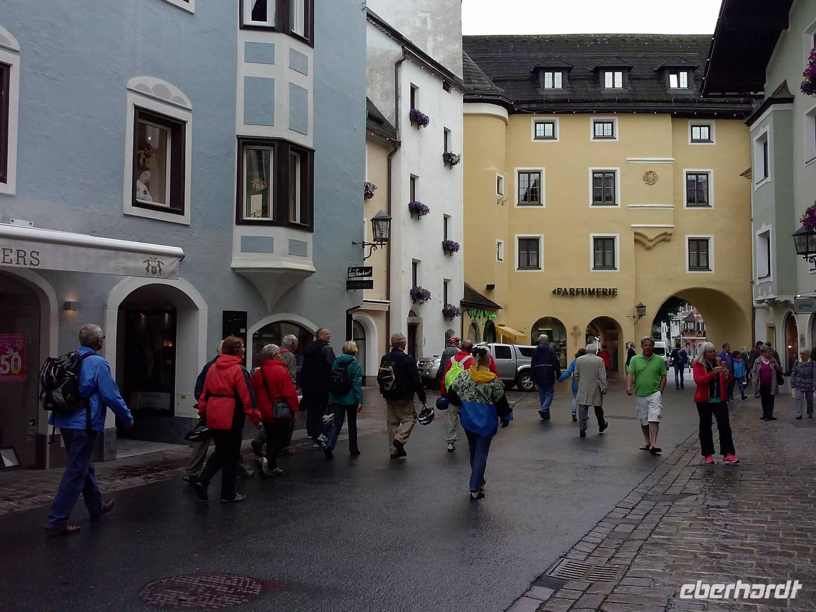 Der Morgen beginnt mit einem bangen Blick aus dem Fenster - hält das Wetter, können wir radeln und müssen wir doch Plan B aus dem Ärmel schütteln. Nach dem Frühstück dann die Klarheit - wir fahren! Vor der ersten Tour lernen wir dann auch Sabine kennen, unsere örtliche Reiseleiterin für diese Woche. Sie erklärt uns noch mal kurz die Tour und dann geht es auch schon los. Wie queren nur die Straße, fahren durch eine Unterführung und schon nach dem ersten kurzen Anstieg befinden wir uns auf dem Brixentaler Radweg - und haben das erste Mal die wunderbaren Vorzüge unseres E-Bikes genossen, sind wir doch nahezu hochgeflogen ;-) . Es nieselt nur leicht, während wir auf dem gut ausgebauten Radweg zuerst Kirchberg erreichen und uns erstmal versorgen. Wir fahren weiter, vorbei am Golfplatz durch Reith hin zum Schwarzsee. Bei gutem Wetter hat man hier einen traumhaften Blick auf den Wilden Kaiser - allerdings starren wir nur auf eine weiße Wand und versuchen nur irgendwas von dem schroffen Angesicht des Gebirgszuges zu erhaschen - vergebens. Also fahren wir weiter und nach wenigen Kilometer stellen wir unsere Räder direkt am Rand der Kitzbüheler Altstadt ab. Als wir durch die Altstadt bummeln zeigt sich sogar ein bisschen die Sonne, nur die Streif ist nebelverhangen. Die kleine Innenstadt hat Charme, viele kleine Läden und Boutiquen reihen sich aneinander, der ortsansässige Metzger lädt uns quasi zum Mittagessen ein. Nach etwas Freizeit treffen wir uns wieder bei unseren Rädern und machen uns so langsam auf den Rückweg. In Kirchberg halten wir kurz nochmal am Supermarkt ehe es gen Westendorf geht. So können wir den verregneten Nachmittag in Rosis Gaststube verbringen bevor wir zum Abend erneut kulinarisch verwöhnt und von Kellnerin Birgit liebevoll umsorgt werden.