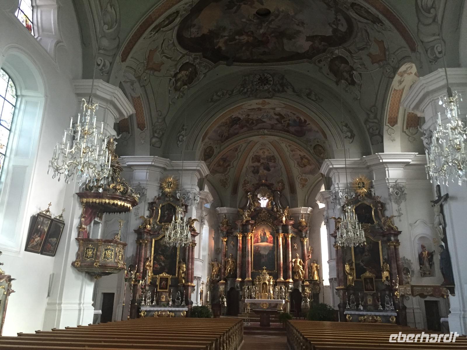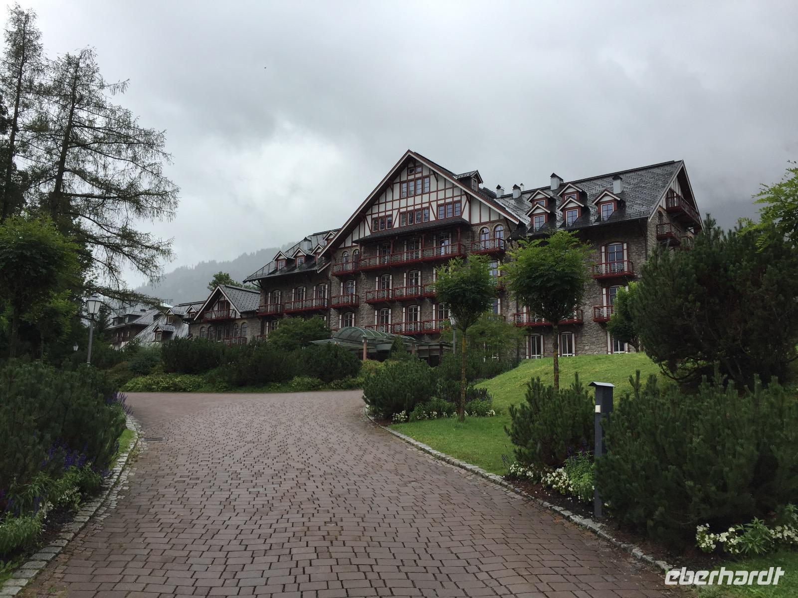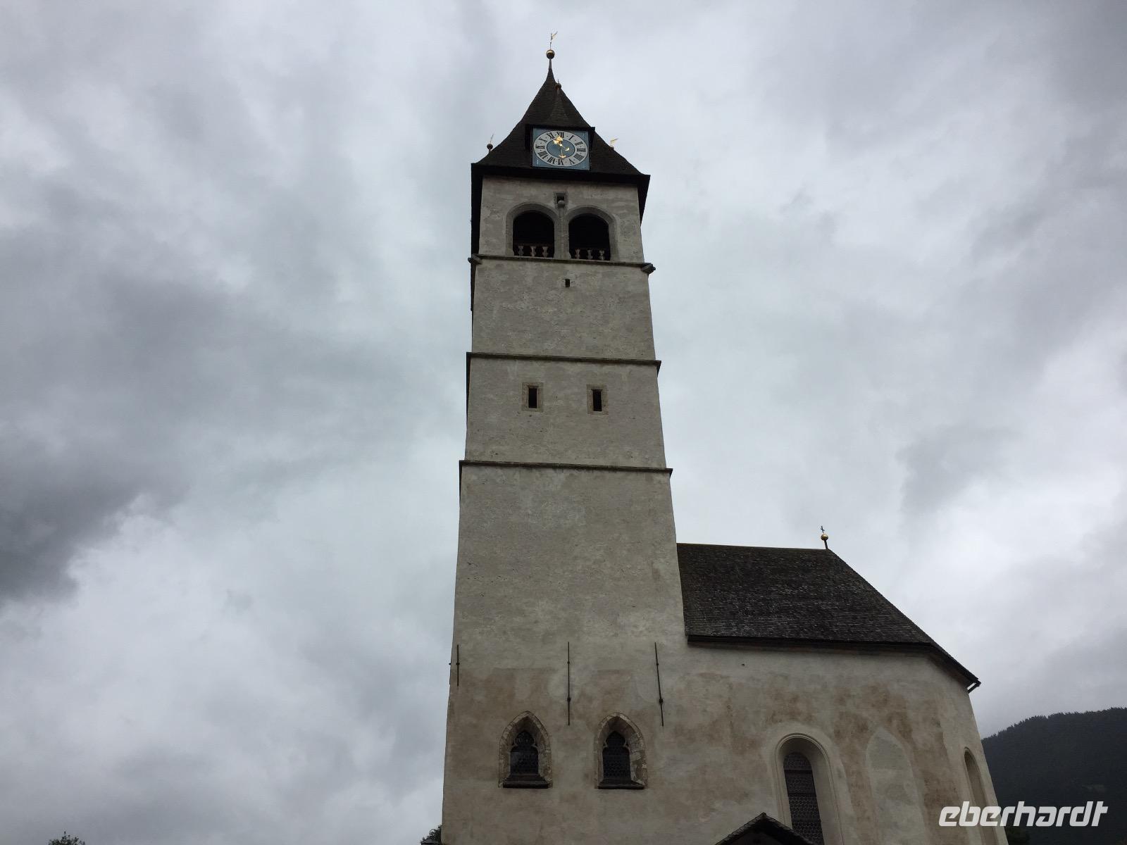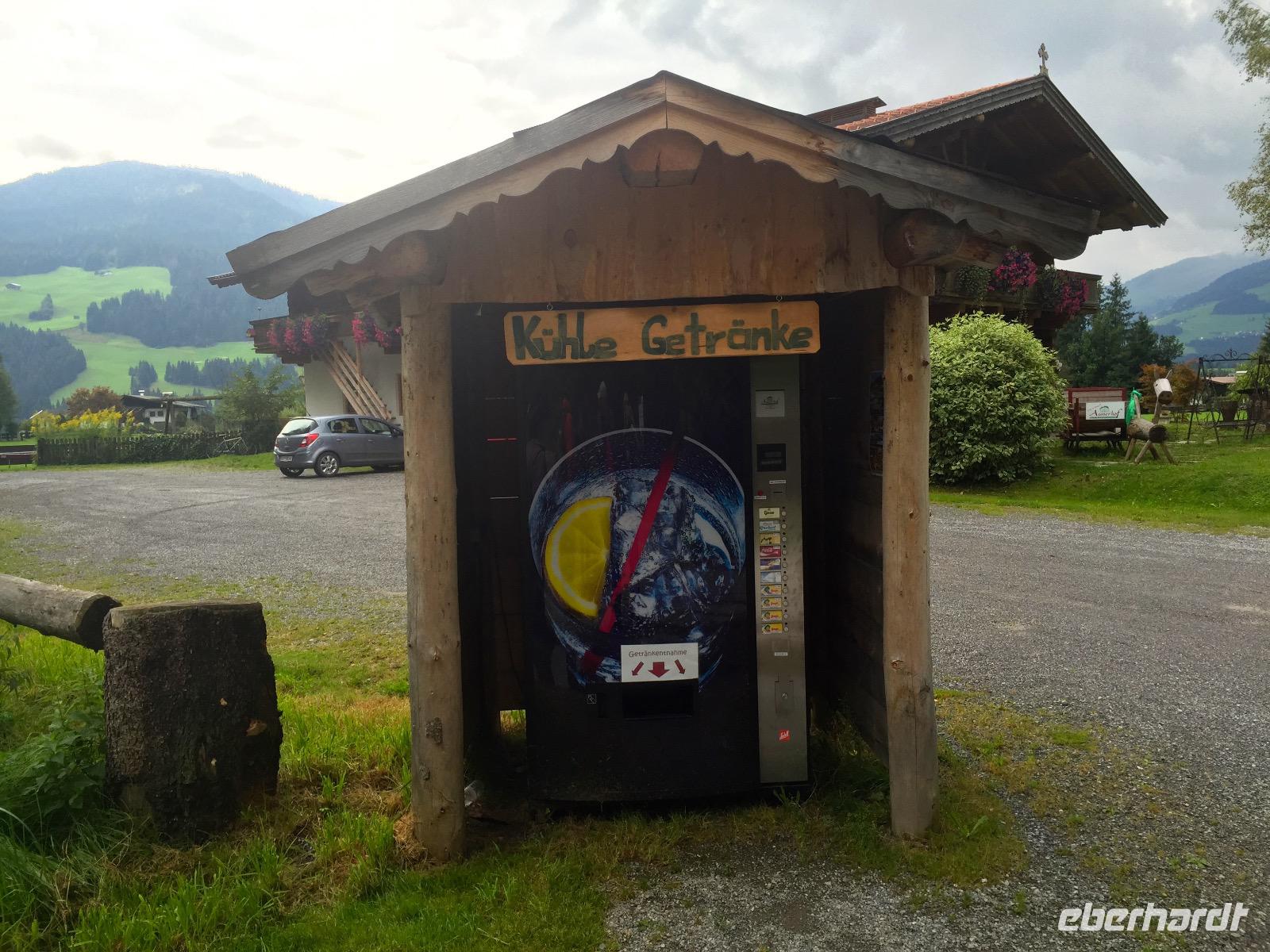 Heute steht die längste Tour auf dem Programm: Von Westendorf über Itter, Söll, Ellmau, Going, Reith, vorbei an Kirchberg und Brixen zurück nach Westendorf. Den ersten Stopp machen wir in Hopfgarten und besichtigen die in den letzten Jahren renovierte Hopfgartner Pfarrkirche, die auch „Dom des Brixentales" genannt wird. Das barocke, doppeltürmige Gotteshaus ist das weithin sichtbare Wahrzeichen von Hopfgarten. Die anschließende Etappe nach Itter ist der längste und steilste Anstieg der Tagestour. Über Söll erreichen wir Ellmau und statten der „Heimat des Bergdoktors" einen kurzen Besuch ab. In Going, mit Blick auf den Wilden Kaiser, legen wir unsere Mittagspause ein und bestaunen die Deckenmalerei der örtlichen Kirche. Ganz und gar nicht beeindruckt sind wir vom berühmten „Stanglwirt", dem Luxushotel mit ländlichen Touch. Lieber radeln wir weiter und genießen den Blick auf das grandiose Bergmassiv und die grünen Wiesen und Täler. Da es heute recht warm ist, sehnen sich alle nach einem Badestopp am Schwarzsee. Andreas führt uns dort in ein nettes Kaffeehaus, anschließend geht ein Teil der Gruppe schwimmen, während die anderen die „Riesen-Karpfen" vom Schwarzsee bestaunen. Der Heimweg folgt der bereits bekannten Route vorbei an Kirchberg und Brixen zum Gasthaus Aschenwald.