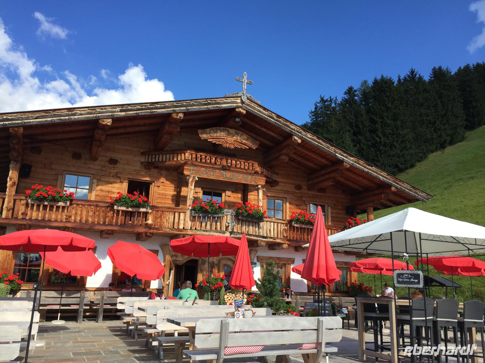Nach dem Motto „wer rastet, der rostet" steigen wir auch heute (am eigentlich radfreien Tag!) auf unsere „Drahtesel" und radeln entlang der Windauer Ache auf Wirtschaftswegen vom „Lendwirt", parallel zur gestrigen Tour von Nord nach Süd, zur der Gamskogelhütte. Es geht zunächst sehr gemütlich bei leichter Steigung durch dieses ursprünglich gebliebene Tal auf einem bequemen Asphaltweg. Kurz vor dem Ziel steigt der Weg dann doch sehr heftig an, sodass wir zum ersten Mal richtig ins Schwitzen kommen! Wir machen hier nur einen kurzen Getränkestopp und fahren anschließend wieder bergab um die Mittagspause auf der Straubingalm verbringen zu können. Hier gibt es eine tolle „Jausenplatte", dazu Buttermilch oder auch einen „Radler". Da wir heute schon recht früh zurück in Westendorf sind, unternehmen wir noch eine Fahrt mit der Gondel zur Sonnalm und schlendern anschließend über den Bauernmarkt in Westendorf, wo zünftige Musik erklingt und zahlreiche kulinarische Spezialitäten locken.