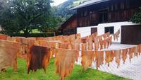 Am Abend ging es mit dem Taxi zum Gasthof Nieding, der oberhalb von Brixen liegt. Deftige Jausen-Platten wurden uns serviert. Nach dieser köstlichen Mahlzeit am Abend hat uns der freundliche Wirt mit seinem Traktor ins Tal gebracht. Nach der spaßigen Fahrt spazierten wir in Richtung Aschenwald, machte aber noch einen Abstecher in den Brixner Stadl zum Nageln.
