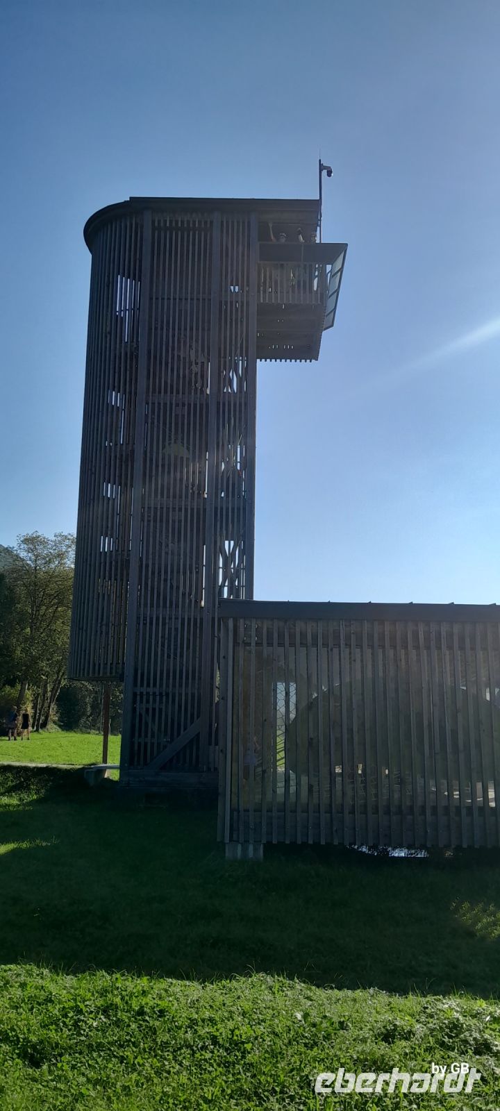 Erst einmal ging es in einer kurzen Fahrt zum größten Moorgebiet Nordtirols, der "Schwemm" Es gibt dort einen hölzernen Aussichtsturm, von dem aus man das 65 ha große Feuchtgebiet gut überblicken konnte.