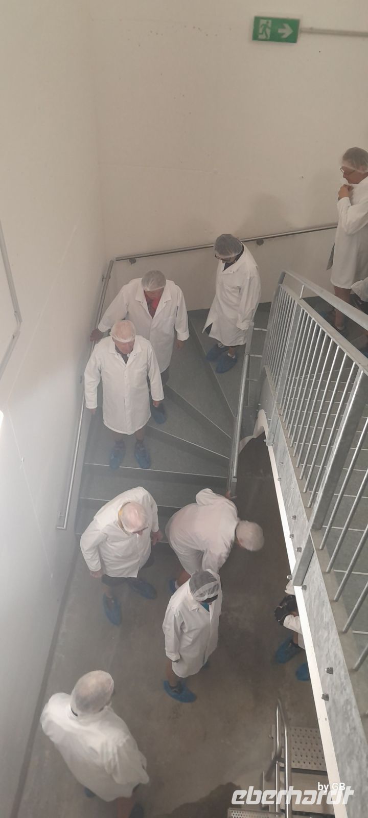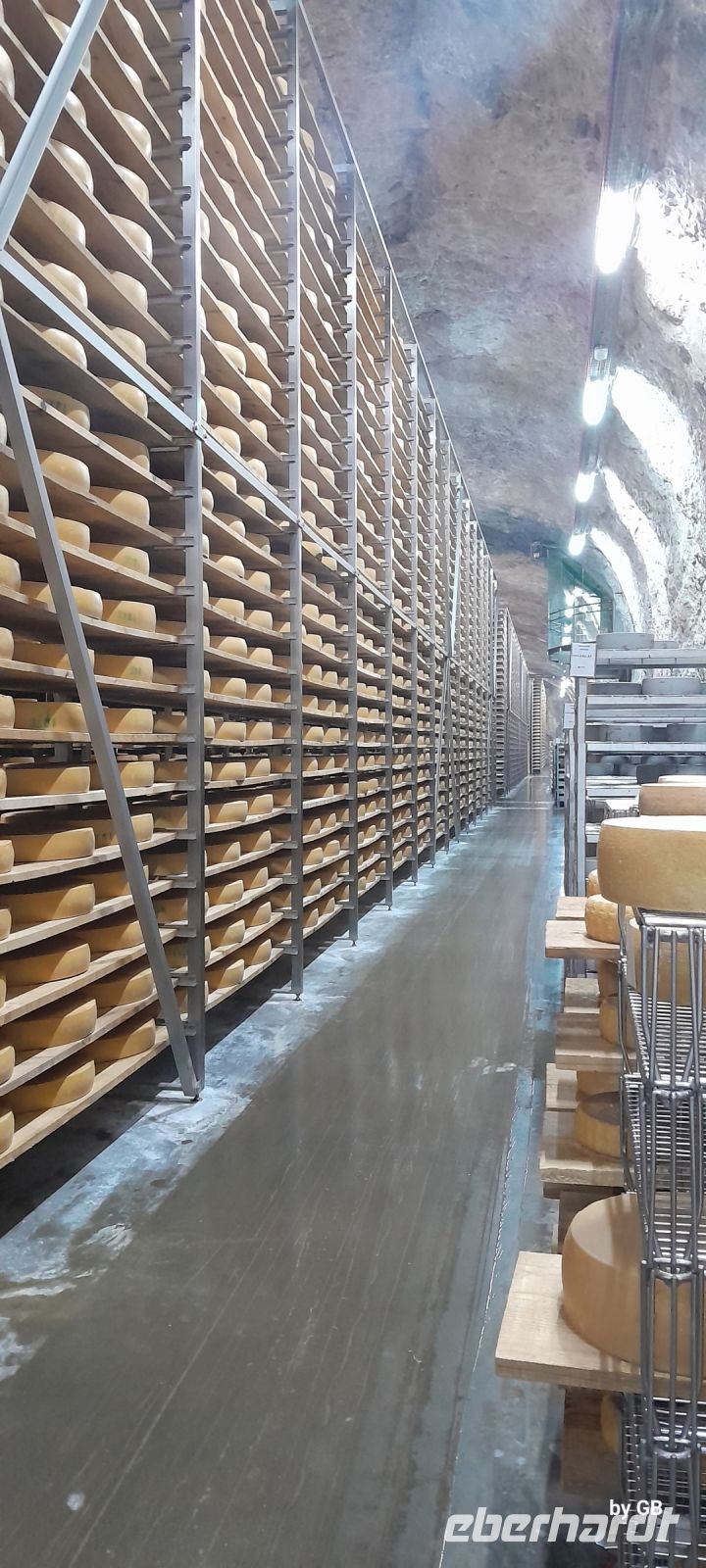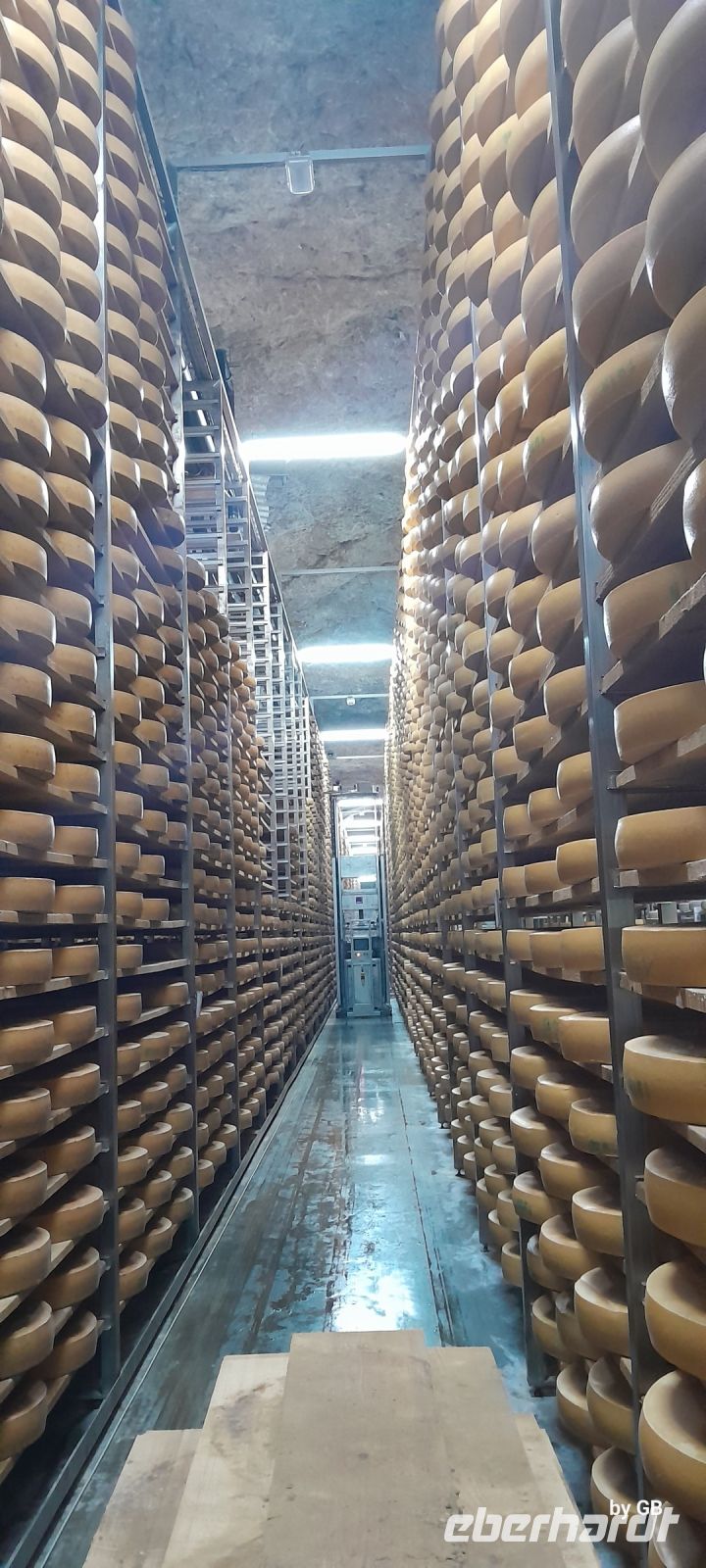 Heute ging es vorbei an den Mooren der "Schwemm" Richtung Kufstein, unserem heutigen Ziel. Unterwegs konnten wir allerdings noch eine Führung und Verkostung in der Käserei Plangger in Niederndorf erleben. Der hier hergestellte Käse lagert in einem riesigen Felsenkeller. Mit Hygiene-Ausstattung durften wir durch die Produktion in diese gigantische, künstliche "Höhle" im Fels. Hier werden die gelagerten Käselaibe computergesteuert von Robotern regelmäßig gedreht, um eine gleichmäßige Reifung zu garantieren. - Grandios!