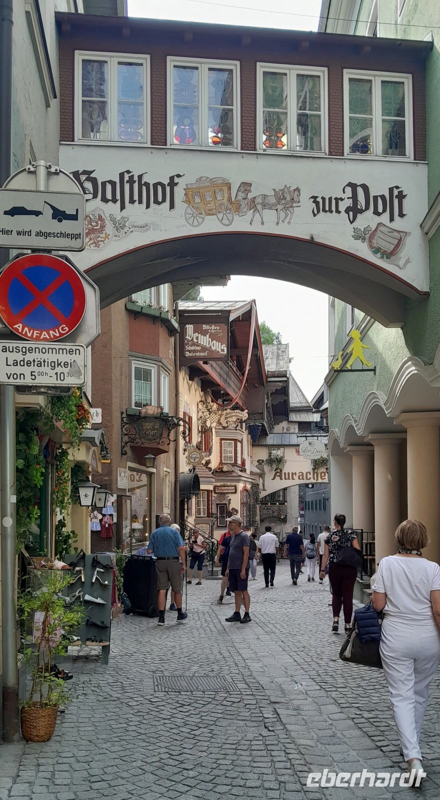Am Inn entlang radelten wir dann nach Kufstein, der zweitgrößten Stadt des Bundeslandes Tirol. Auf dem Innradweg sahen wir schon von weitem die Festung, welche auf einem kleinen Hügel thront. Rechtzeitig trafen wir in Kufstein ein, um die eltberühmte Heldenorgel spielen zu hören. In der Stadt selbst konnte jeder seinen Vorlieben nachgehen. Es gab reichlich Trachtenläden, wir konnten shoppen, bummeln, und uns die Altstadt anschauen. Auch kauften einge die überall anebotenen Tiroler Spezialitäten. Aber es gab auch wieder Eiscafés und Restaurants....