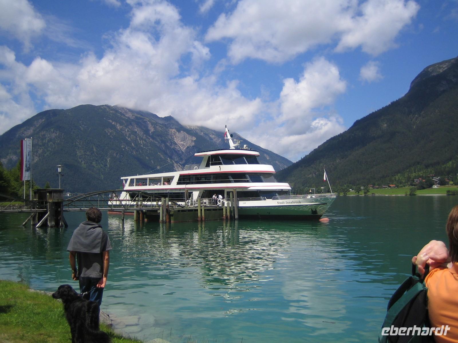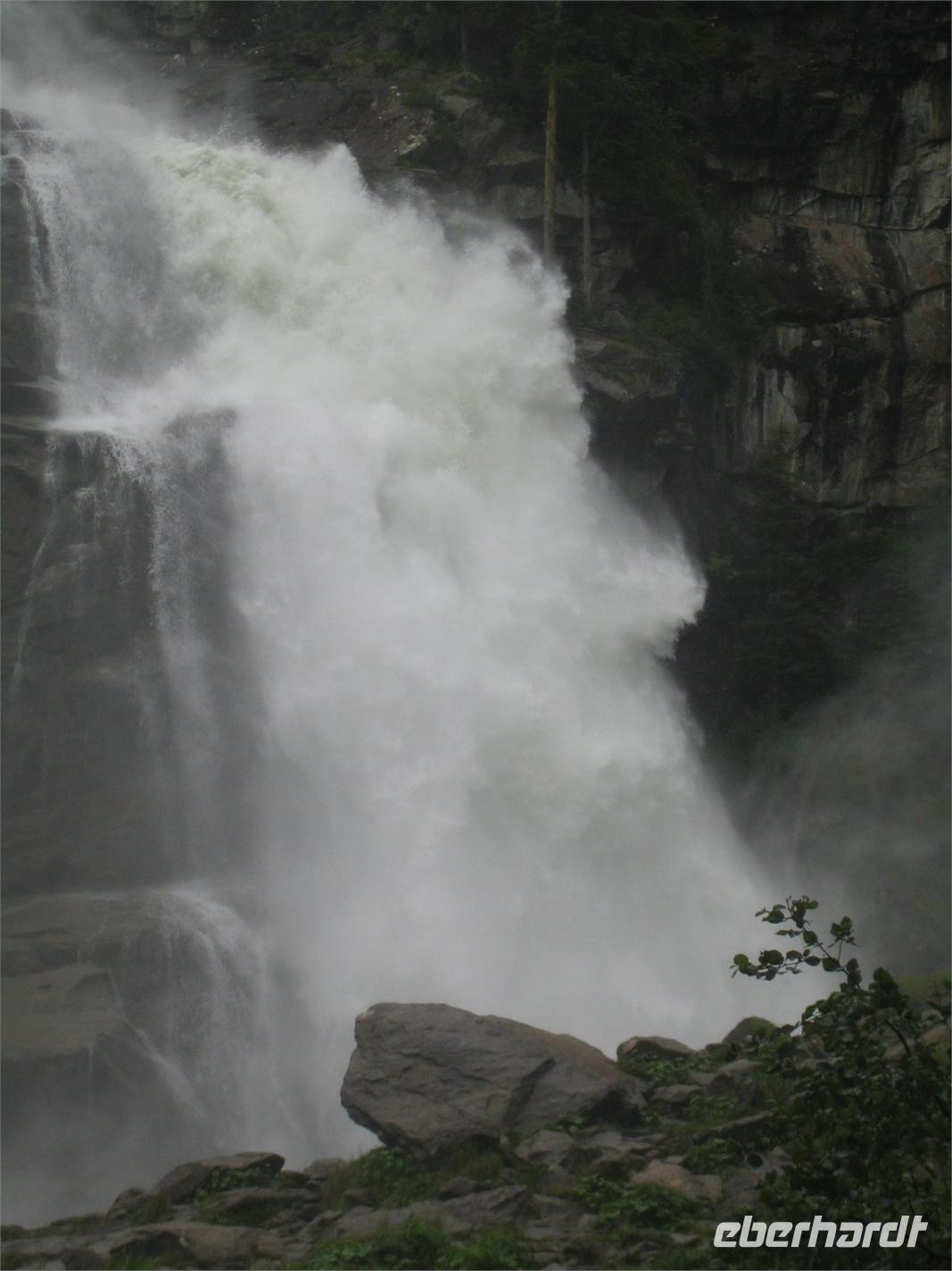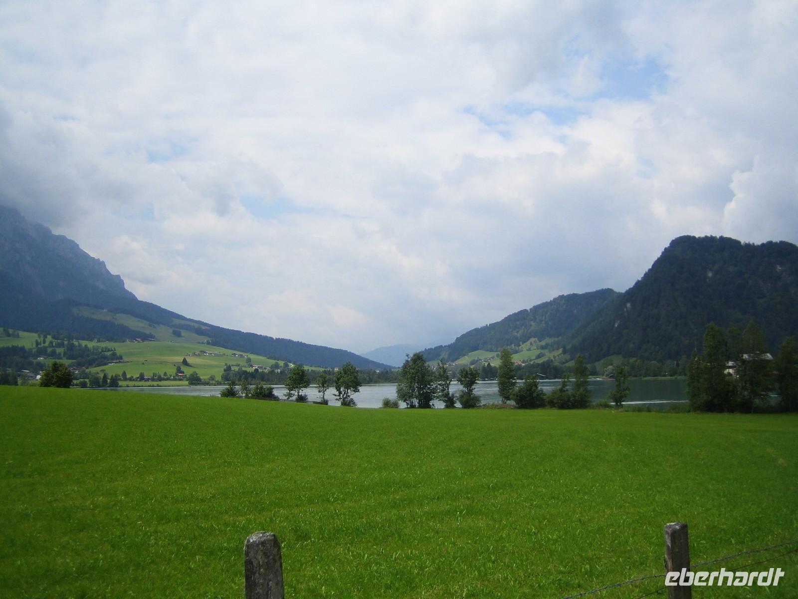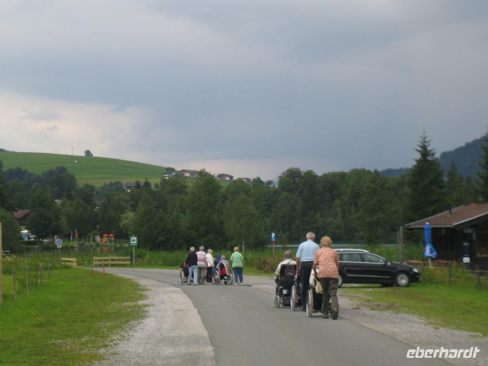 380 m tief fällt das Wasser und die Gischt ist weithin sichtbar. Ein Weg führt bis ganz nach vorn wo das Wasser aufprallt- ein wirkliches Naturerlebnis. Mit vielen neuen Eindrücken von dem so vielfältigem Tirol fuhren wir in unser Hotel zurück zum Abendessen. Der letzte Urlaubstag begann - den Walchsee und seine herrlichen Panoramasichten auf das Kaisergebirge hatten wir uns vorgenommen. Die Fahrt zum See führte uns über Kitzbühel und St.Johann durch ein schöne abwechslungsreiche Berglandschaft. Bald erreichten wir Walchsee und begannen unsere Rolliwanderung am See zum gegenüber gelegenen Campingplatz durch blühende Wiesen, ab von der Straße. Da zogen sie dann auf - die angekündigten Regenwolken und wir schafften es gerade noch trockenen Hauptes in unseren Bus. Einladen ist ja unter uns Gemeinschaftssache und schnellwaren wir im Trockenen. So fand unser kleines Picknick halt im Bus statt. Unser Spaziergang am Nachmittag in Kitzbühel fiel den wolkenbruchartigem Regen zum Opfer, wir zogen es vor in unserem Hotel in Kirchberg einen Nachmittagskaffee zu trinken. Etwas Zeit zum Packen ist ja auch von Vorteil. Das Abendessen am letzten Abend war wie jeden Tag vorzüglich angerichtet und eine Freude. Samstag - Heimreise. Unsere Woche in Tirol war zu Ende. Um den Übergang nach Hause sanfter zu gestalten gab es eine kleine Über raschung. Wir fuhren Richtung München nicht auf der Autobahn sondern eine Alpenpanoramastraße über den sogenannten Tatzelwurmpass. Vorbei am Schliersee erreichte wir den Rasthof Holzkirchen und nach einer Rast fuhren wir Richtung Regensburg , am Rande des Bayerischen Waldes bis Hof und Rasthof Vogtland ,wo uns die ersten Gäste für den Transfer nach Hause verließen. Alle weiteren Haustürtransfere waren pünktlich und wir erreichten planmäßig den Flughafen Dresden. Eine wunderschöne Urlaubswoche mit unzähligen Eindrücken ging zu Ende. Seien Sie doch im nächstem Jahr auch Gast von Eberhardt TRAVEL bei unserer Fahrt nach Kirchberg in Tirol - das Hotel ist schon gebucht für Sie.