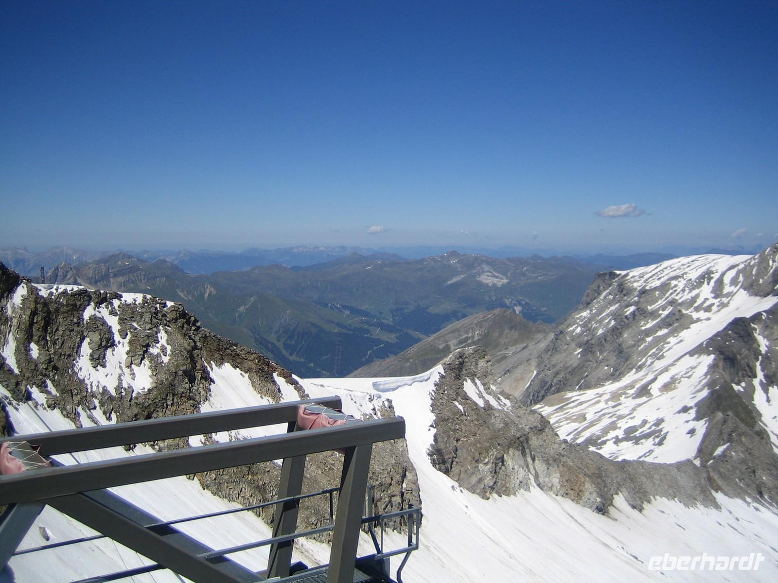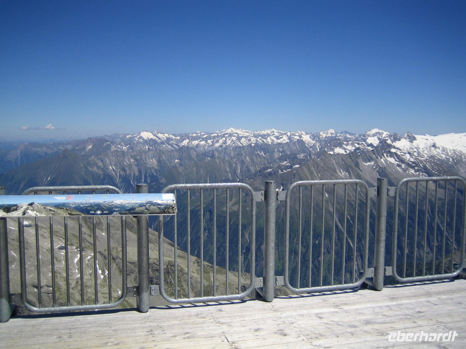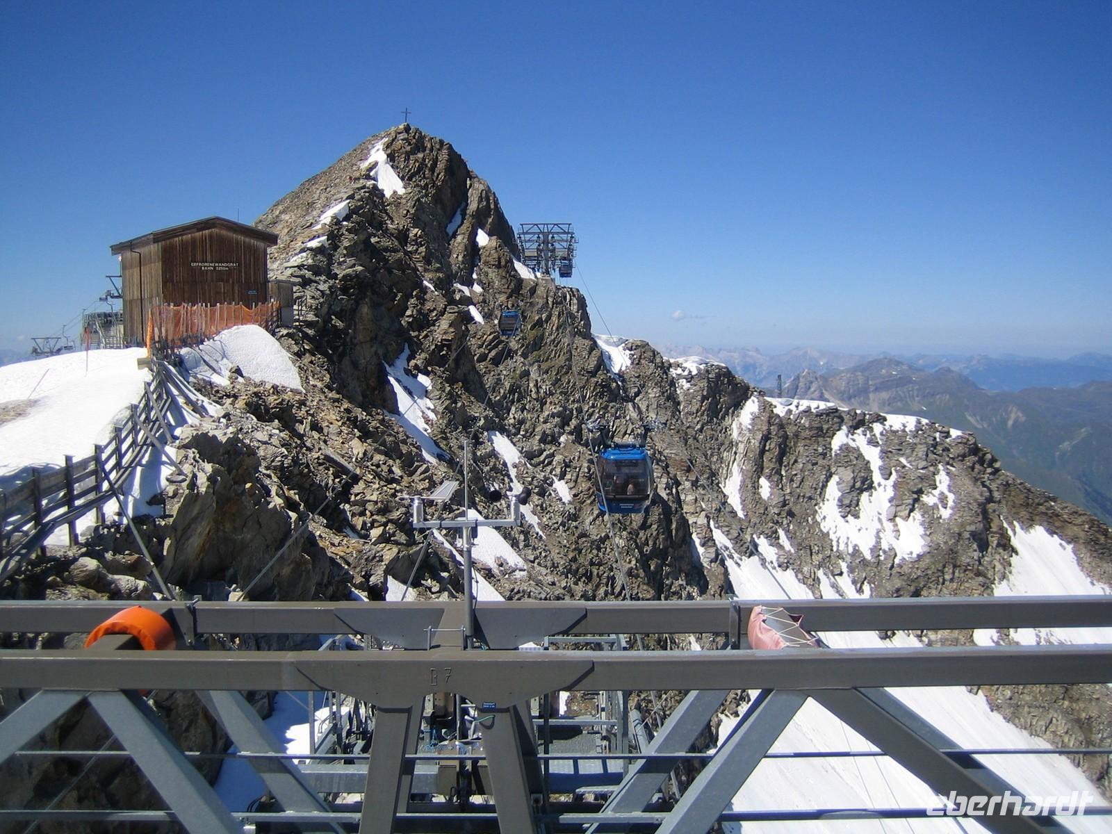 Schon am Vormittag zeigte sich die Sonne und ein strahlend blauer Himmel über Tirol - das konnte ein Tag werden! Schon der Einstieg in die historischen Abteile der Aachenseebahn war ein Erlebnis, die „Jungs“ von der Bahn packten alle mit zu und ruck zuck waren alle im Zug und die Rollies verstaut. Durch Blumenwiesen und schöne Ausblicke gings steil bergauf zum Aachensee. In Seespitz angelangt bestiegen wir gleich das Schiff zur Seerundfahrt,einmal bis Scholastika und zurück. Bevor wir nach Jenbach zum Bus zurück fuhren blieb genügend Zeit füreinen Spaziergang in der Sonne am See. Nach einer ebenfalls wunderschönen Bahnfahrt talabwärts erreichten wir am zeitigen Abend unser Hotel. Der Montag stand im Zeichen der „Gipfelstürmer“, wir fuhren zum Hintertuxer Gletscher. Gestärkt vom Frühstücksbuffett erreichten wir bald das bezaubernde Zillertal, Zeit füreine Pause in Mayerhofen. Dann ginges nach Hintertux zur Talstation der Gletscherbahn. Die vereiste Gletscherspitze war schon von weitem zu sehen. An der Talstation alles bestens, barrierefrei und große Kabinen der Seilbahn - genannt „ Gletscherbus“. Dann schwebten wir bergauf- 2mal Umsteigen und 40min Geduld und dann - WOW !!! - 3200m Höhe , Sonne und eine Sicht !, Zugspitze Dolomiten. Klar das ist der Moment für das Foto der „Gipfelstürmer“.