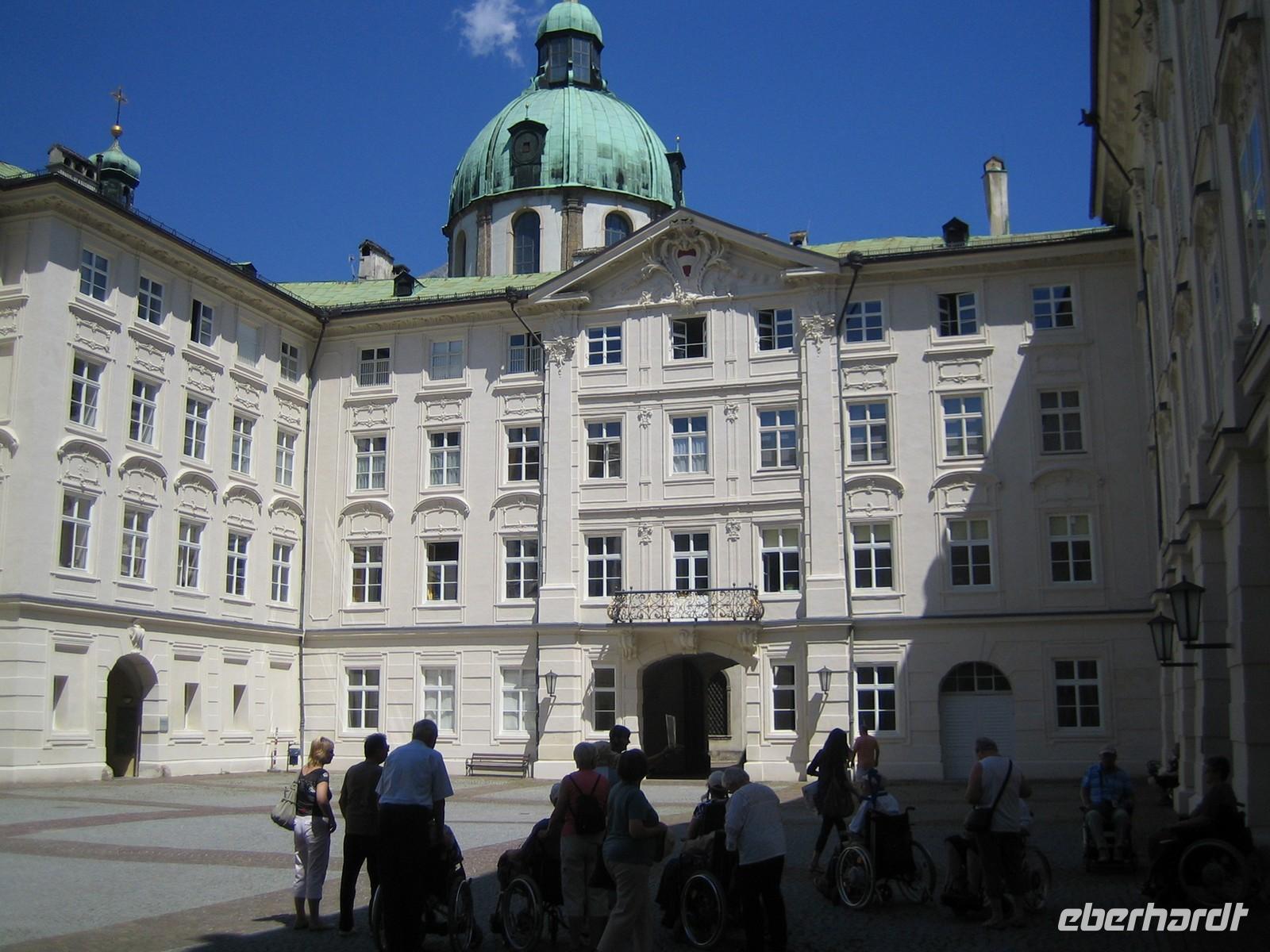 Mit grandiosen Eindrücken der Tiroler Bergwelt fuhren wir talabwärts und in unser Hotel - was für ein Tag! Innsbruck - die Landeshauptstadt Tirol wollten wir heute erkunden. Treffpunkt mit unserer Stadtführerin Monika war der Parkplatz am Hofgarten, auch hier barrierefrei vorgesorgt. Zuerst gab uns Monika einen Überblick über Ihre Stadt durch eine Fahrt durch Innsbruck mit dem Bus. Die Innenstadt erkundeten wir zu Fuß, Hofburg, Dom, die Gassen der Innenstadt und am Ende der Führung das Goldene Dach. Anschließend war Zeit für einen individuellen Spaziergang durch die wunderschöne Altstadt und auch für einen „Verlängerten“ (entspricht Kaffee bei uns) in einem der unzähligen Kaffees des Zentrums. Was wäre ein Besuch Innbrucks ohne auf dem Berg Isel gewesen zu sein. Am Nachmittag fuhren wir mit unserem Bus auf den Berg bis zur Panoramaterasse, Blick auf Innbruck in das Inntal, die Olympiaschanze, das Denkmal Andreas Hofers…. Man könnte noch viel mehr Zeit in dieser lebendigen Stadt verbringen , aber wir entschieden - zurück nach Kirchberg- die Hitze setzte uns zu. Die Rückfahrt zum Hotel auf der Autobahn vorbei an der alten Münzstadt Hall verlief zügig. Eine Überraschung erwartete uns zum Abendessen - Pauli mit seinem Akkordeon und Tiroler Volksmusik- ein schöner Ausklang des Tages. Der Mittwoch stand im Zeichen der Entspannung - individuelle Freizeit. Wir hatte von der Wirtin des Hotels eine Besichtigungsempfehlung für eine Almkäserei bekommen, nicht weit entfernt nach Aschau im Nationalpark um den Rettenstein gelegen. Die schauten wir uns nach dem Frühstück an und bekamen einen Eindruck von einer Almwirtschaft auf 1000m Höhe und vor allem der Mühe der Bewirtschaftung. Nach einer Käseprobe fuhren wir zurück nach Kirchberg und der Nachmittag stand zur freien Verfügung. Am Abend besuchten wir eine Aufführung eines Kirchberger Volkstheaters und bekamen eine Lektion in Tiroler Humor und Lebensfreude. Am nächsten Tag meinte es das Wetter zum ersten Male nicht so gut mit uns - aber wir sind doch flexibel. Bei Regen ist es gut im Trocknen zu sein - auf der Fahrt zum Krimmler Wasserfall gibt es doch in Mittersill das Nationalparkmuseum über den Großglockner und das sahen wir uns an. Die Alpenwelt aus der Perspektive des Fluges eines Steinadlers . Dann ließ auch der Regen nach als wir an Österreichs größtem Wasserfall, den Krimmler Wasserfällen ankamen.