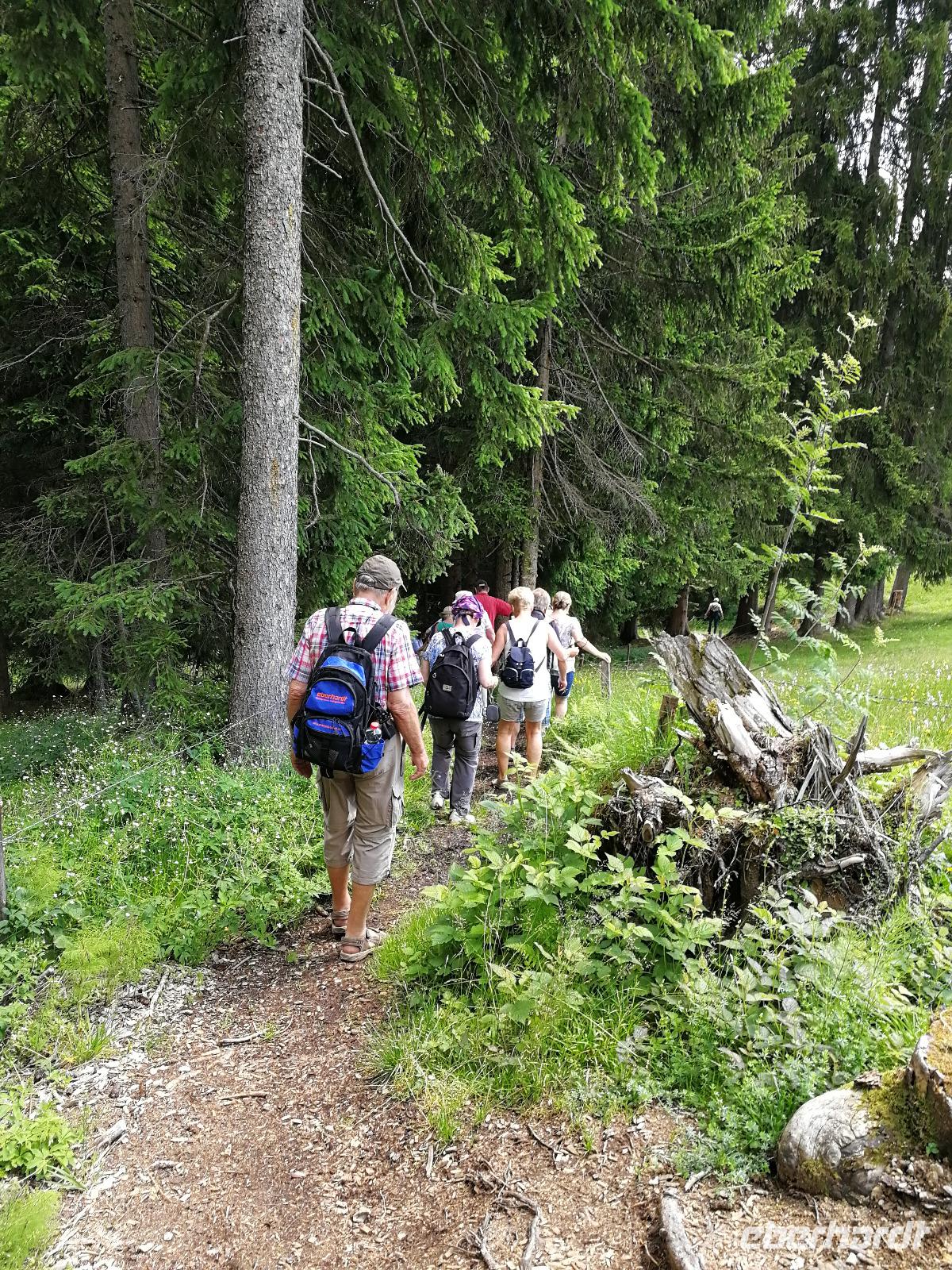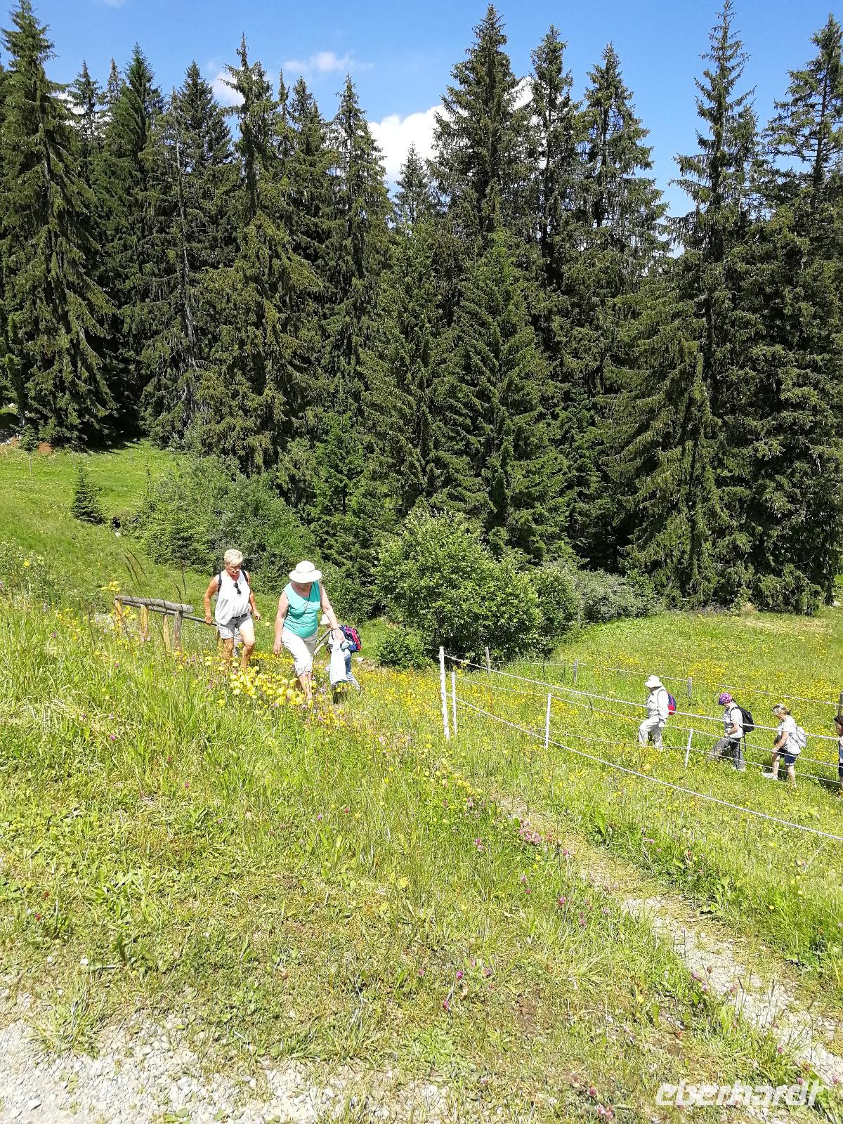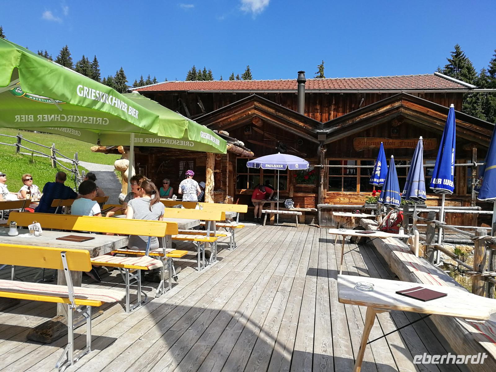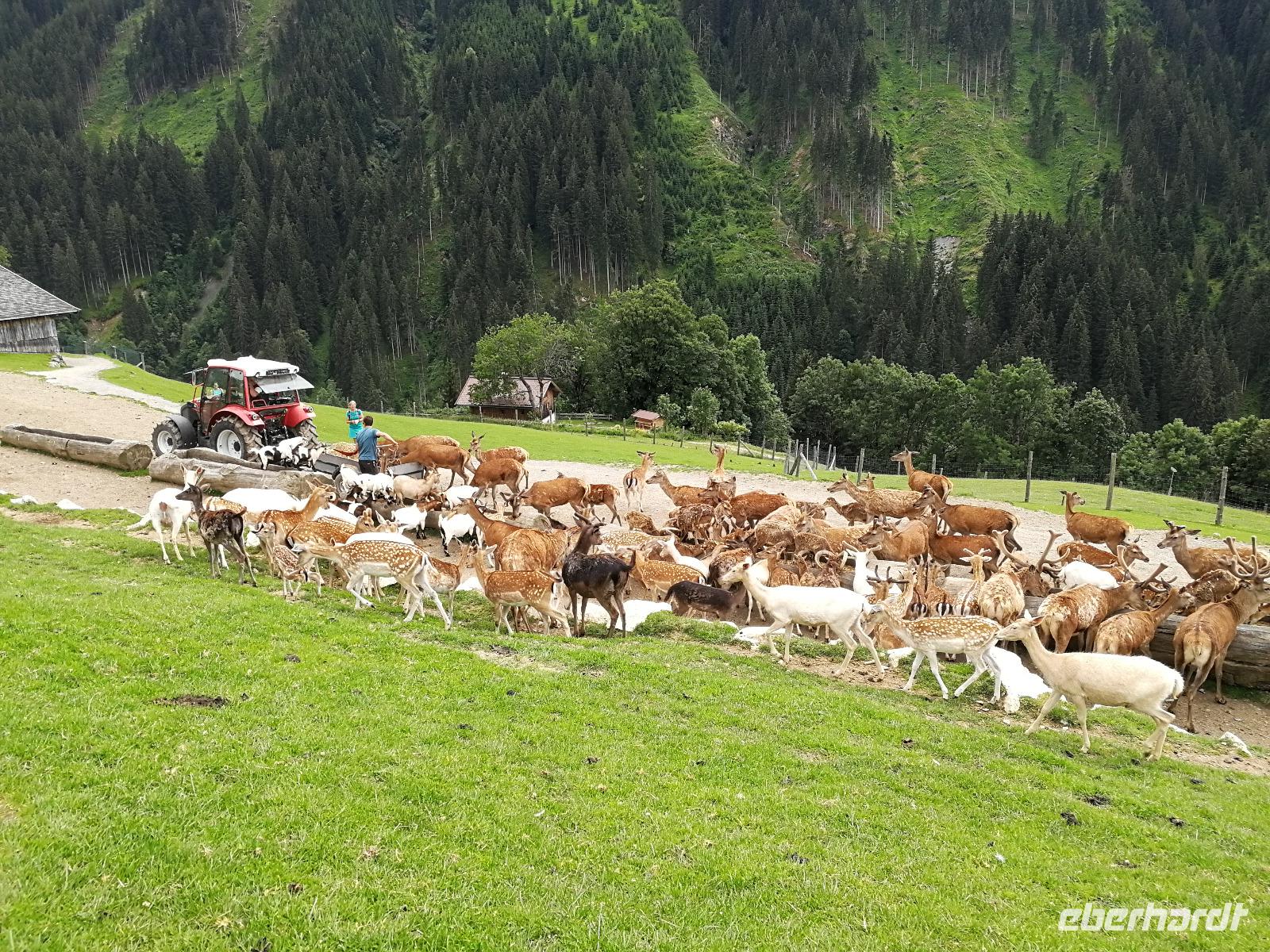 Heute fahren wir ins nahegelegene Brixen im Thale, wo wir mit der Gondel hinauf nach Hochbrixen fahren. Die nette Bergsteigerin Regina fährt mit uns hinauf nach Hochbrixen, dort spazieren wir mit ihr gemütlich zum Filzalmsee. Regina ist eine „Kräuterhexe", denn sie hat sehr viel Wissen über die Kräuter der Berge. Sie erklärt uns die verschiedenen Bergblumen und Kräuter, es ist sehr interessant so viel Neues zu erfahren. Am Filzalmsee treten wir im Moorbecken herum und staunen über diesen wunderschönen See. Einige Gäste unternehmen eine kleine Wanderung mit Regina und Mandy bis zur Frankalm, wo wir uns in dieser urigen Hütte ein kühles Bier oder eine Buttermilch schmecken lassen. Einige Gäste bleiben am See und entspannen auf den wunderbaren Holzliegen. Später treffen wir uns alle an der Almhütte bei der Gondelstation wieder und einige lassen sich ein kleines Mittagessen schmecken. Mit der Gondel geht es wieder hinab nach Brixen im Thale, wo Peter bereits mit leckerem Kaffee auf uns wartet. Weiter geht es mit dem Bus vorbei an Kitzbühel zum Wildpark Aurach. Dort erleben wir um 14 Uhr die Wildtierfütterung, bei der Hirsche, Rehe und Esel sowie Ziegen gefüttert werden. Ein großes Spektakel! Dieser Wildpark ist wunderbar gelegen in den Bergen der Kitzbüheler Alpen und wir genießen die Aussicht auf diese Berglandschaft. Anschließend lassen wir uns noch einen Kaffee und Eisbecher im Stadl neben dem Wildpark schmecken. Später fahren wir zurück in unseren Gasthof und genießen am Abend einen Grillteller und zum Nachtisch einen leckeren Kaiserschmarn.